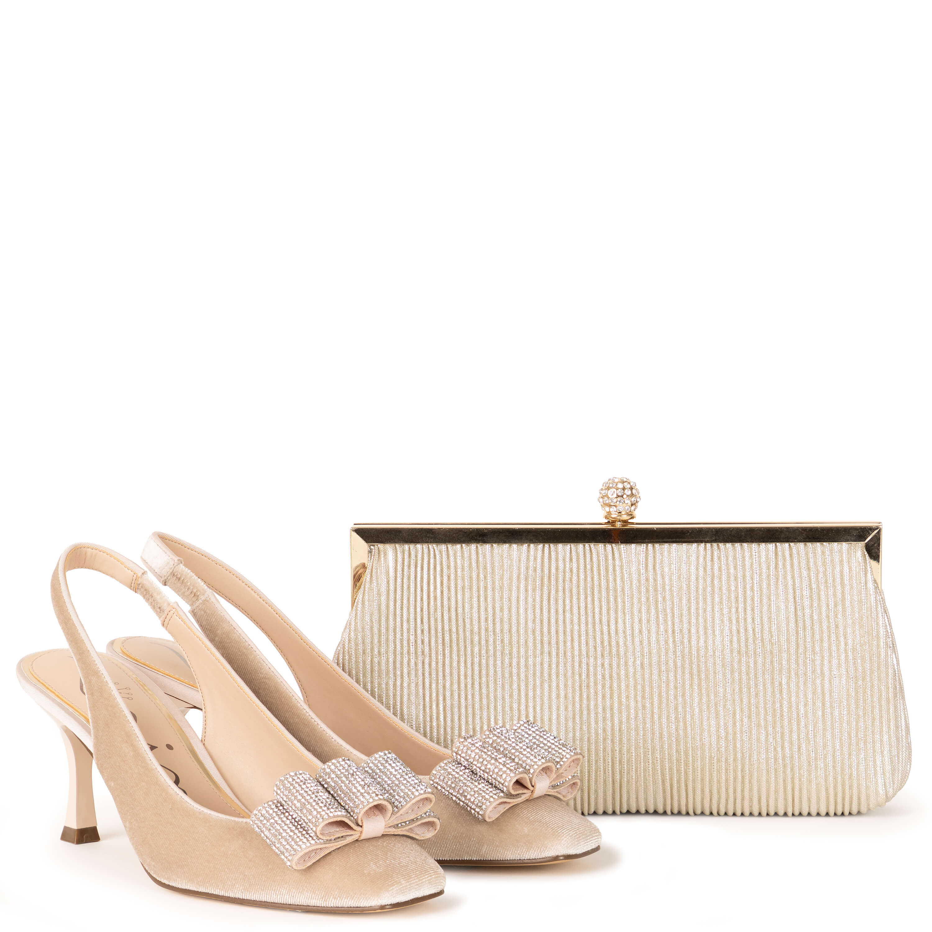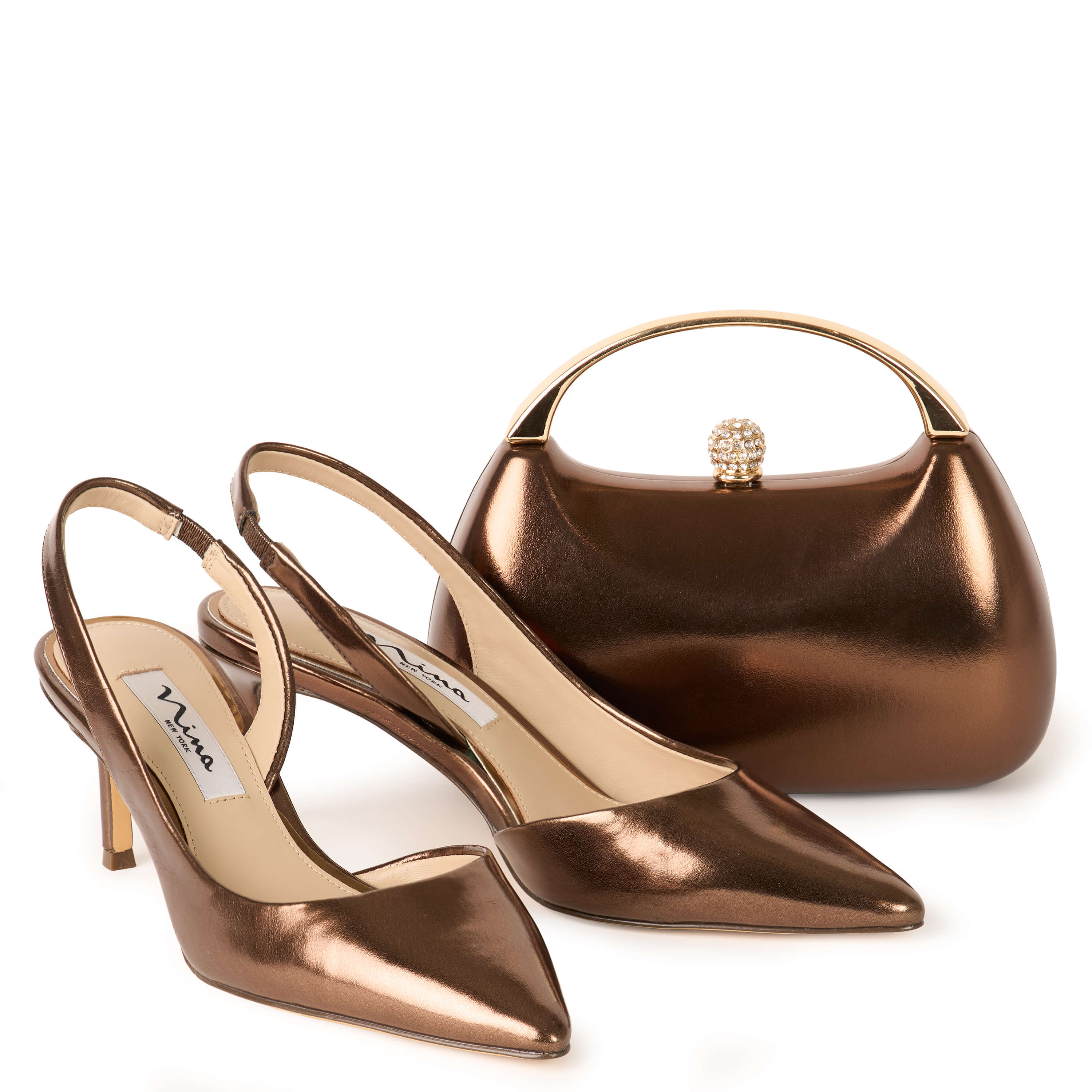 Step into any occasion with confidence and style with Nina Shoes’ curated selection of matching shoes and handbags. Designed to make dressing effortless for weddings, proms, and every special occasion, our collection features shoe and bag sets that deliver elegance from head to toe. Whether you’re pairing high-heel sandals or low-block heels with our glamorous evening bags and clutches, each look is thoughtfully coordinated for a flawless finish. Find the perfect match for your dress sandals, whether you're the bride, bridesmaid, party guest, or prom queen. From sparkling rhinestone details to soft satins and bold colors, Nina’s matching accessories bring modern glamour to your most memorable moments. Discover style made simple with shoe and bag sets that are as versatile as they are stunning.