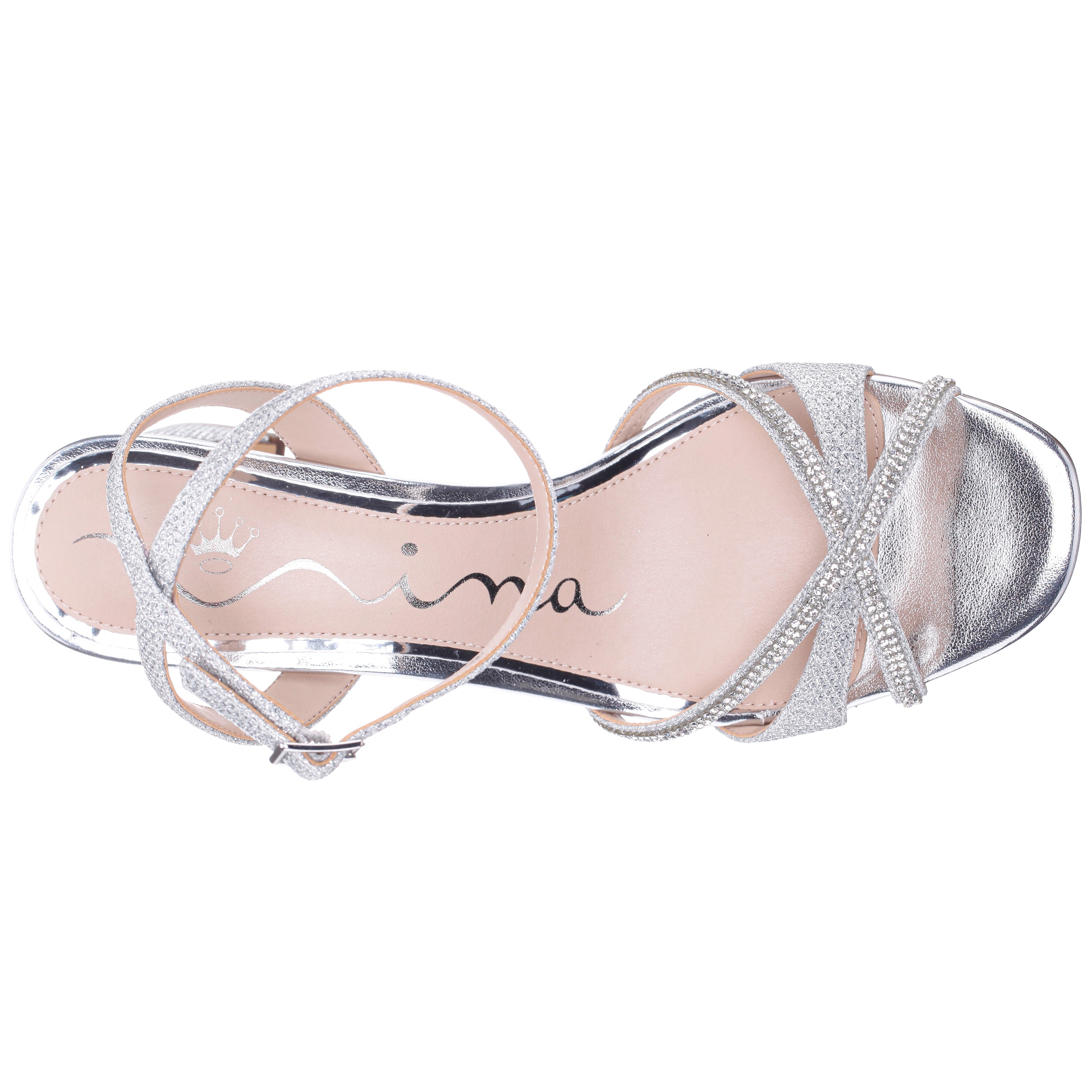 Effortlessly glamorous and endlessly versatile, Bracha by Nina Shoes is the perfect low-heel sandal that guarantees you'll enjoy an exciting evening out. Slender straps of texture mix with twinkling crystal straps to create a flattering pattern for any foot. With an ankle strap for a personalized fit, a fresh block-heel silhouette, and a lightly cushioned insole for all-night support, this sandal offers the perfect blend of beauty and comfort.