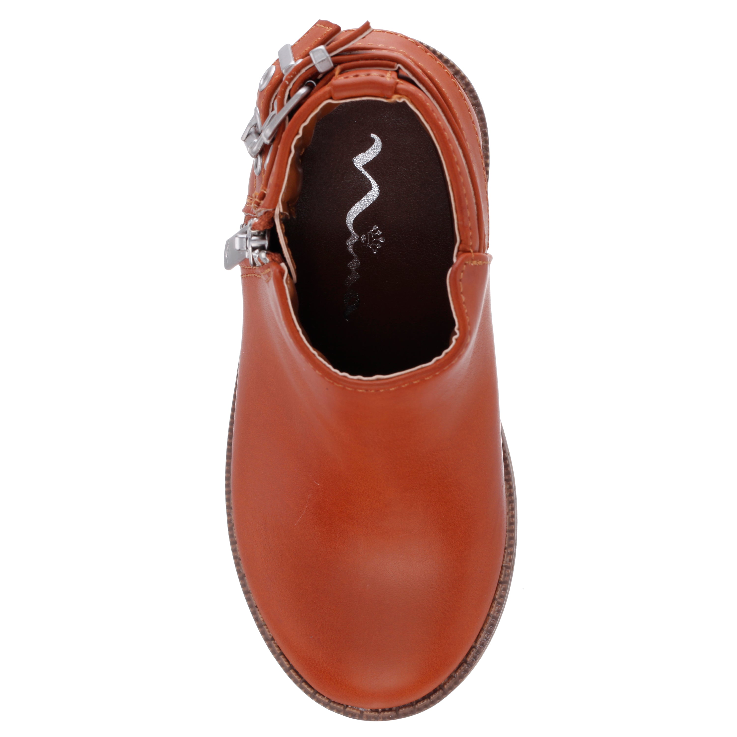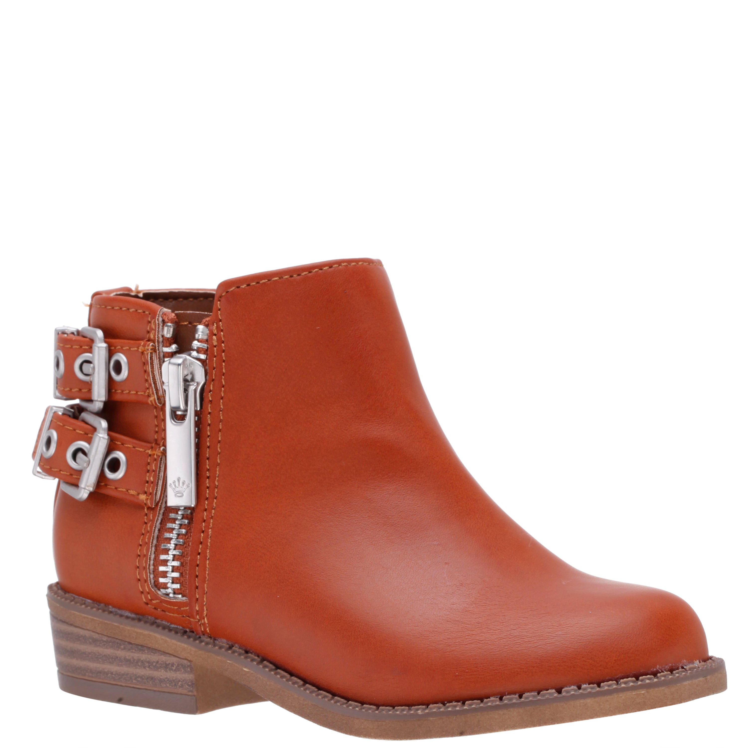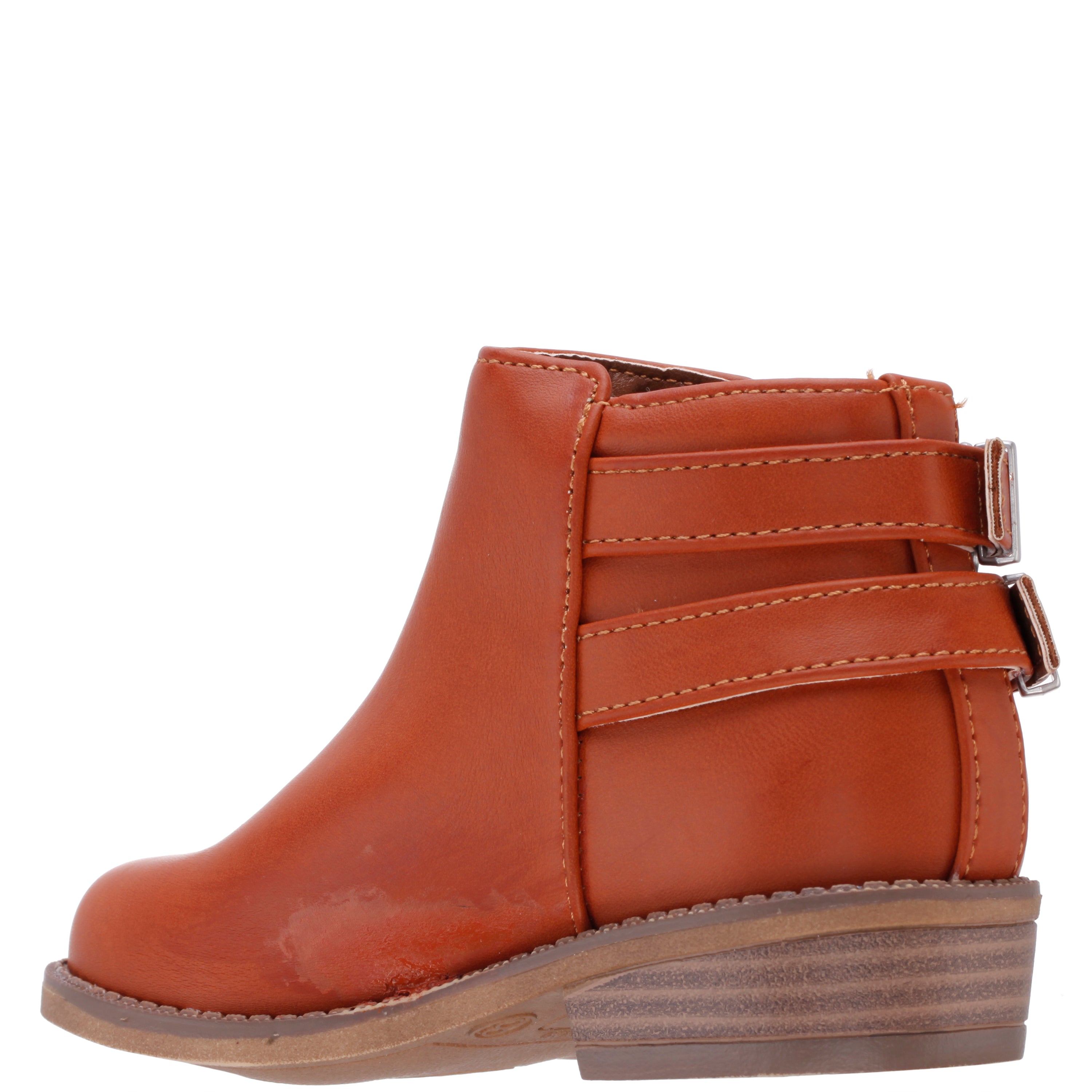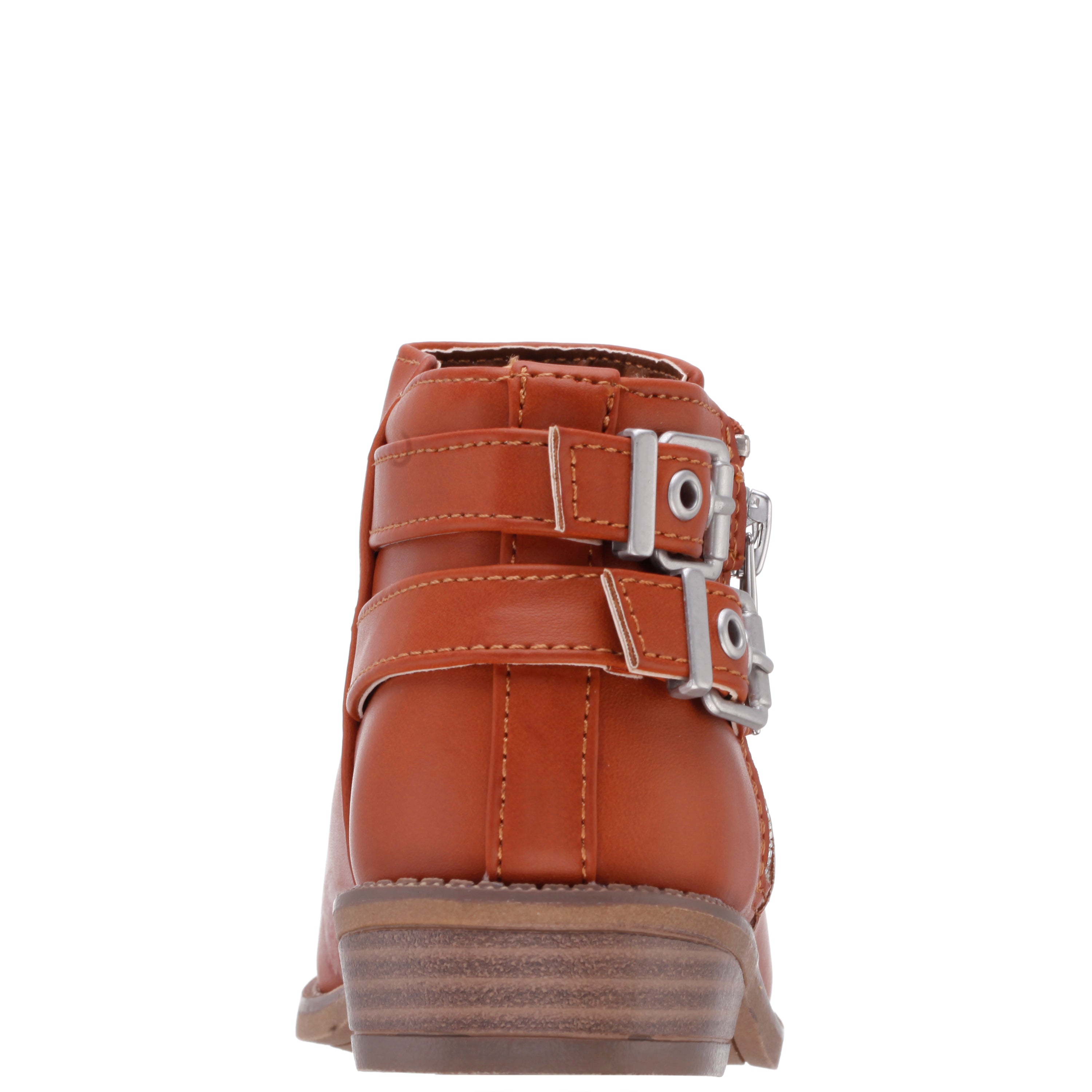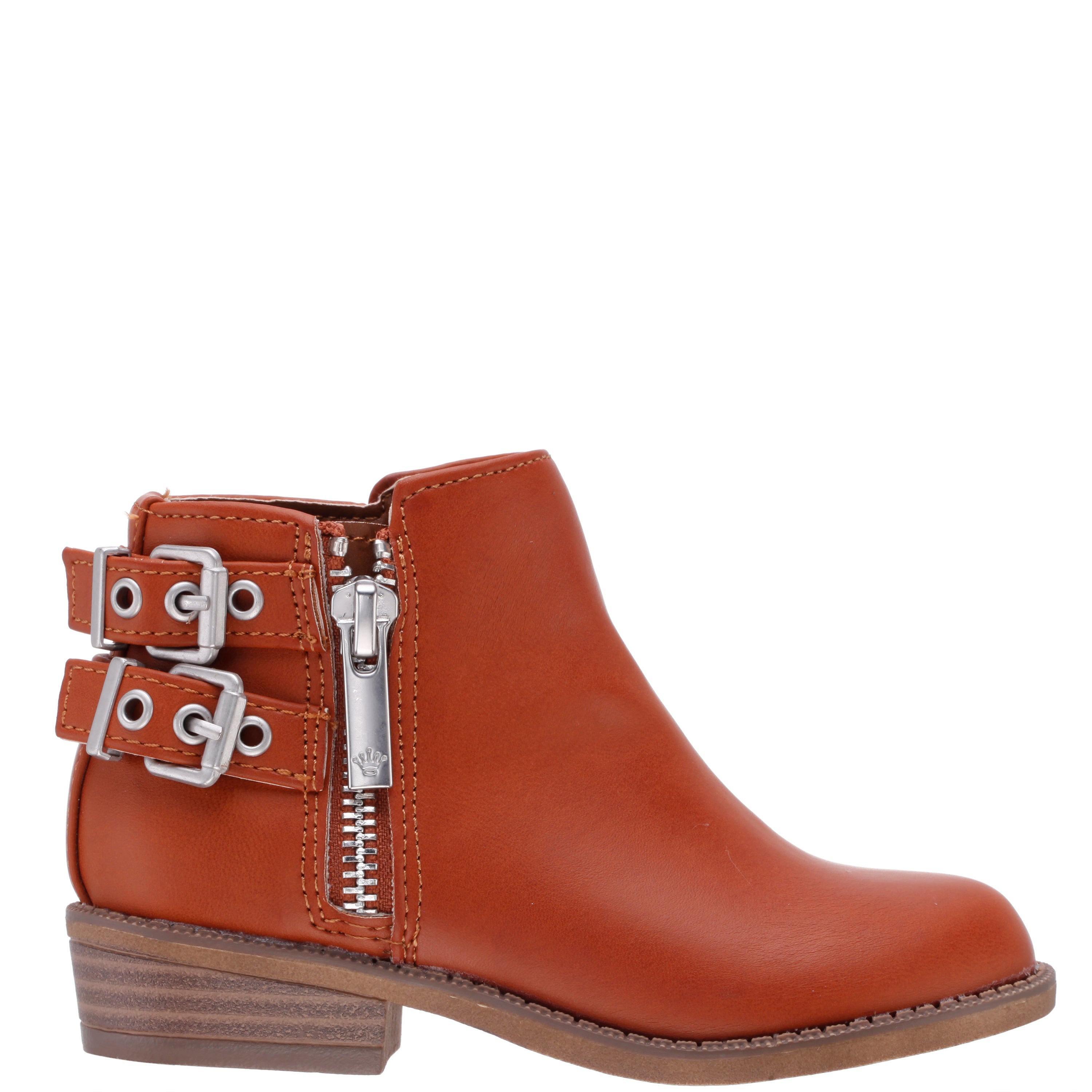 For an ankle bootie that will make an excellent addition to her wardrobe, look no further! This classic bootie update has dual straps with metal buckles and hardware details as well as a metal zipper for easy-on wear.