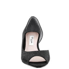 A stunning combination of elegance and ease for evening is available in wide-widths on a low-heel. Rossie by Nina mixes rows and rows of shimmering hot-fix faceted crystals to create a peep- toe-pump that is a must-have for any occasion where understated glamour is required.