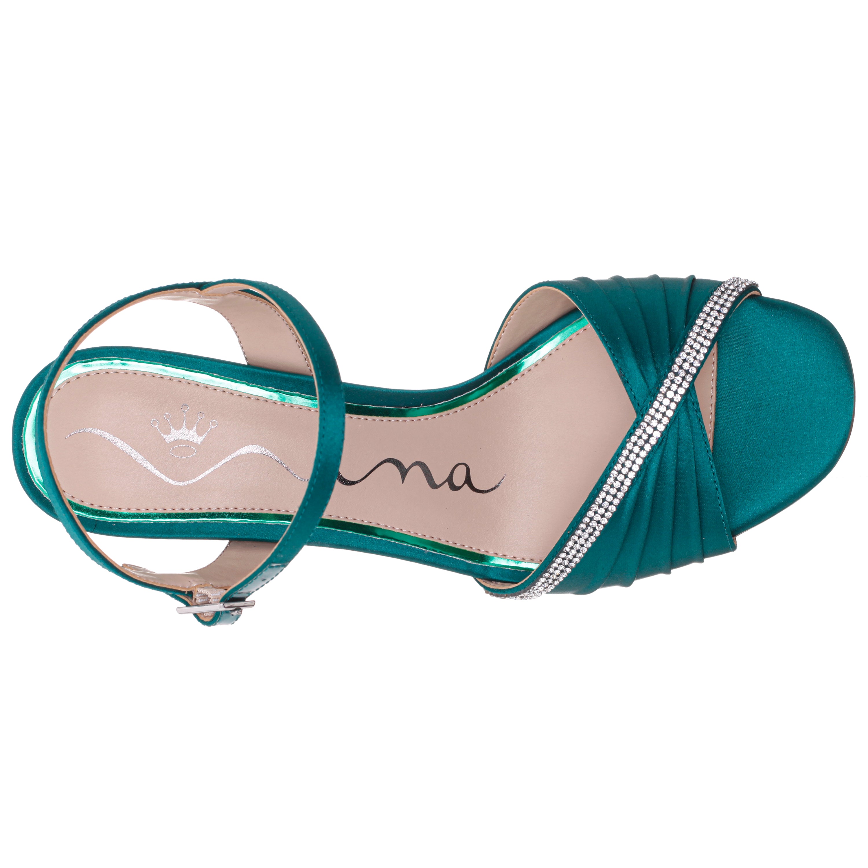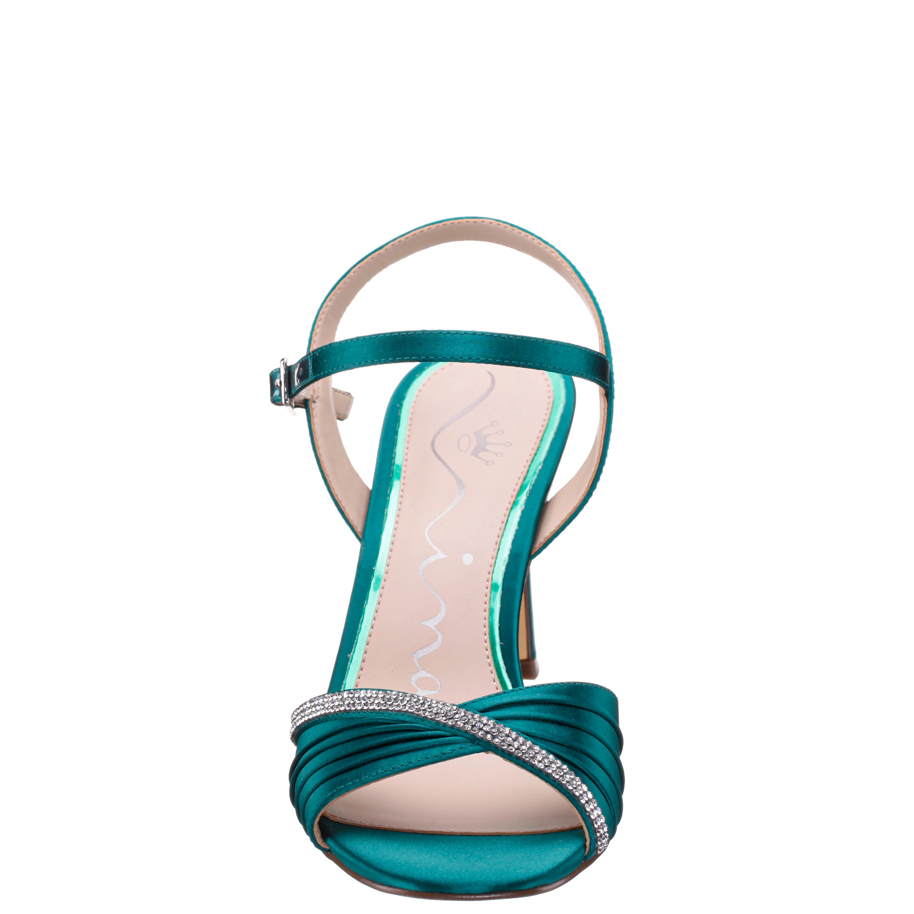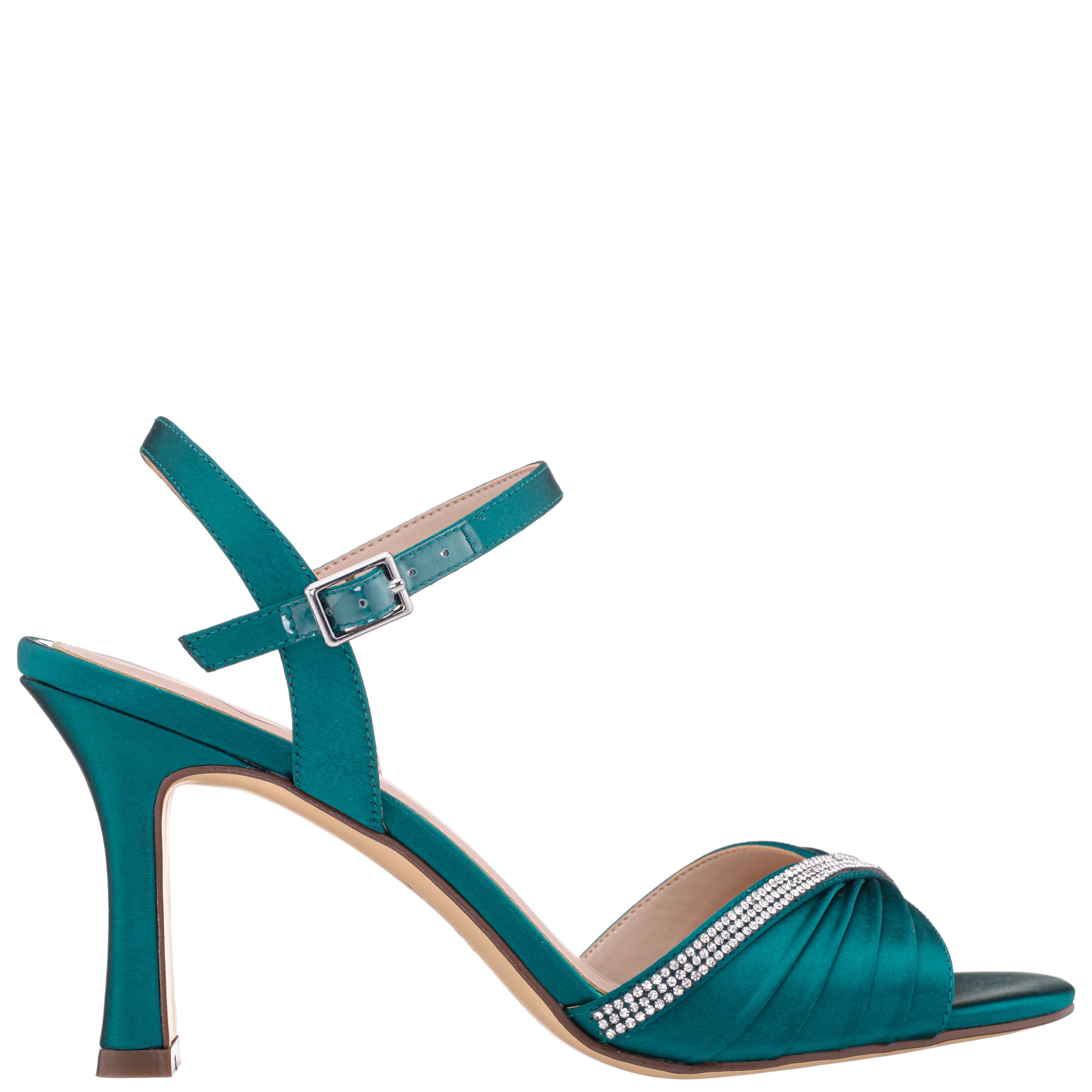 Elevate your evening ensemble with the AGNES by Nina Shoes , a breathtaking high-heel ankle strap sandal that delivers a touch of modern elegance to your look. The pleated vamp, accented with a shimmering crystal band, creates a graceful and flattering silhouette. Set on a perfectly shaped heel and secured with a chic ankle strap, the AGNES is the perfect choice for any special occasion, ensuring you shine with every step.