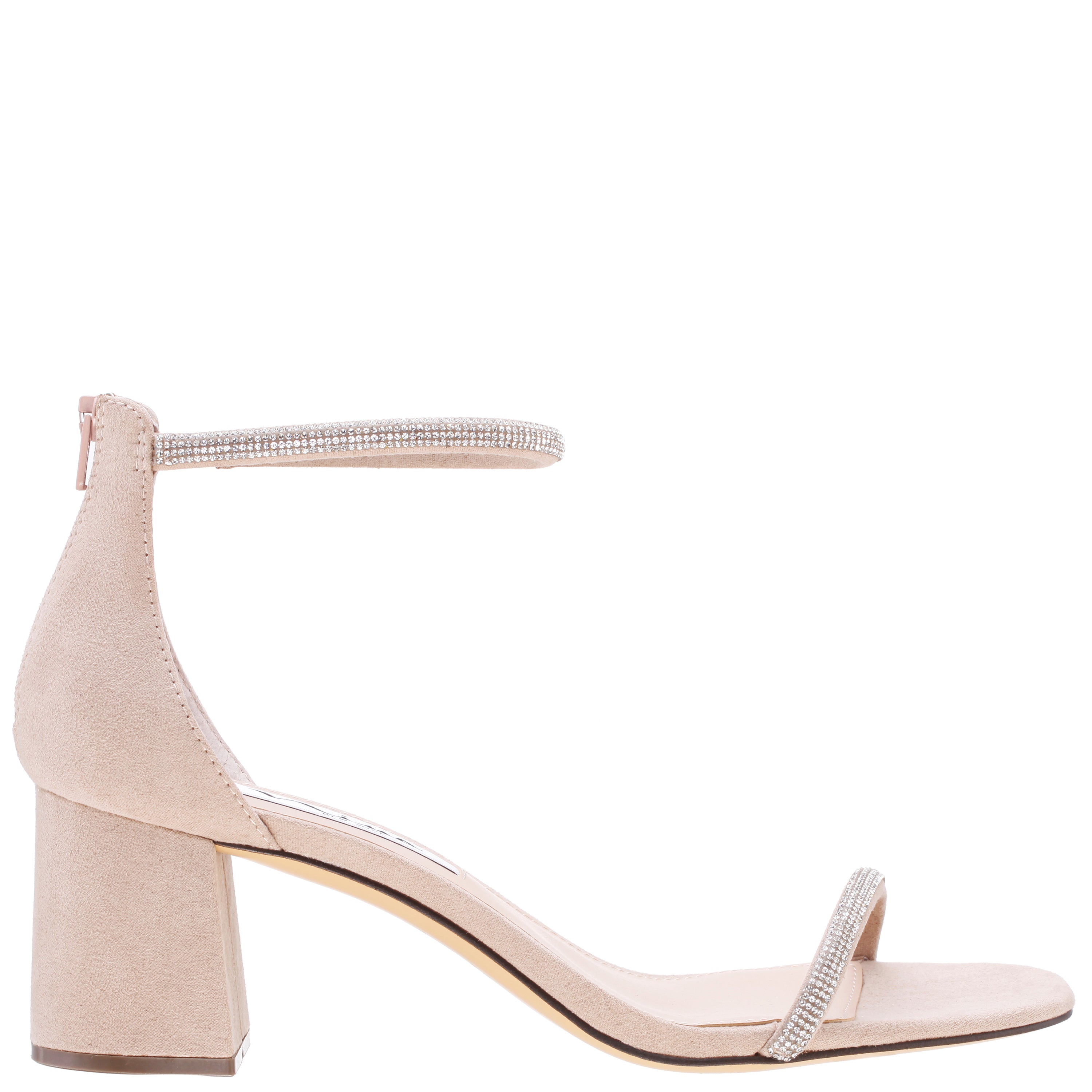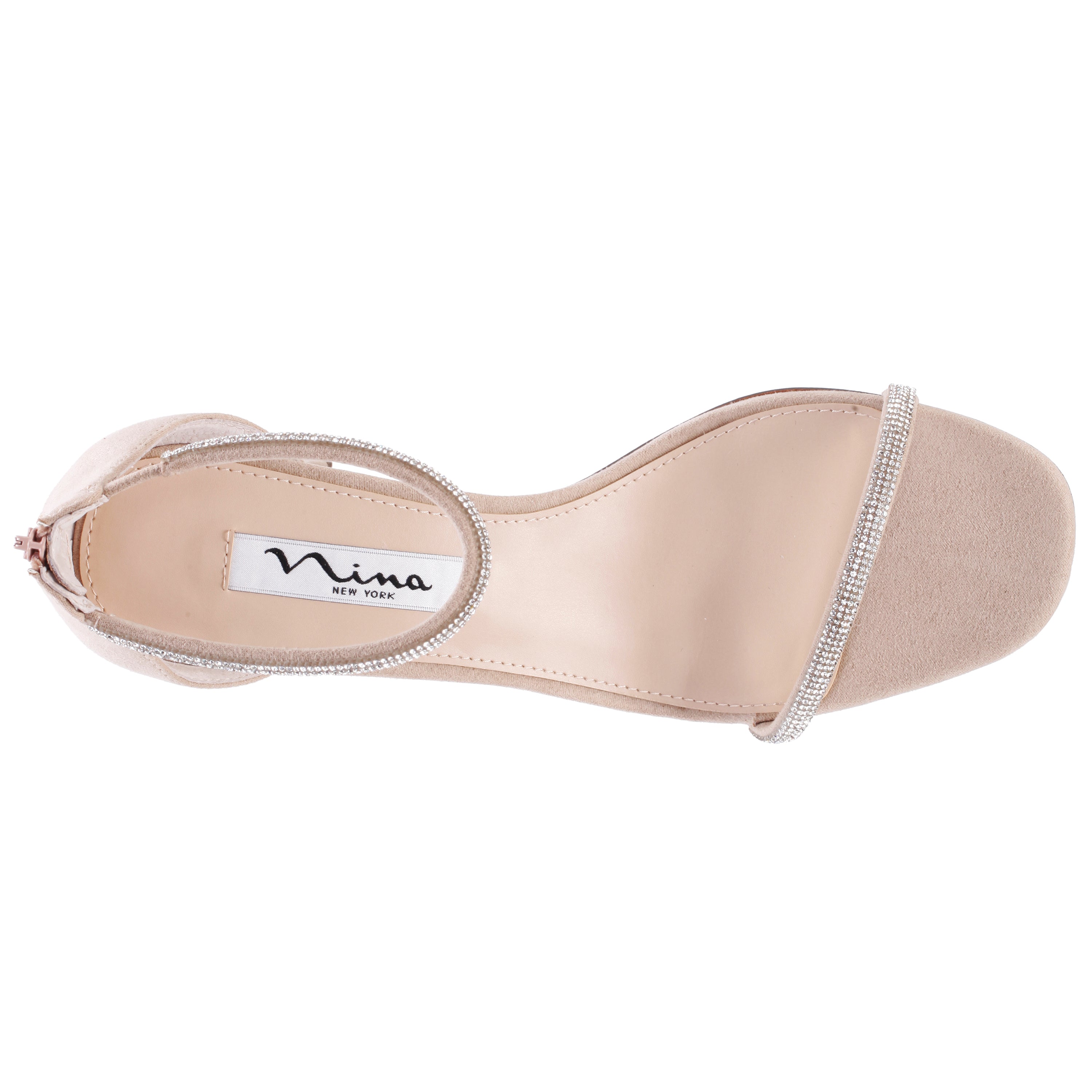 Dancing gracefully on the foot, the BARBY by Nina Shoes is a block mid-heel sandal that drapes the foot in slender ribbons of sparkling crystals at the vamp and ankle. The nearly invisible back-zip whispers of seamless elegance, enhancing the modern femininity of this enchanting design. Effortlessly flowing from casual jeans to a little black dress, it infuses every step with a touch of sparkle and timeless sophistication.