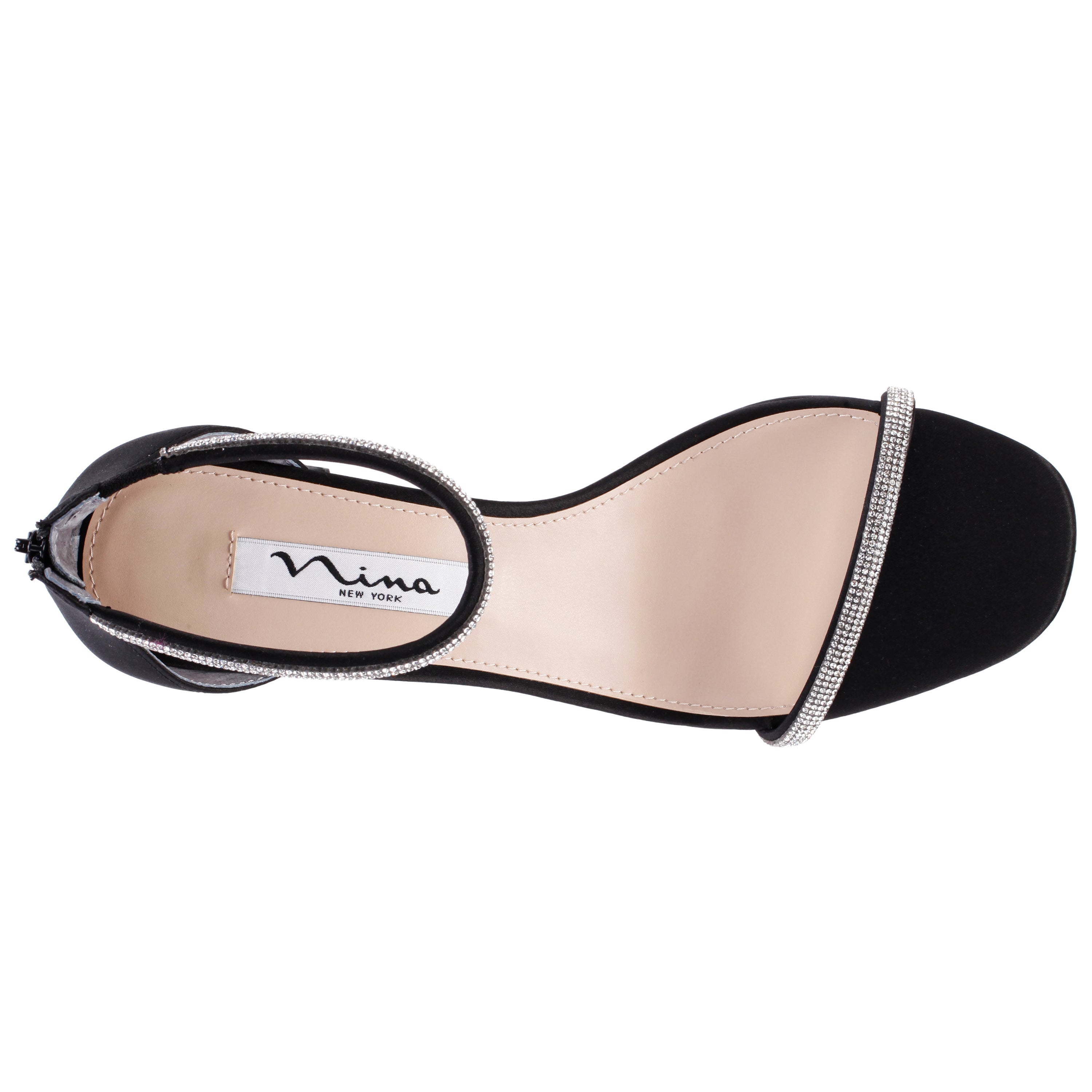 Dancing gracefully on the foot, the BARBY by Nina Shoes is a block mid-heel sandal that drapes the foot in slender ribbons of sparkling crystals at the vamp and ankle. The nearly invisible back-zip whispers of seamless elegance, enhancing the modern femininity of this enchanting design. Effortlessly flowing from casual jeans to a little black dress, it infuses every step with a touch of sparkle and timeless sophistication.