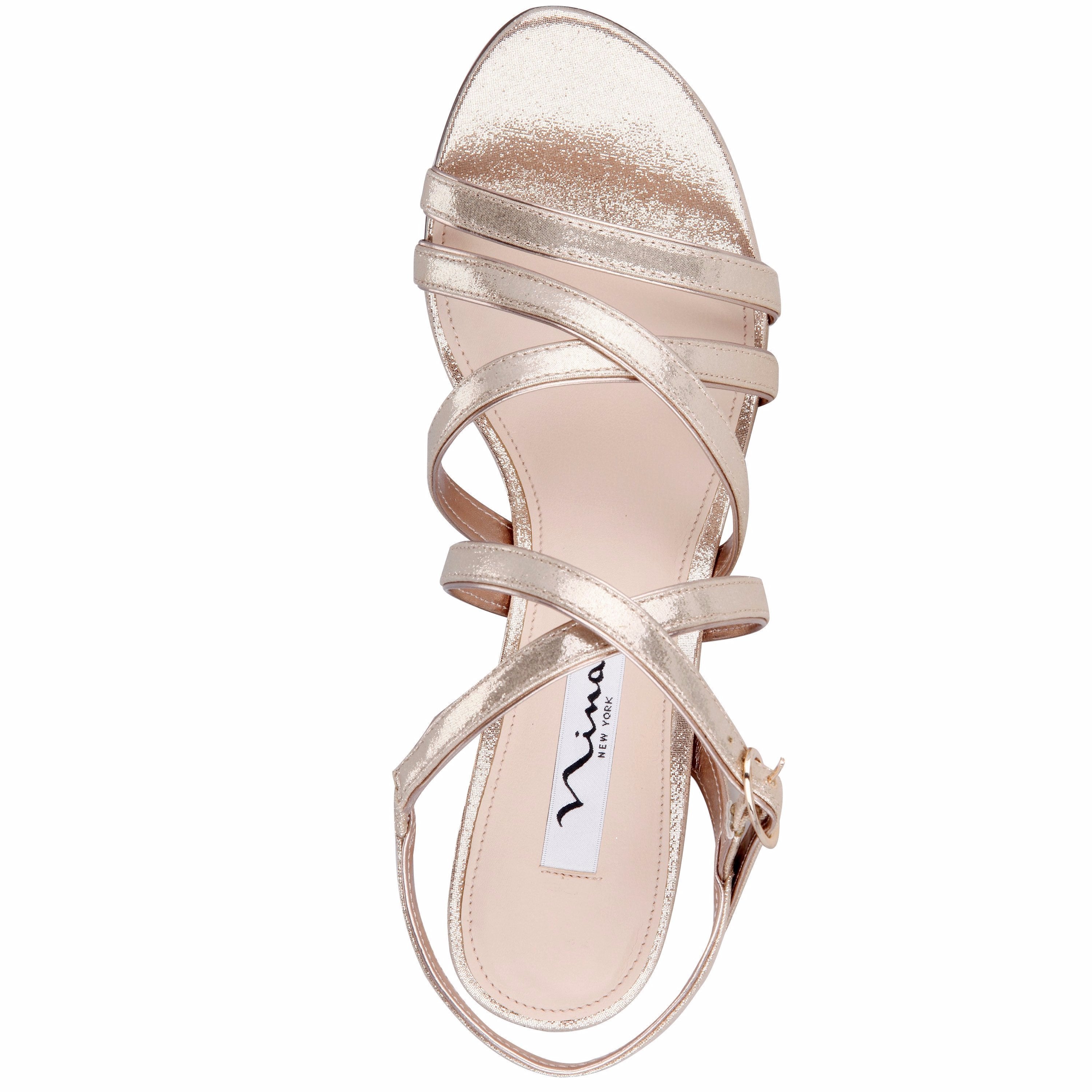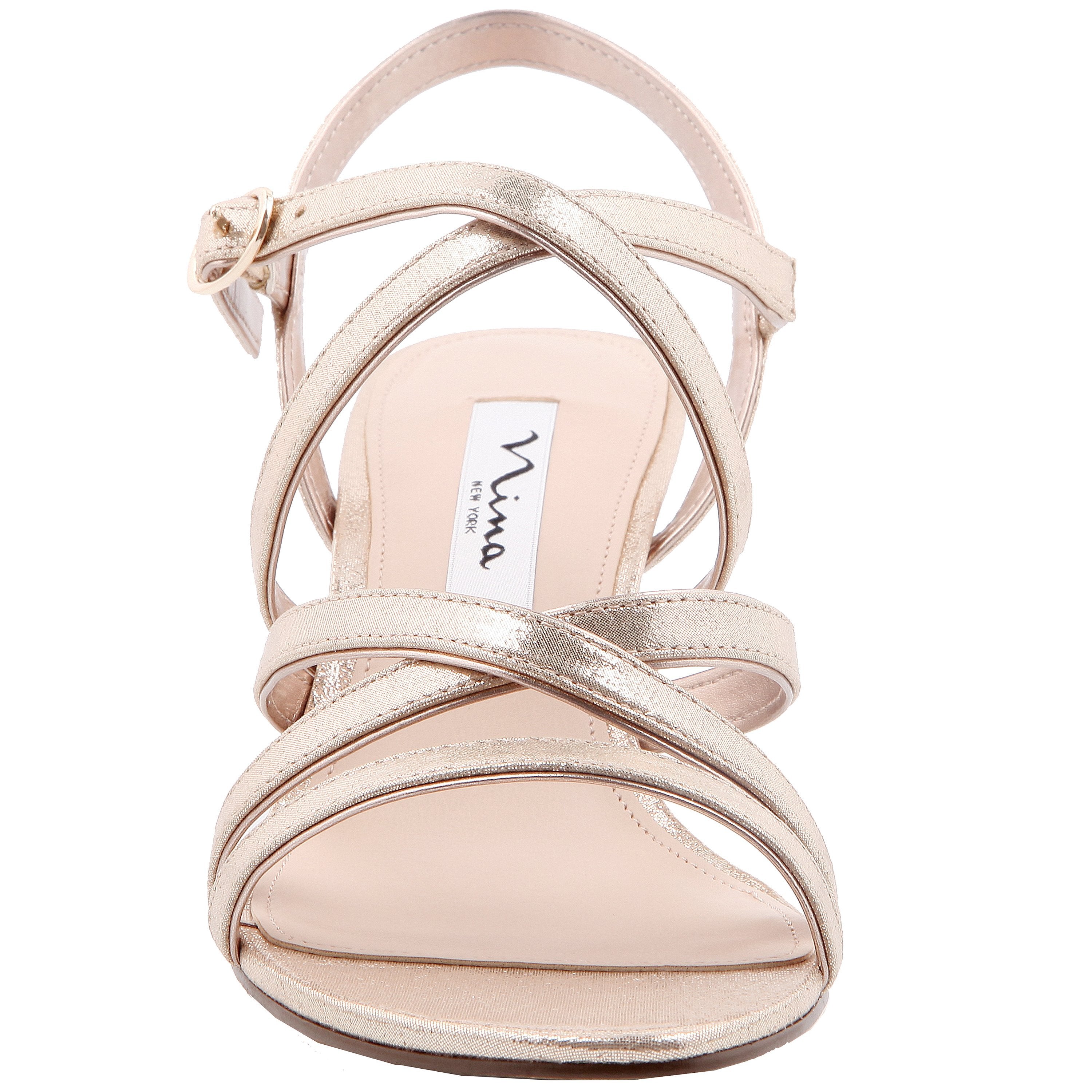 From the spotlight to the dance floor, this strappy sandal with a modern edge is the perfect choice for any day to night occasion. Genaya by Nina is as appropriate with a LBD as with a pair of dressy jean for dinner. Wide-width available.