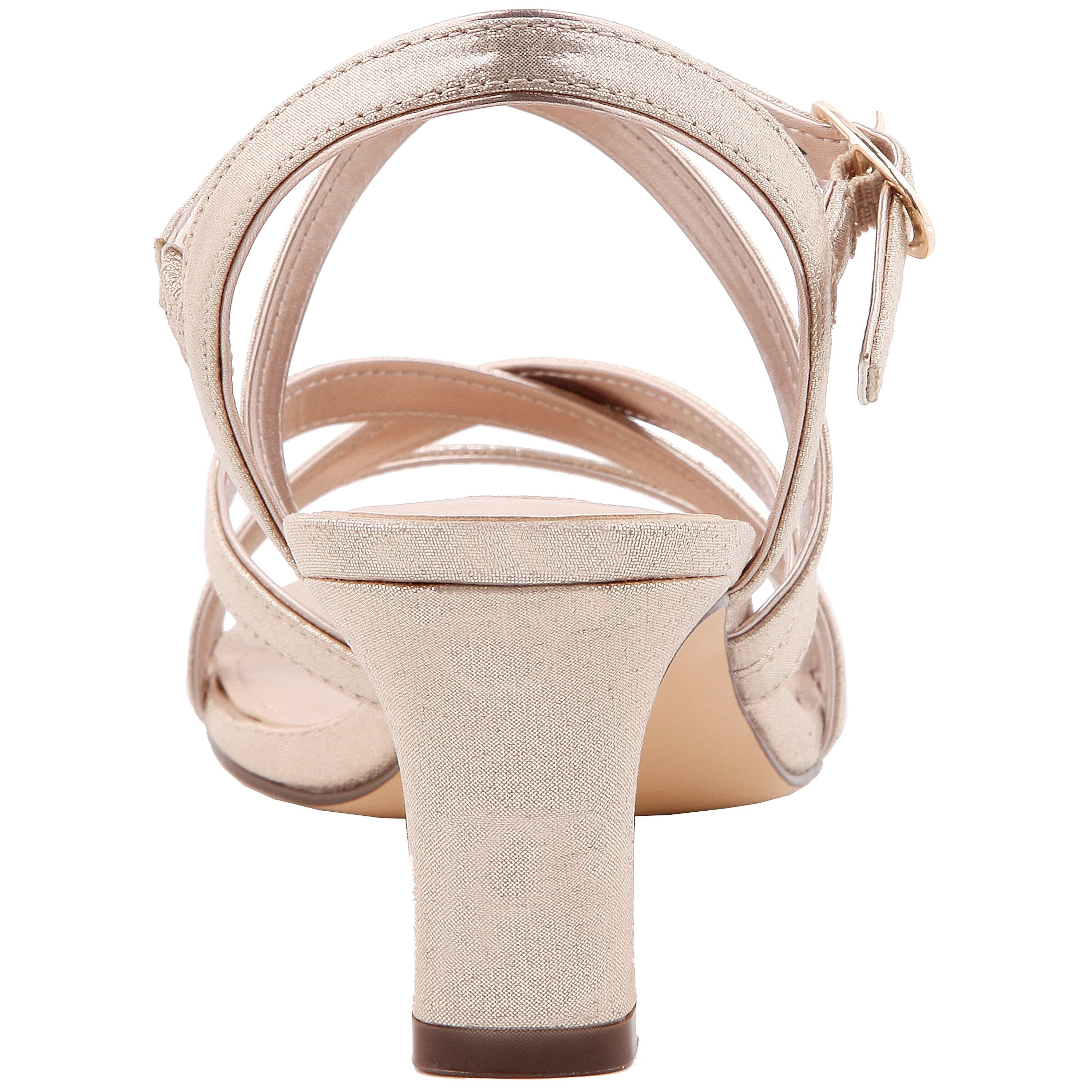 TAUPE SATIN STRAPPY MID-HEEL DRESSY SANDAL