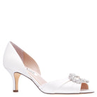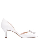 IVORY SATIN MID-HEEL D'ORSAY PUMPS WITH JEWELED BUCKLE