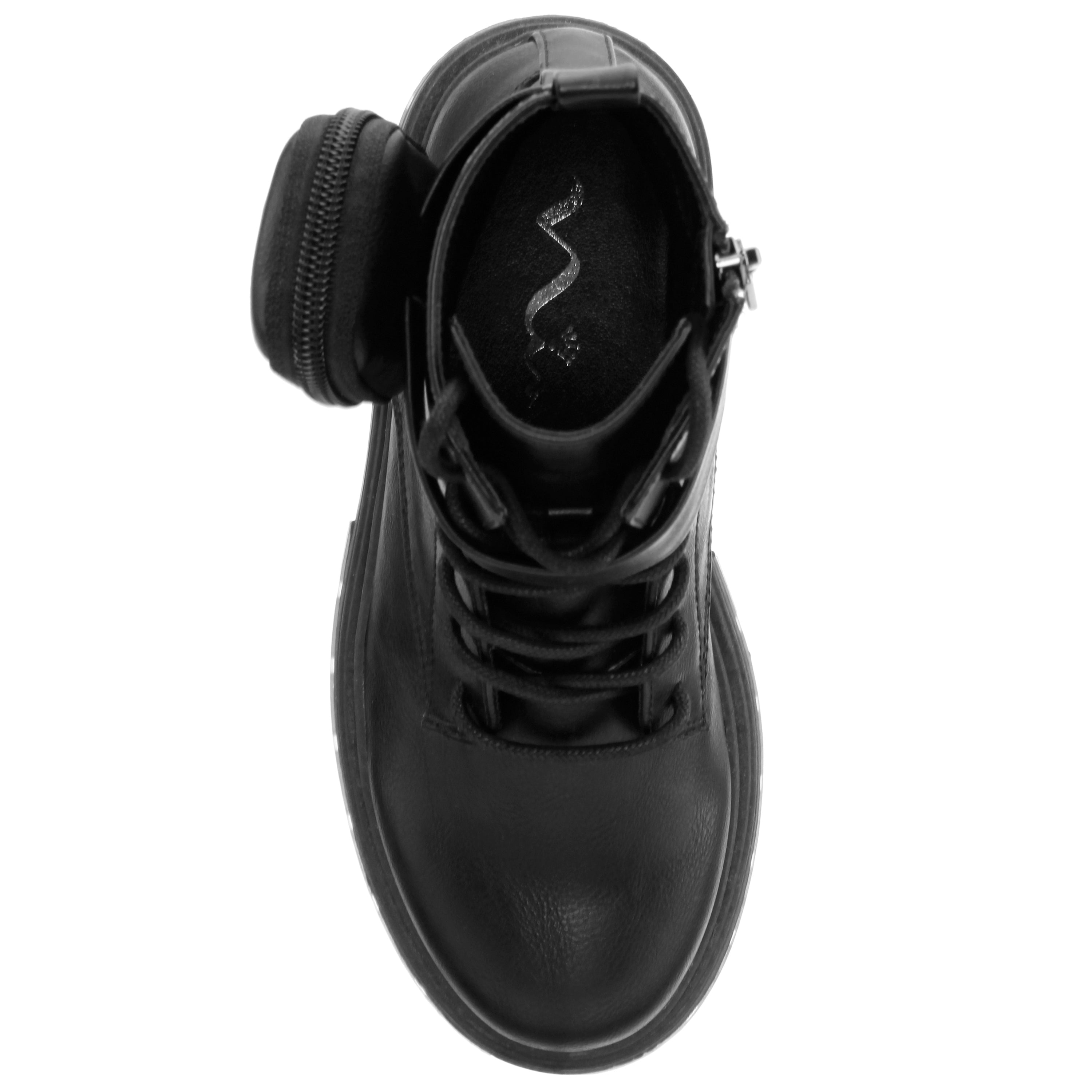 Tumbled Synthetic Leather Zipper Pouch Functional Inside Zipper Shoe Laces Cushioned Memory Foam Insole Man-made Upper and Lining Material Flexible Non-slip TPR Outsole Heel Height= 1.5" Imported