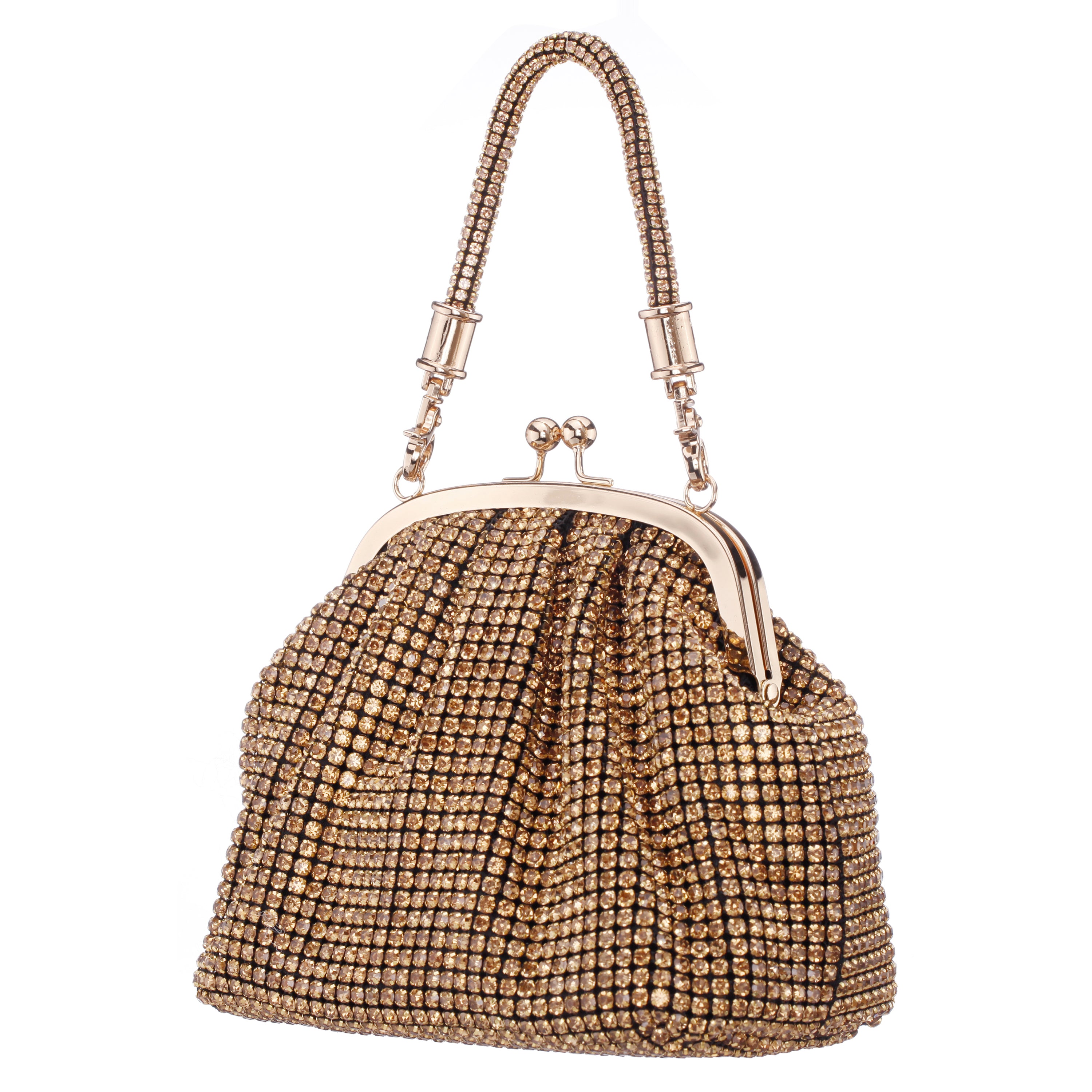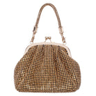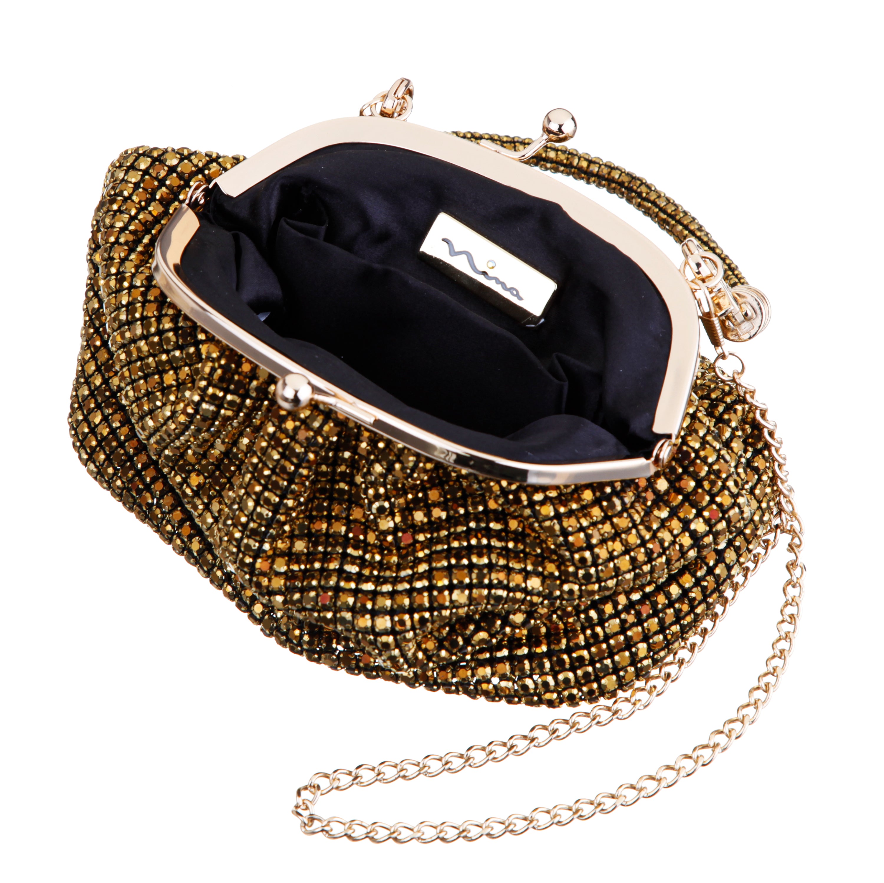 The KIARA by Nina is an irresistible blend of vintage glamour and modern sparkle, designed to dazzle from every angle. Its sculpted silhouette and crystal mesh handle offer a high-shine statement, while the kiss-lock closure adds timeless charm. Whether you’re attending a wedding, black-tie affair, or festive evening event, KIARA elevates your ensemble with chic elegance. The satin-lined interior features a back wall pocket for organization, and the 18” drop-length chain strap lets you wear it hands-free or as a stylish clutch. With every detail crafted for sophistication, the KIARA by Nina is a radiant finishing touch you’ll reach for again and again.