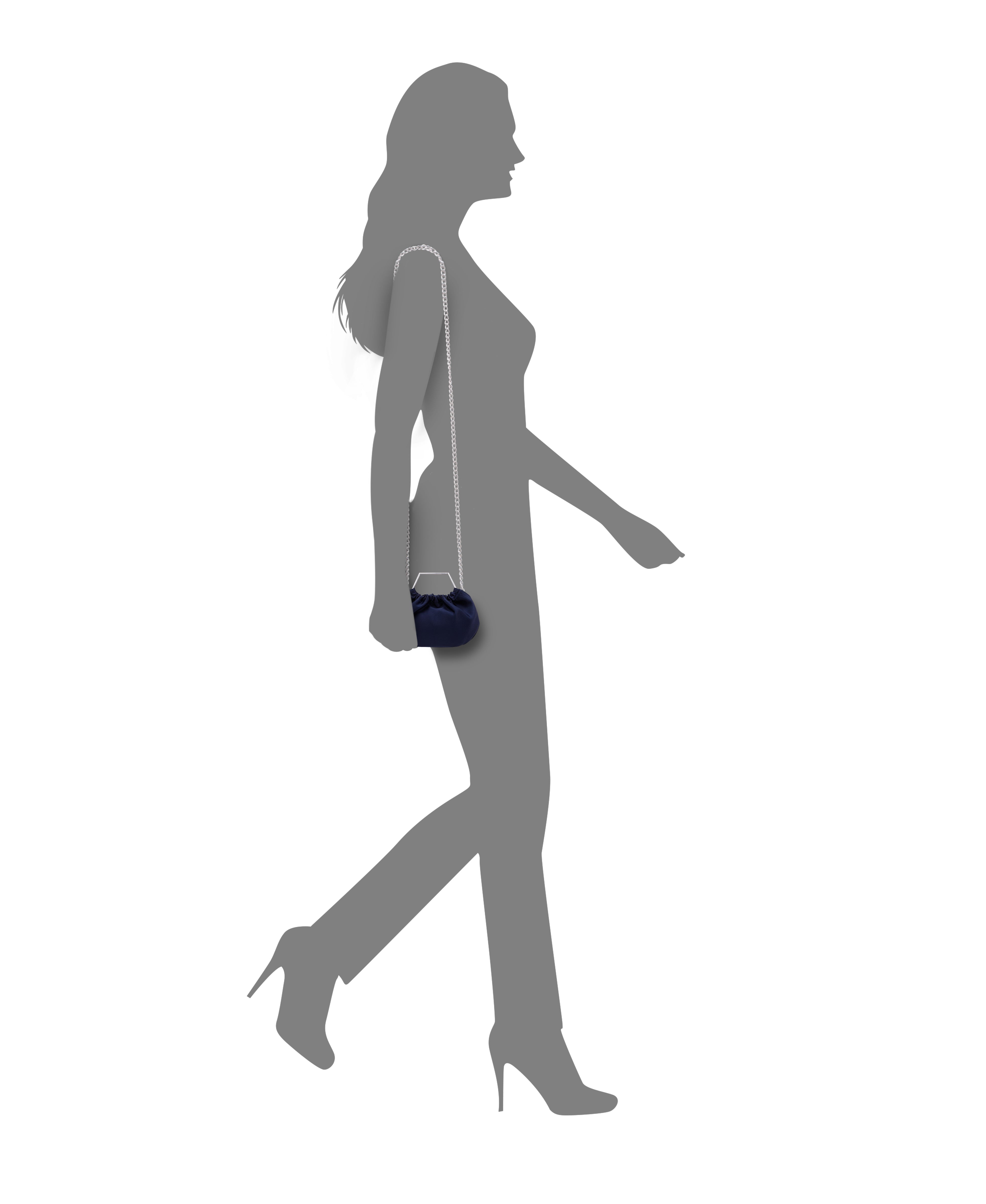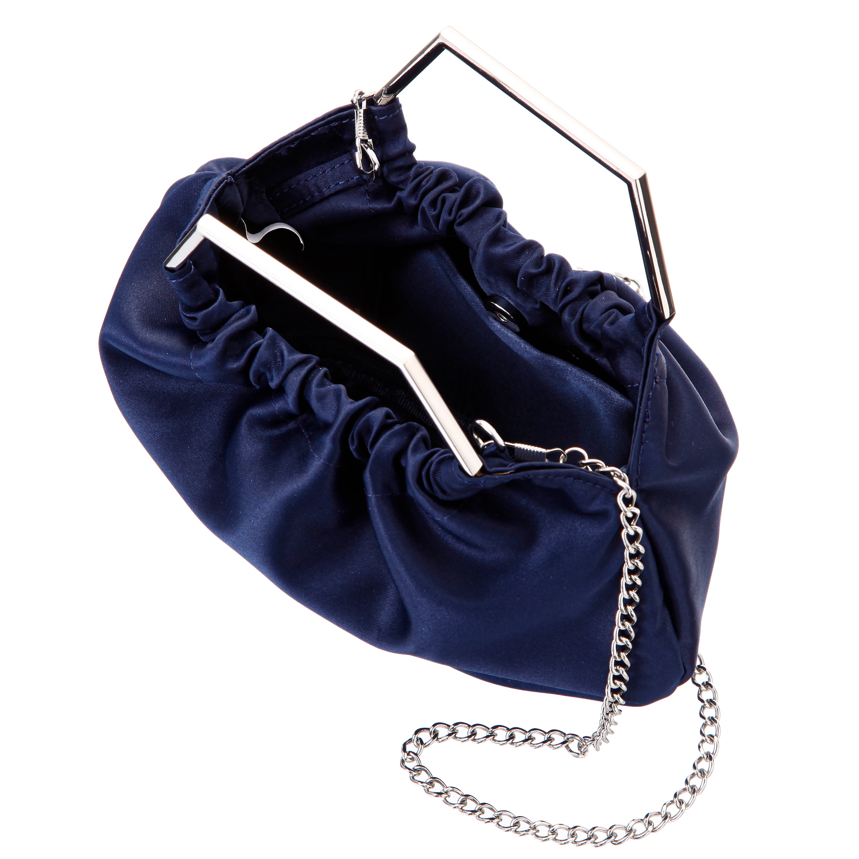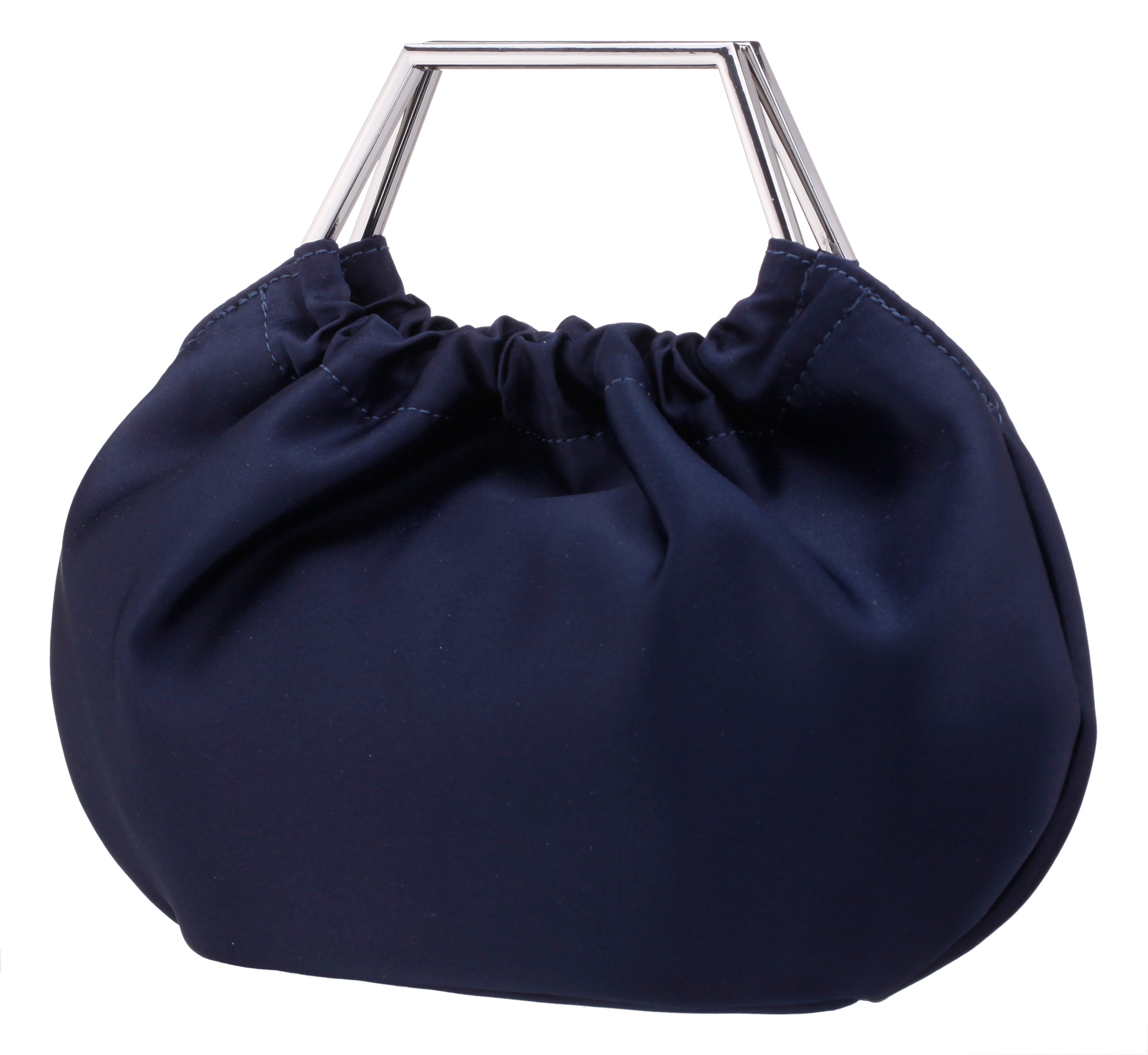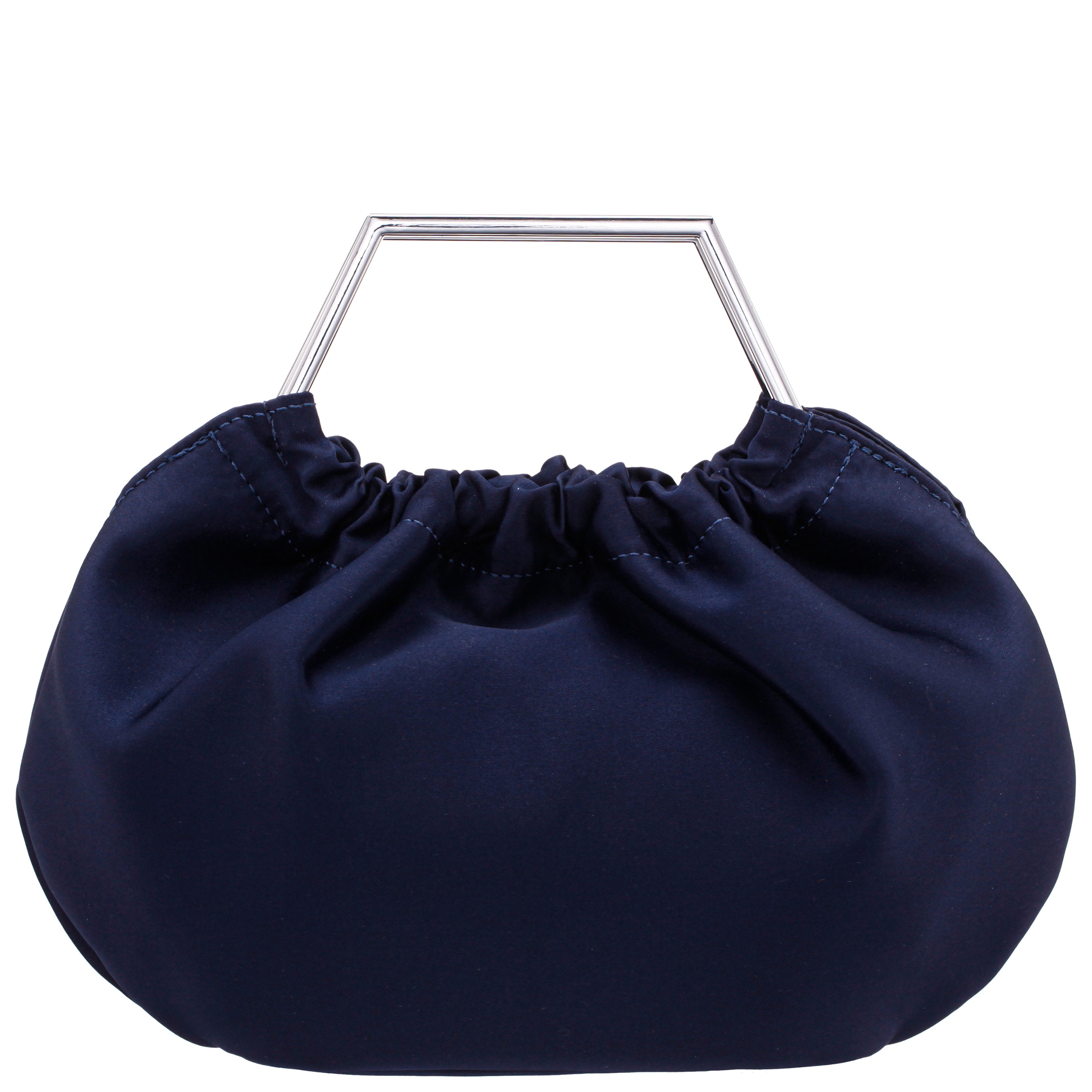 Description: Metal Handle Satin Pouch BagALLISON-NAVY