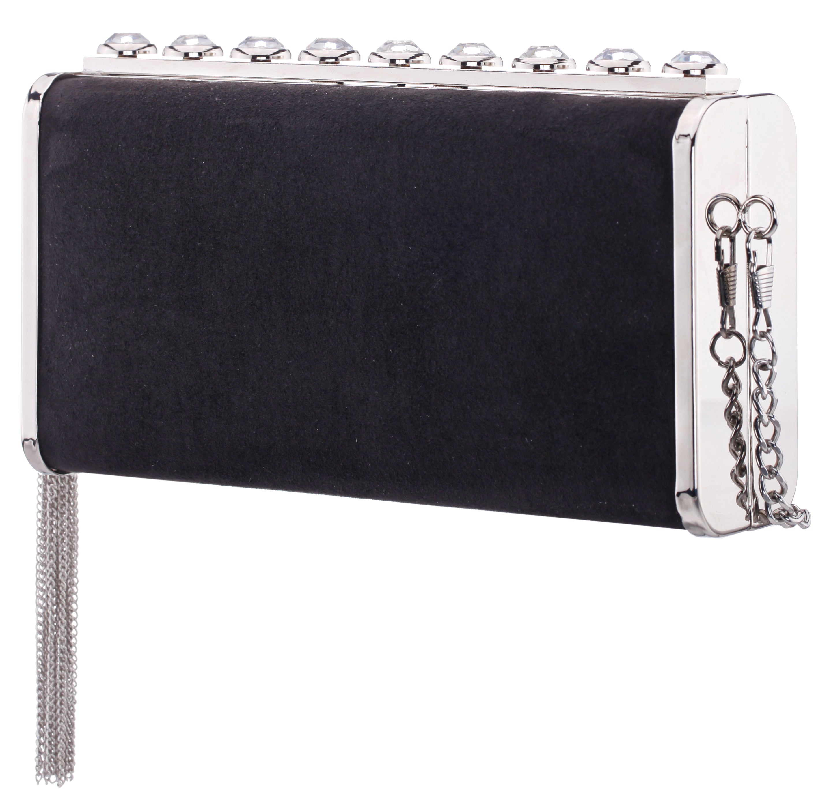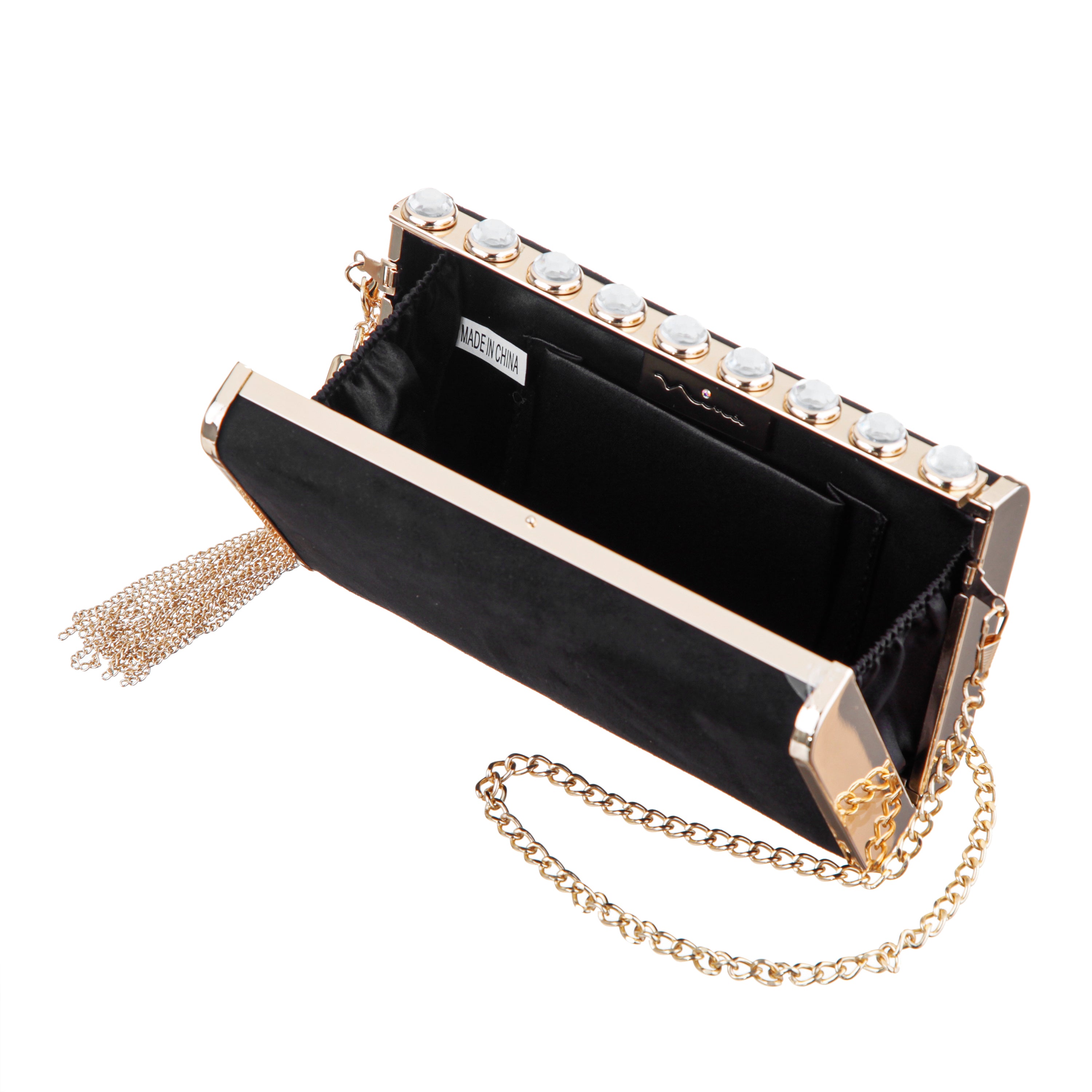 The AMOS by Nina is the ultimate go-to evening minaudière, blending chic minimalism with statement-worthy shine. With its sleek, structured design and variety of eye-catching finishes, AMOS brings polish and poise to every occasion—whether you're dressing up for a cocktail party, formal event, or elegant night out. Its compact shape is just the right size for essentials, and the lift-lock closure ensures everything stays secure. A soft satin-lined interior with a back wall pocket offers discreet storage, while the 18” drop-length chain strap adds effortless versatility. From shimmer to bold textures, the AMOS by Nina is made to stand out beautifully. For complementary styles, explore our satin shop or browse our newest arrivals.