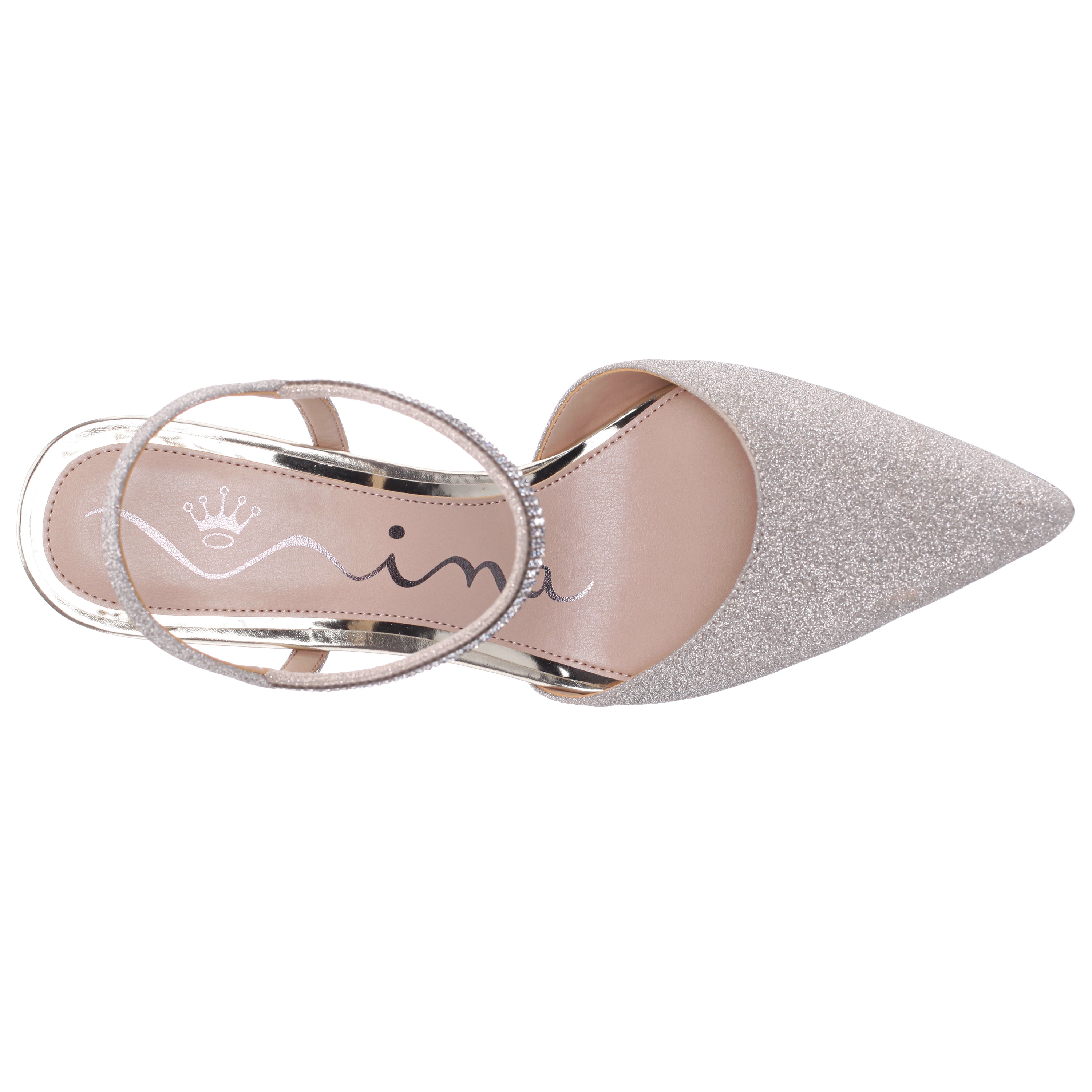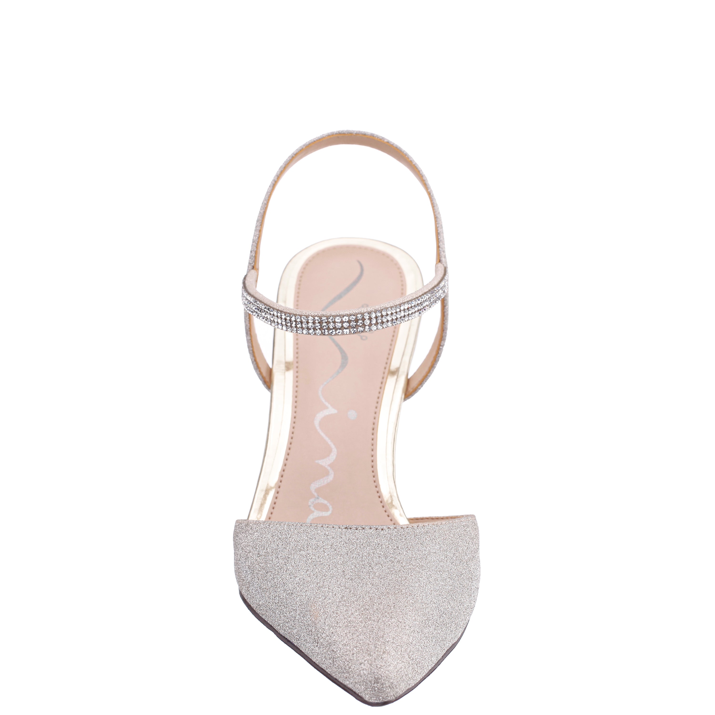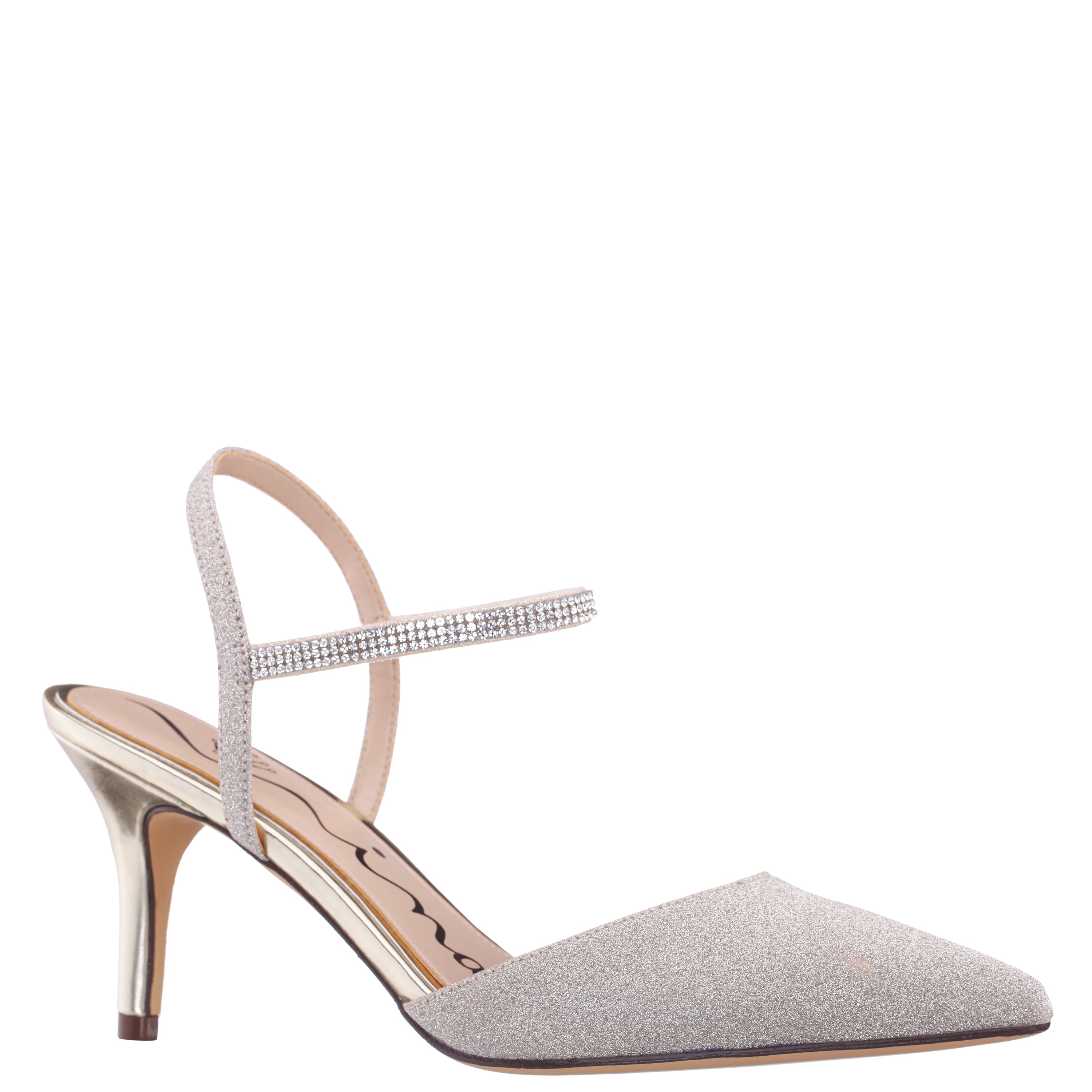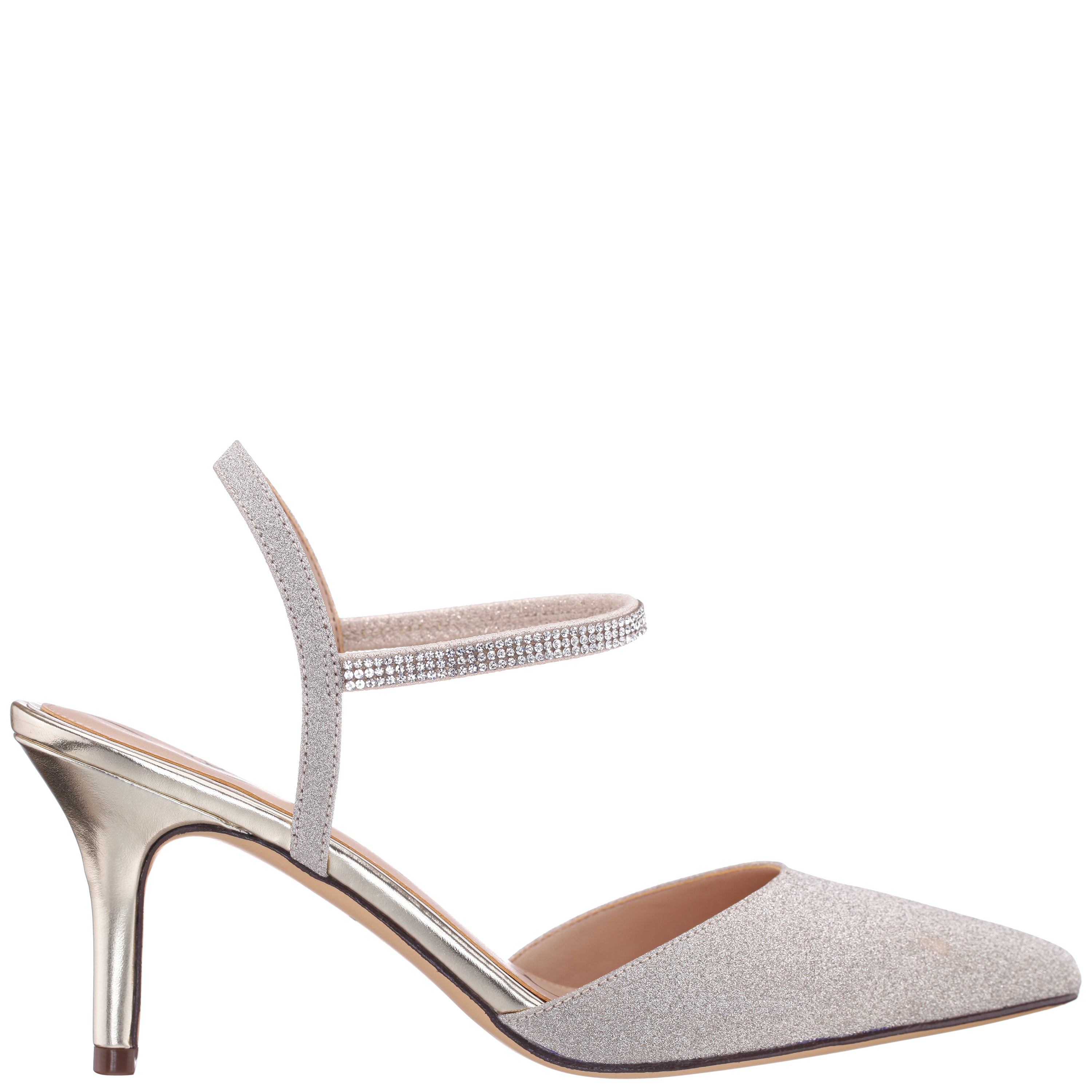 GOLD SLING BACK MID-HEEL DRESS SHOES