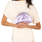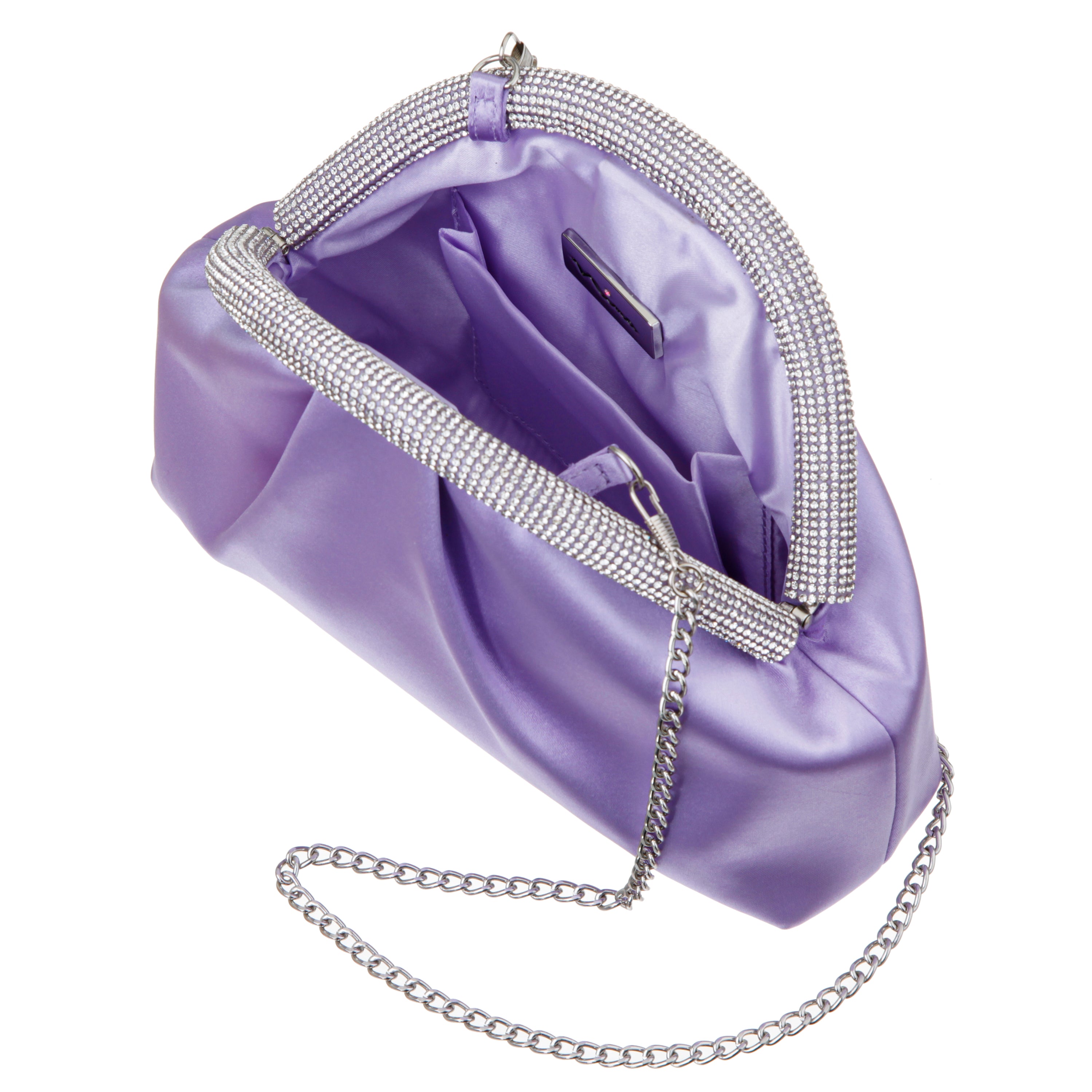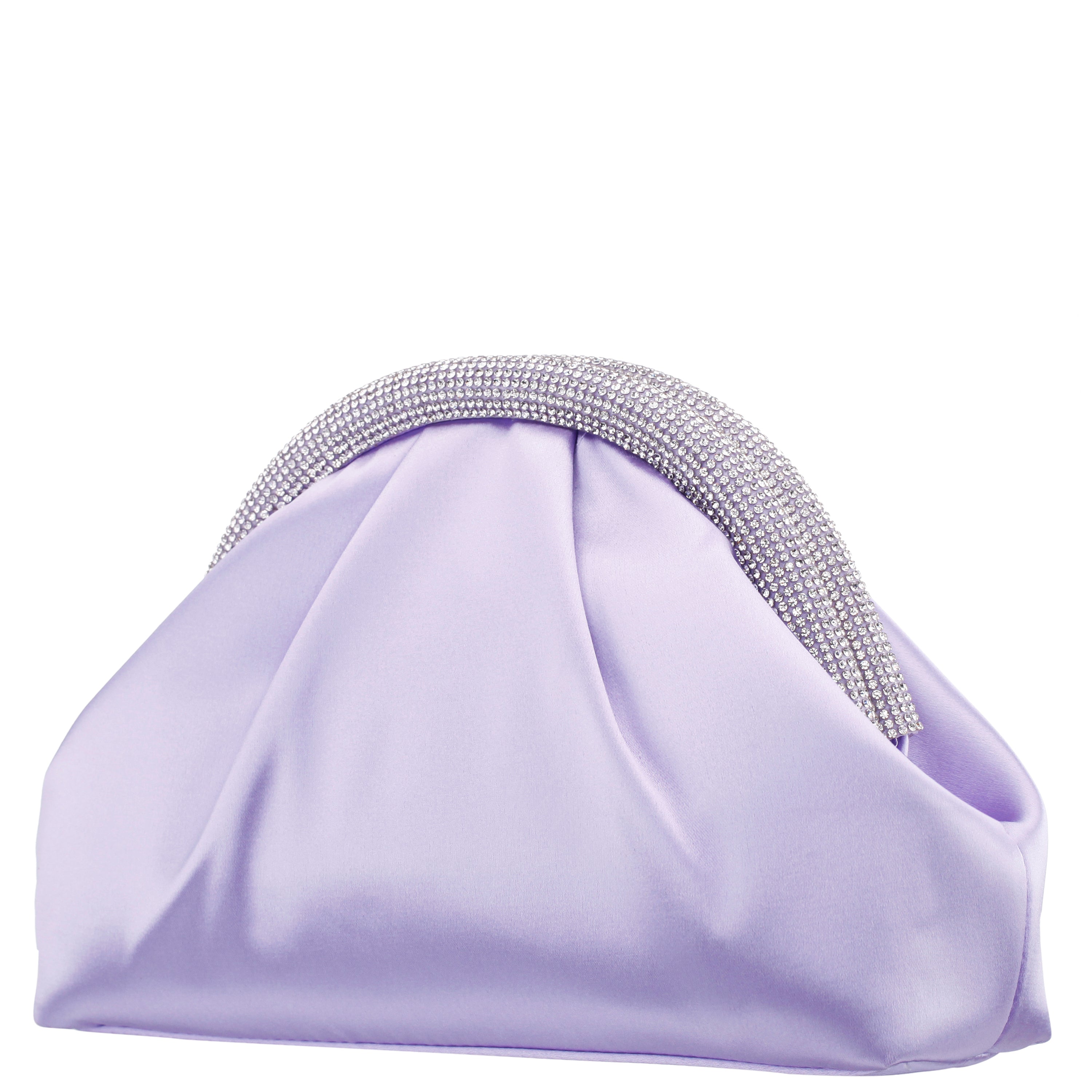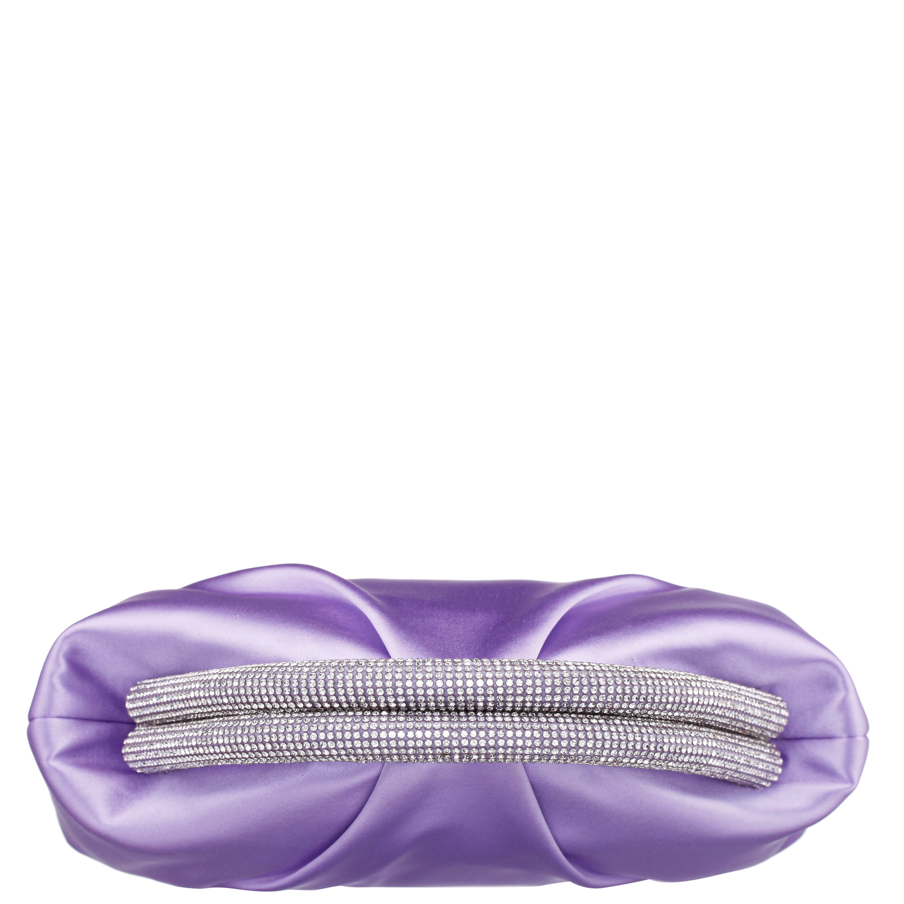 ROYAL LILAC SATIN/GLASS CRYSTAL FRAME CLUTCH