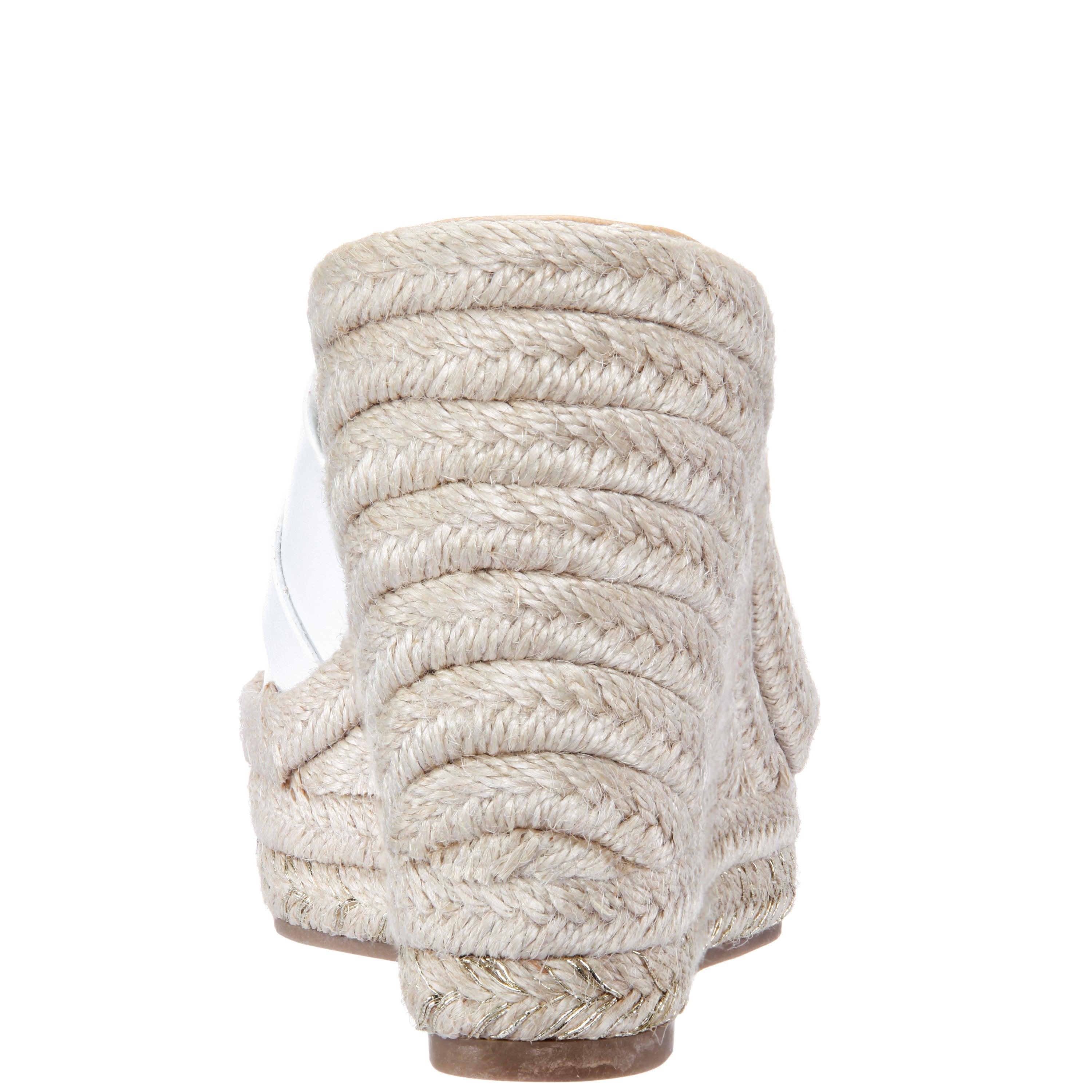 Simply chic unlined vegan vachetta slip on slide with clean lines accented with grommets. A natural jute wrapped platform wedge accented with metallic thread detail, it features a molded contoured footbed with memory foam padding, wrapped in a breathable, soft sueded finish.