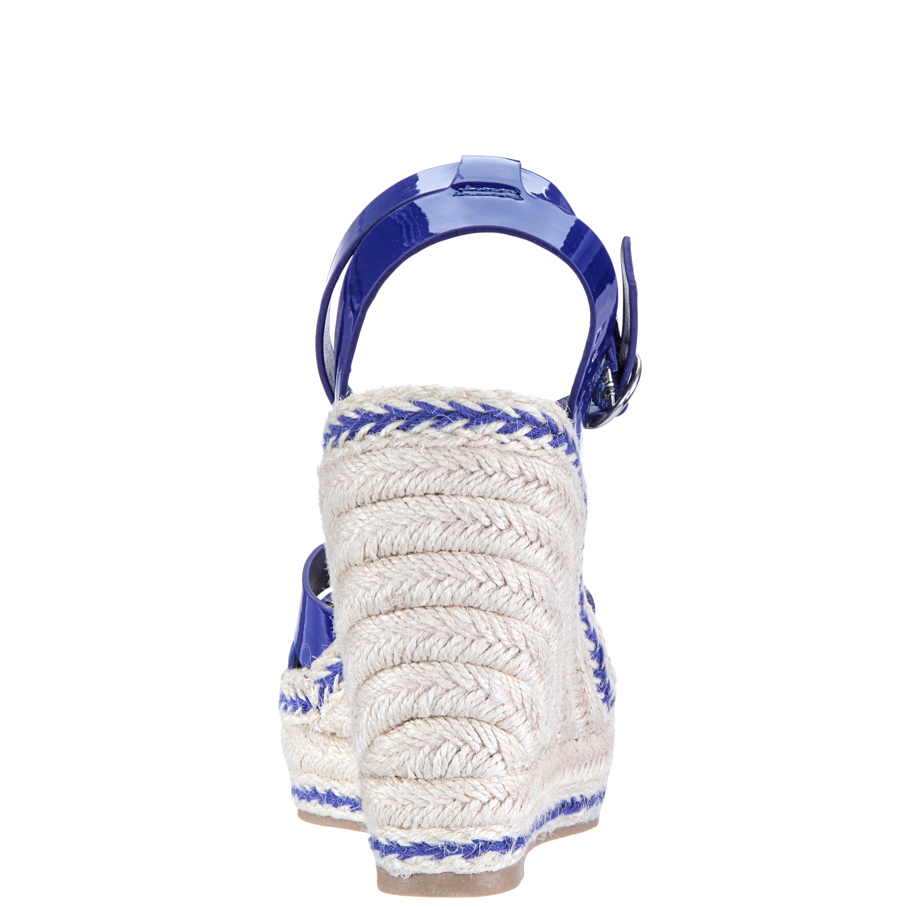 Vibrant vegan patent shines with this eye-catching feminine ankle strap sandal with an adjustable back strap that takes you from day to date! The colored rope braid accents the natural jute wrapped platform wedge. It features a molded contoured footbed with memory foam padding, wrapped in a breathable, soft sueded finish.