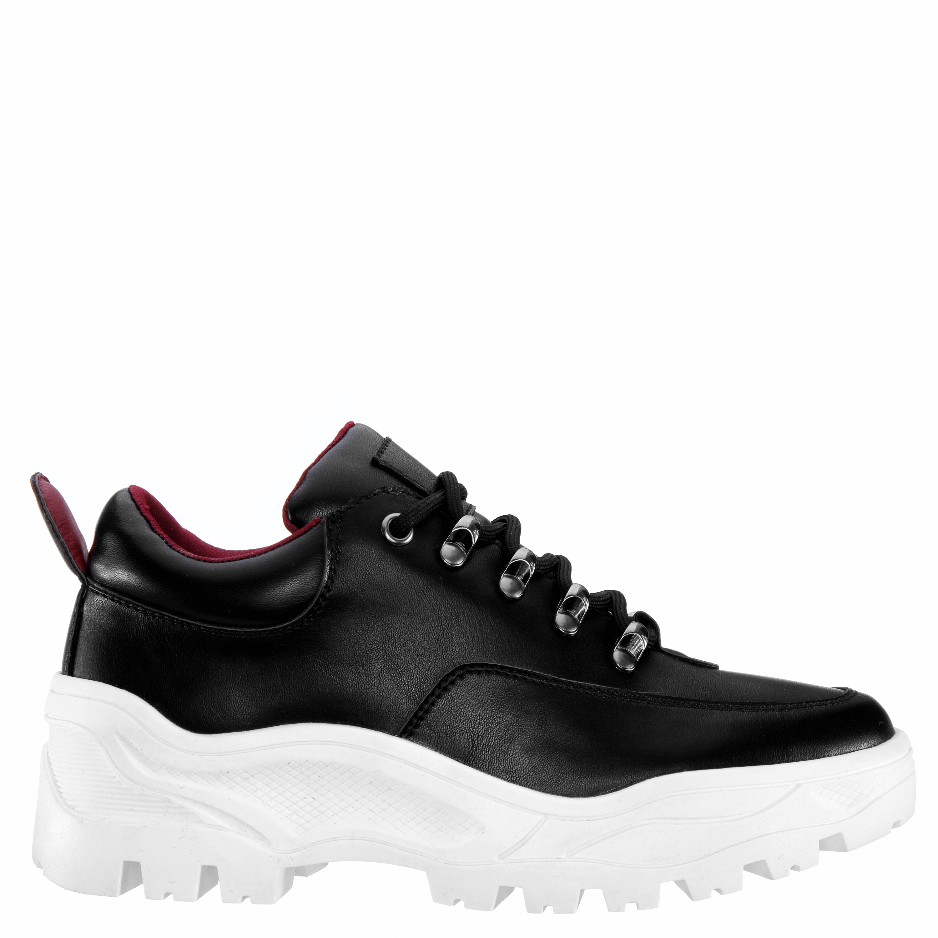 Go with the flow – the sporty style of this carefree low-top sneaker takes you everywhere. Light & flexible with a softly padded collar & soft jersey knit lining Sporty D-ring hardware & heavy stitches in Vegan rugged PU leathers
