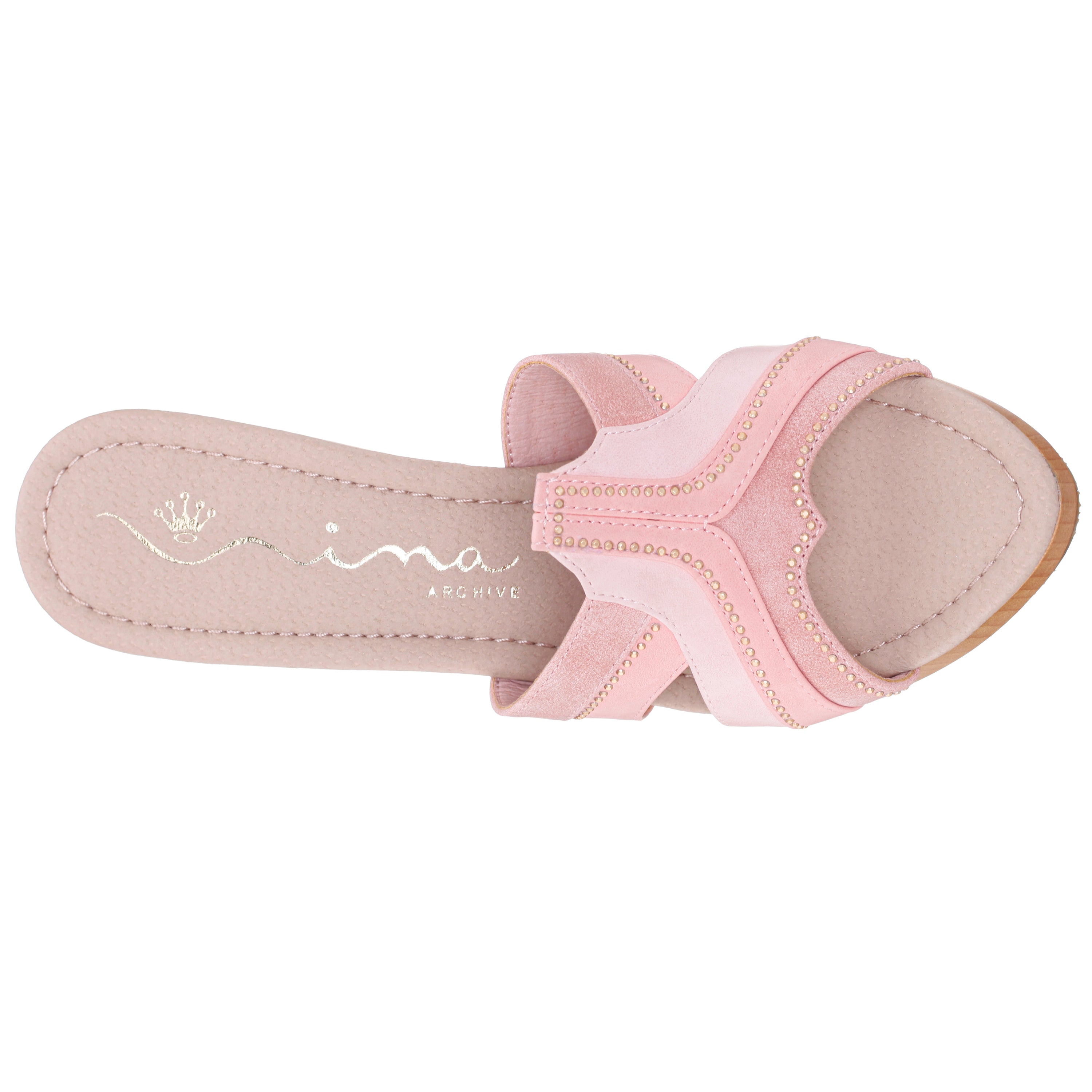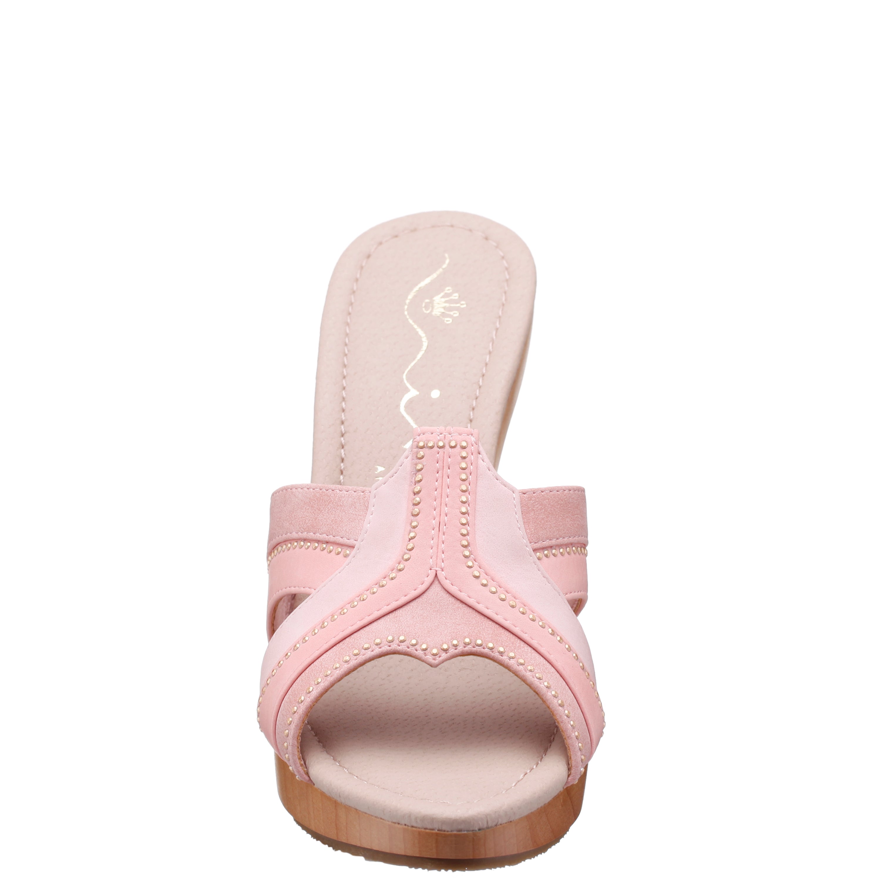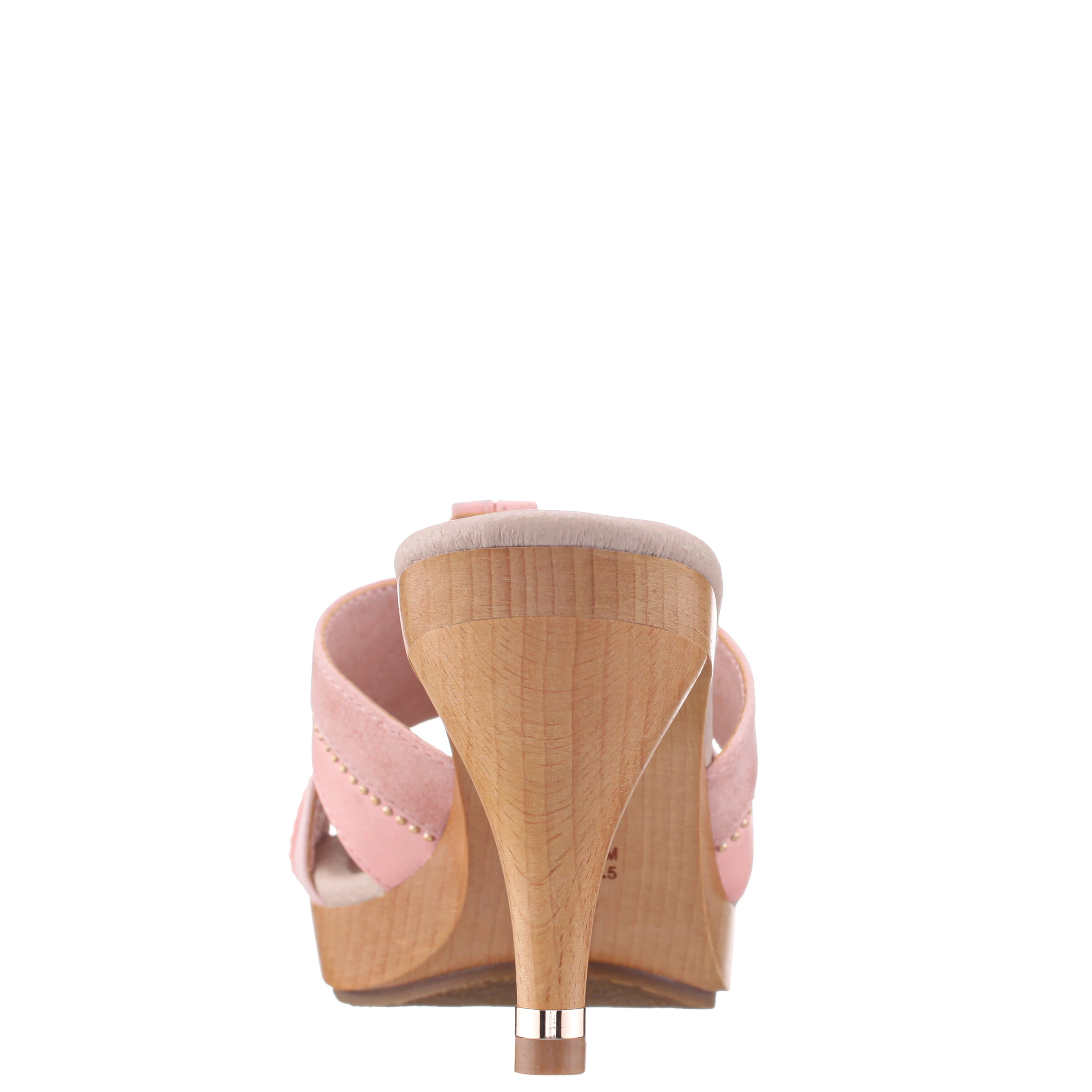 SOFT PEACH SLIDE SANDAL ON A WOODEN BOTTOM
