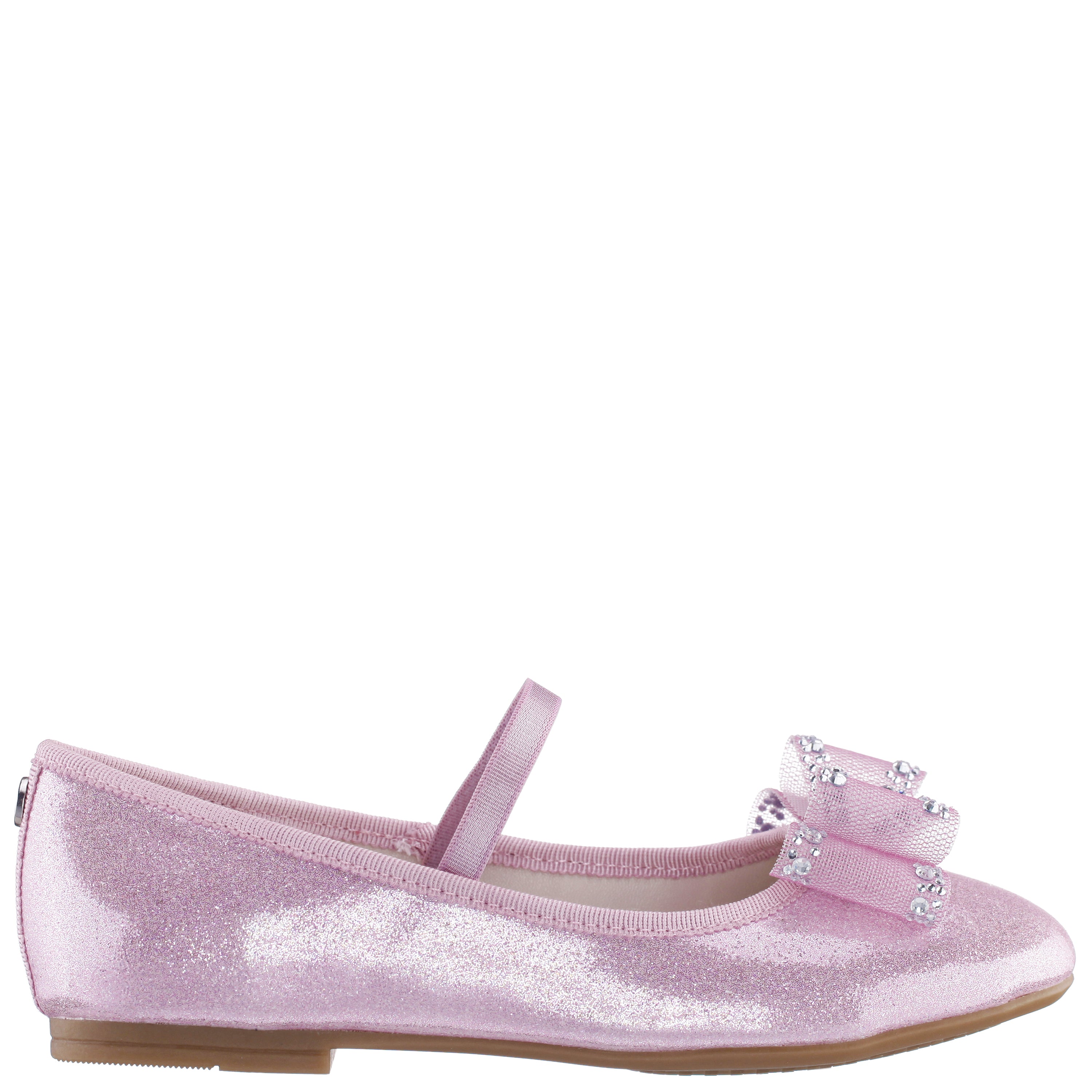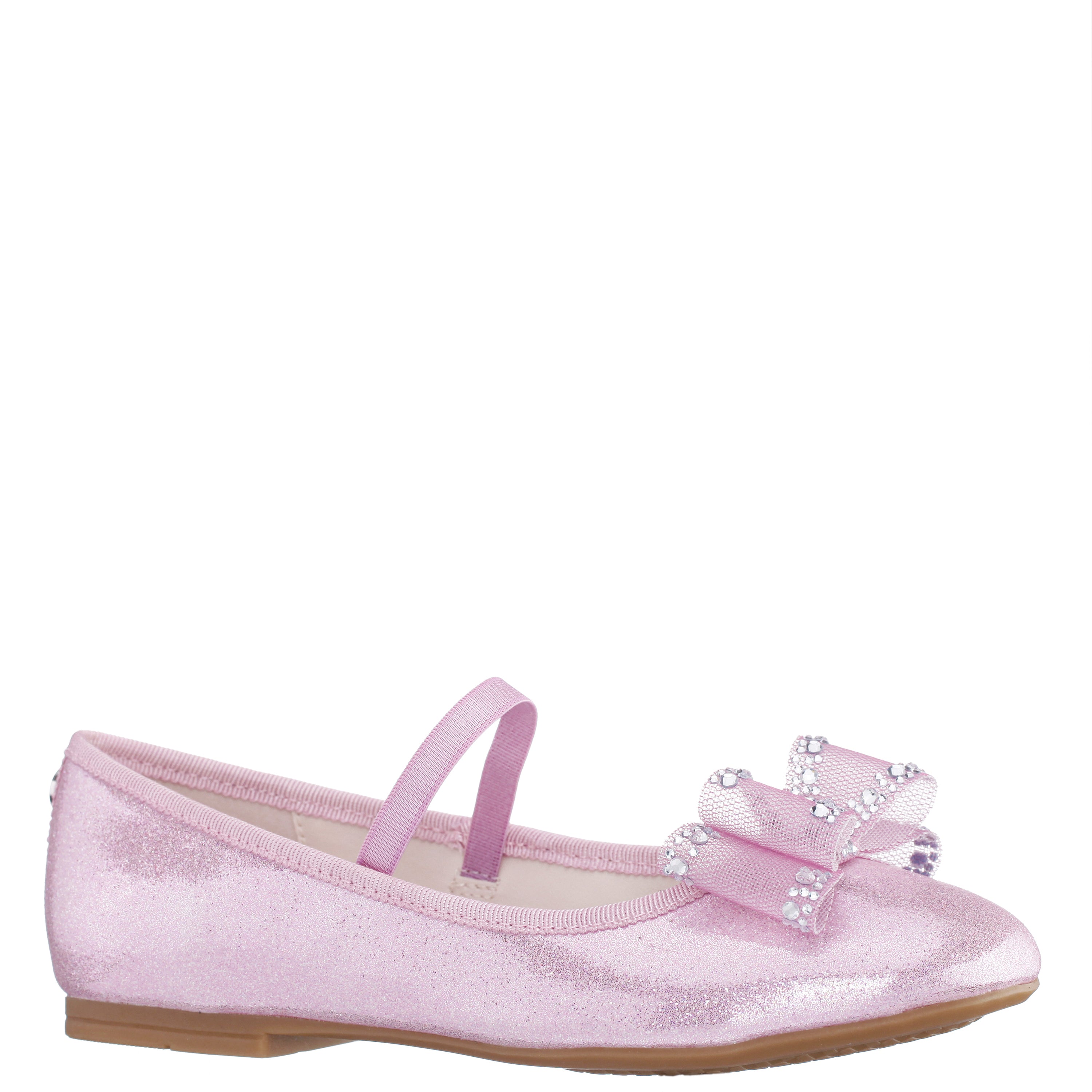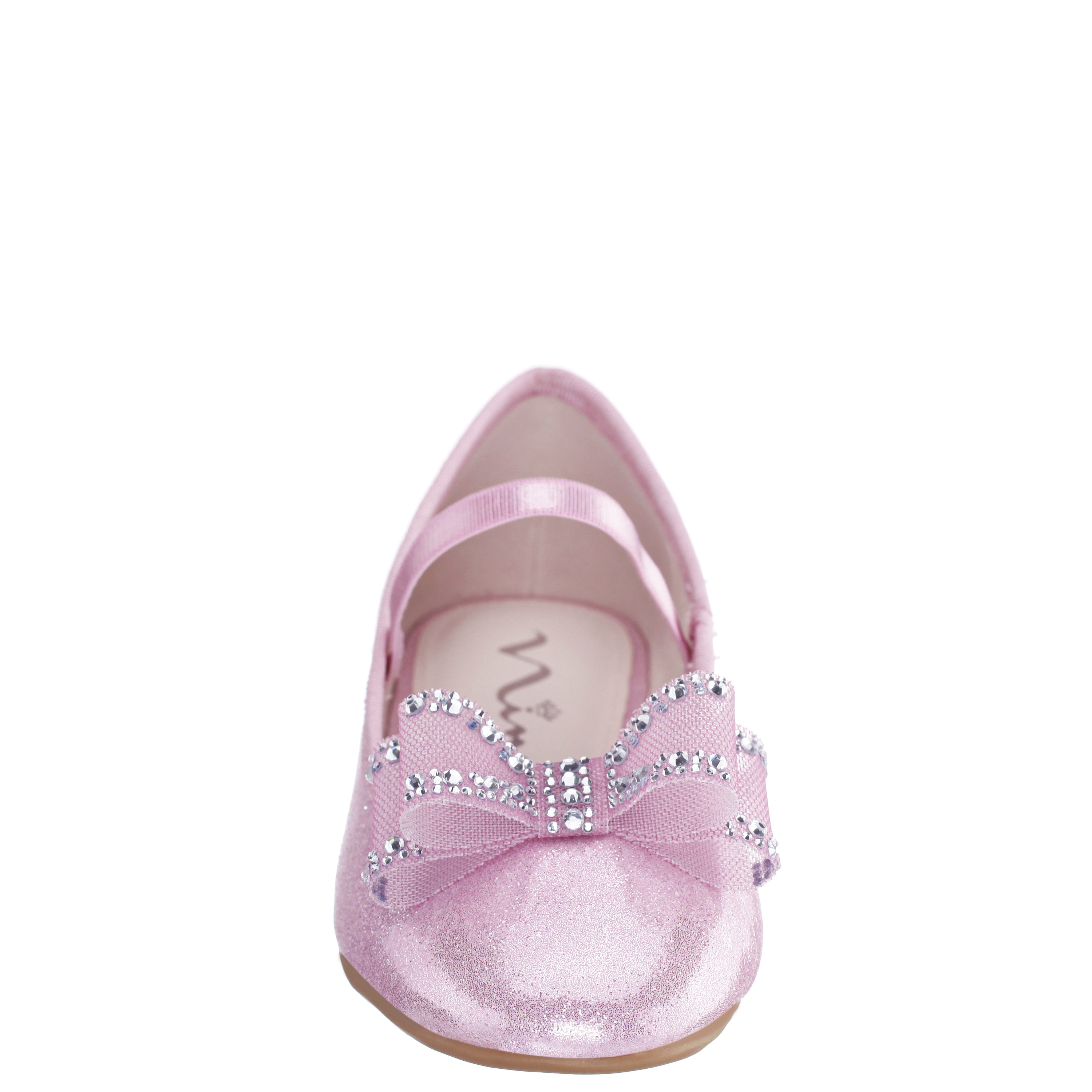 Sweet, graceful, and perfectly polished, SIDNEE by Nina Shoes is a charming girls ballet flat designed for moments that call for effortless elegance. Featuring a softly squared toe and delicate bow details with subtle sparkle, this dress-ready flat brings a refined touch to any outfit. The elastic strap offers a secure, comfortable fit, while the cushioned memory foam insole and flexible non-slip sole keep her feeling confident and comfortable from special celebrations to picture-perfect everyday moments.