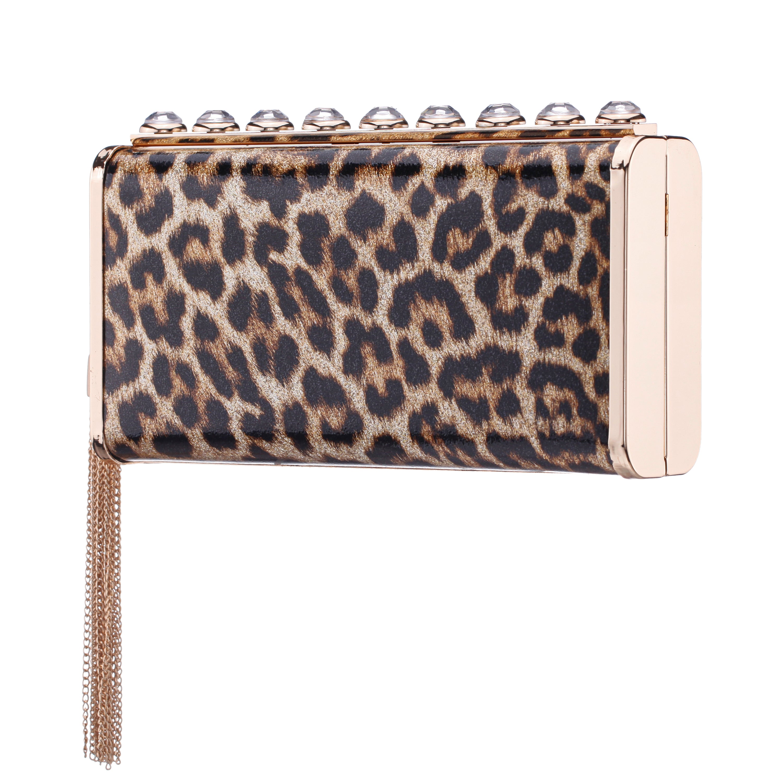 The AMOS by Nina is the ultimate go-to evening minaudière, blending chic minimalism with statement-worthy shine. With its sleek, structured design and variety of eye-catching finishes, AMOS brings polish and poise to every occasion—whether you're dressing up for a cocktail party, formal event, or elegant night out. Its compact shape is just the right size for essentials, and the lift-lock closure ensures everything stays secure. A soft satin-lined interior with a back wall pocket offers discreet storage, while the 18” drop-length chain strap adds effortless versatility. From shimmer to bold textures, the AMOS by Nina is made to stand out beautifully.