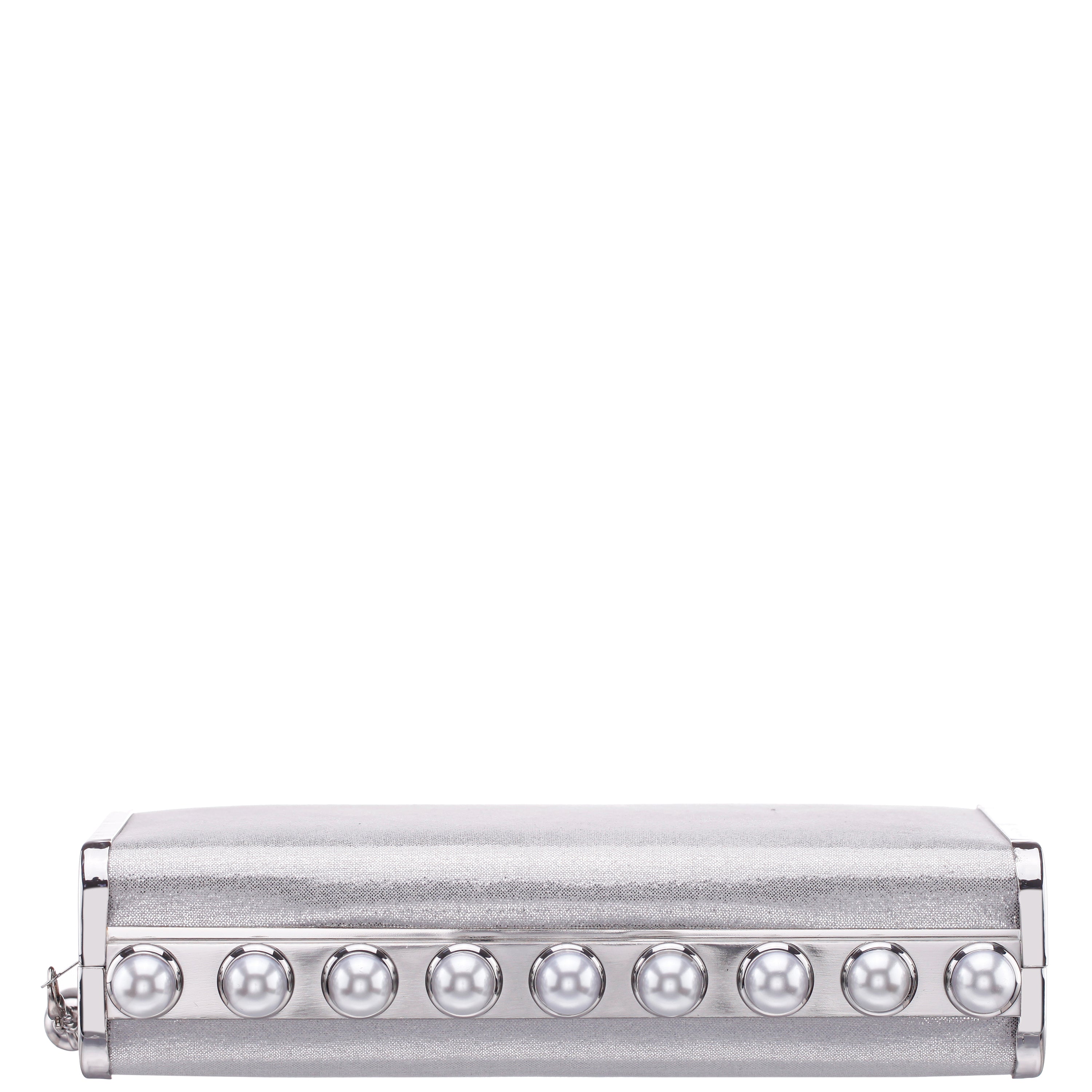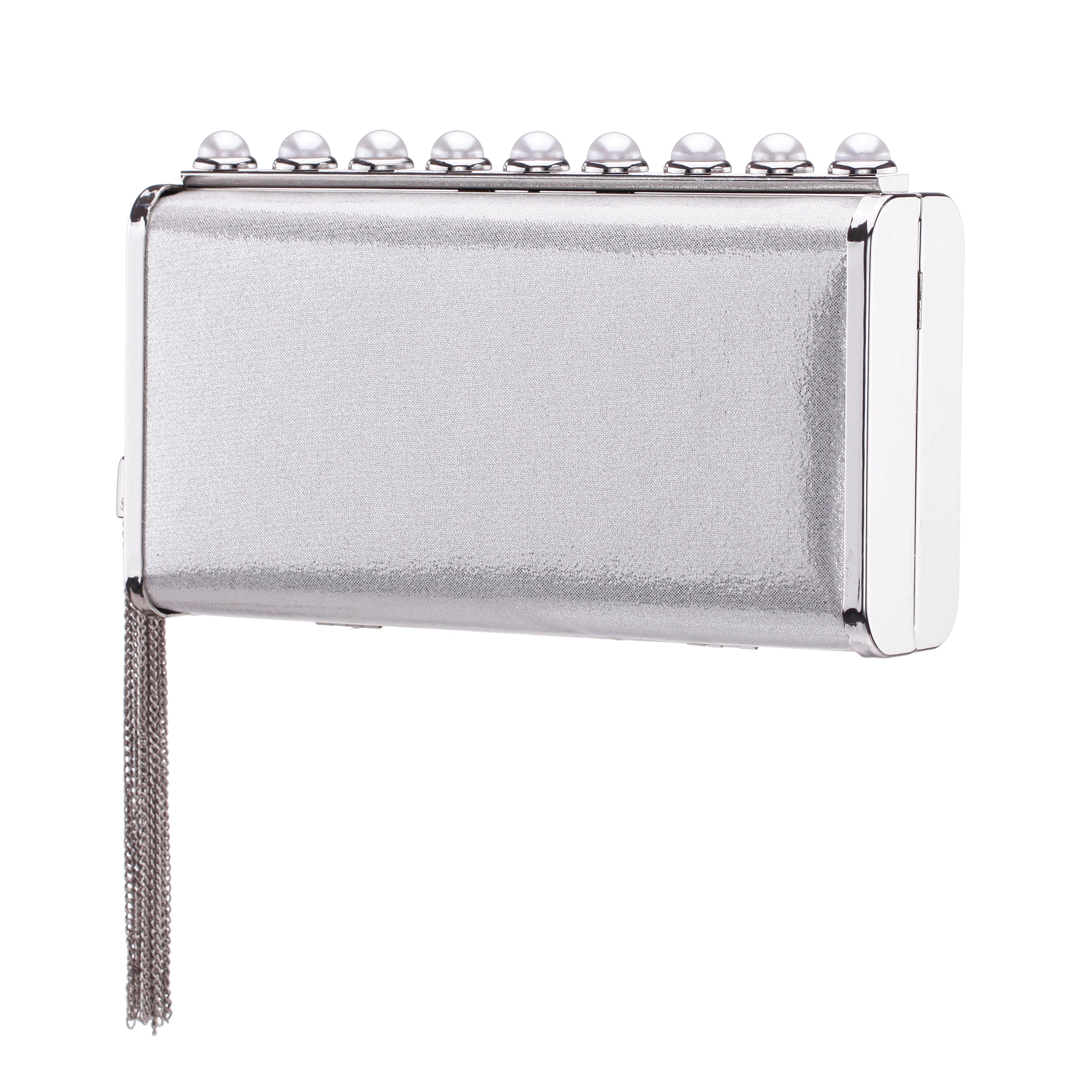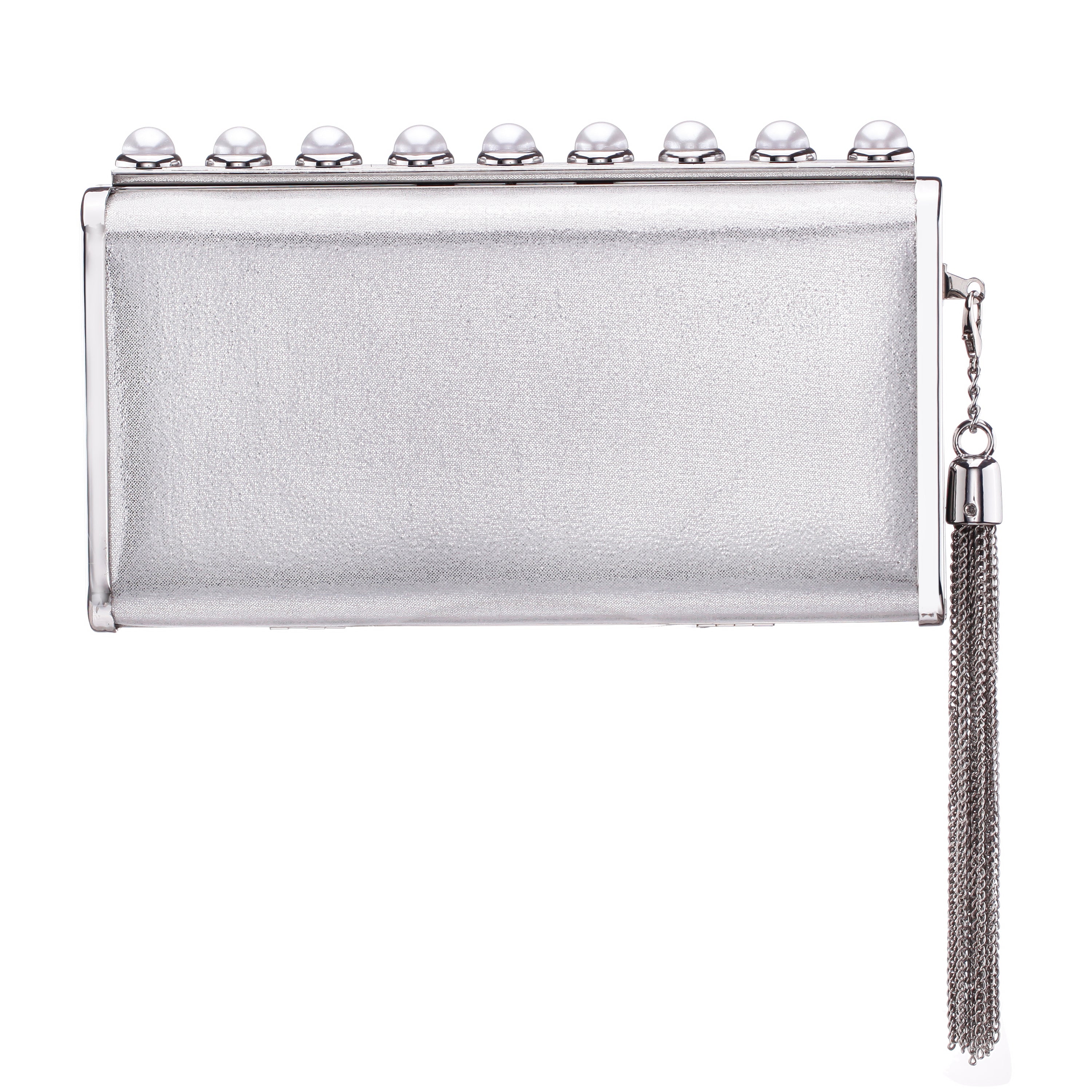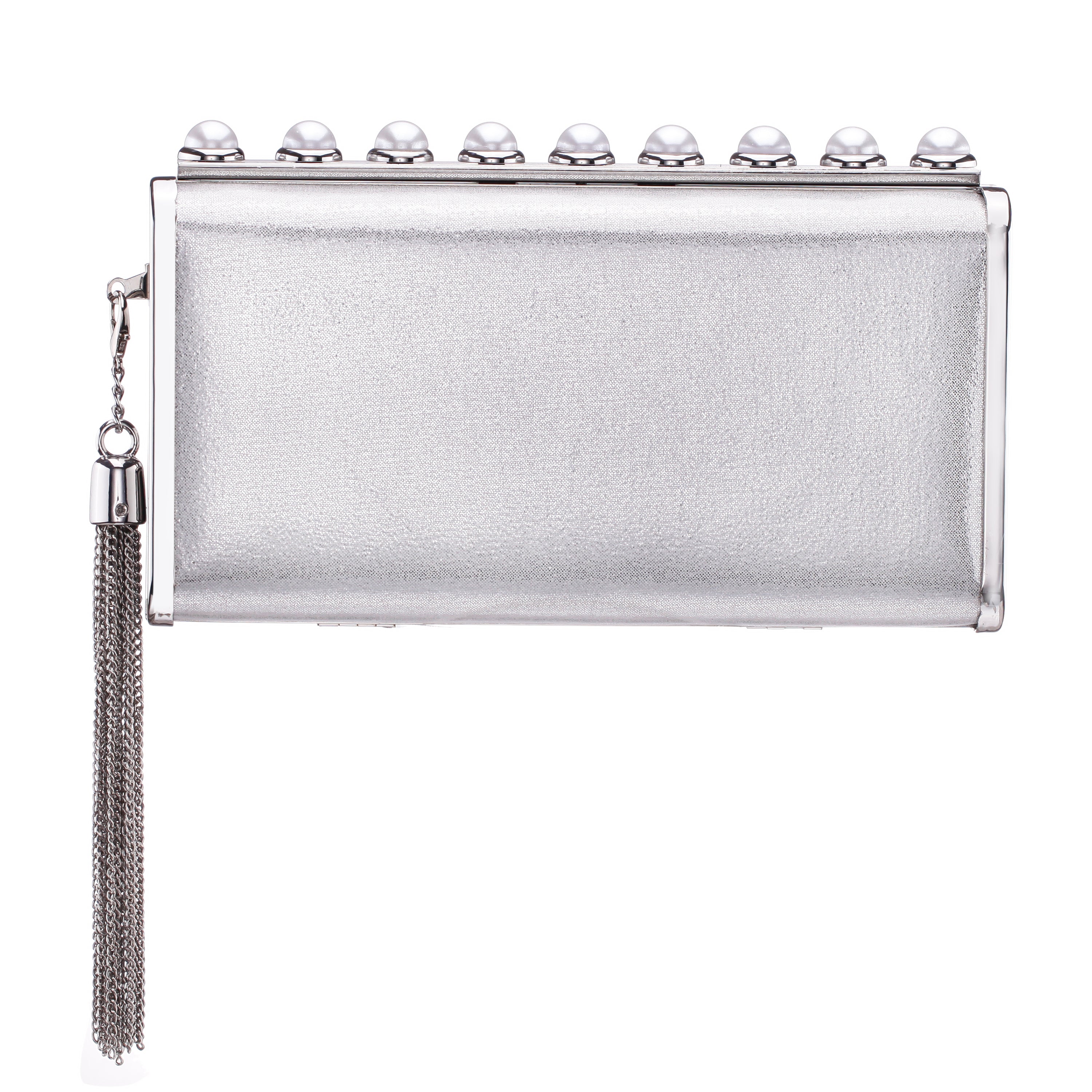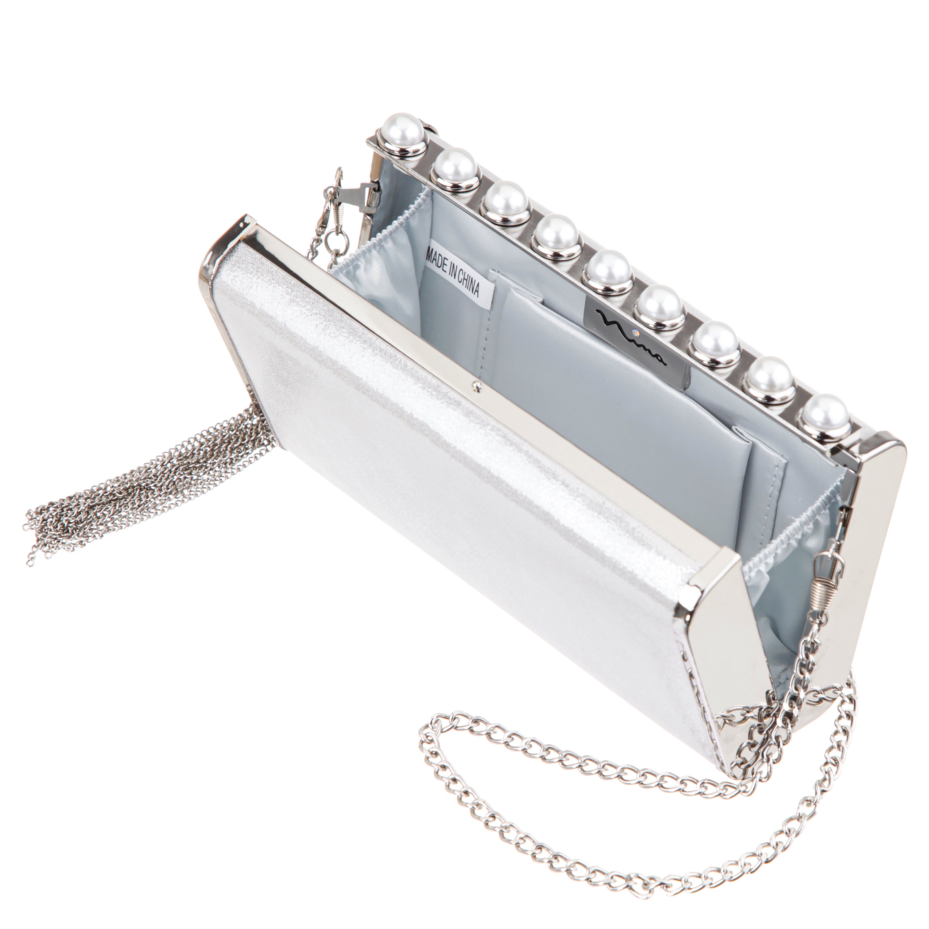 The AMOS by Nina is the ultimate go-to evening minaudière, blending chic minimalism with statement-worthy shine. With its sleek, structured design and variety of eye-catching finishes, AMOS brings polish and poise to every occasion—whether you're dressing up for a cocktail party, formal event, or elegant night out. Its compact shape is just the right size for essentials, and the lift-lock closure ensures everything stays secure. A soft satin-lined interior with a back wall pocket offers discreet storage, while the 18” drop-length chain strap adds effortless versatility. From shimmer to bold textures, the AMOS by Nina is made to stand out beautifully.