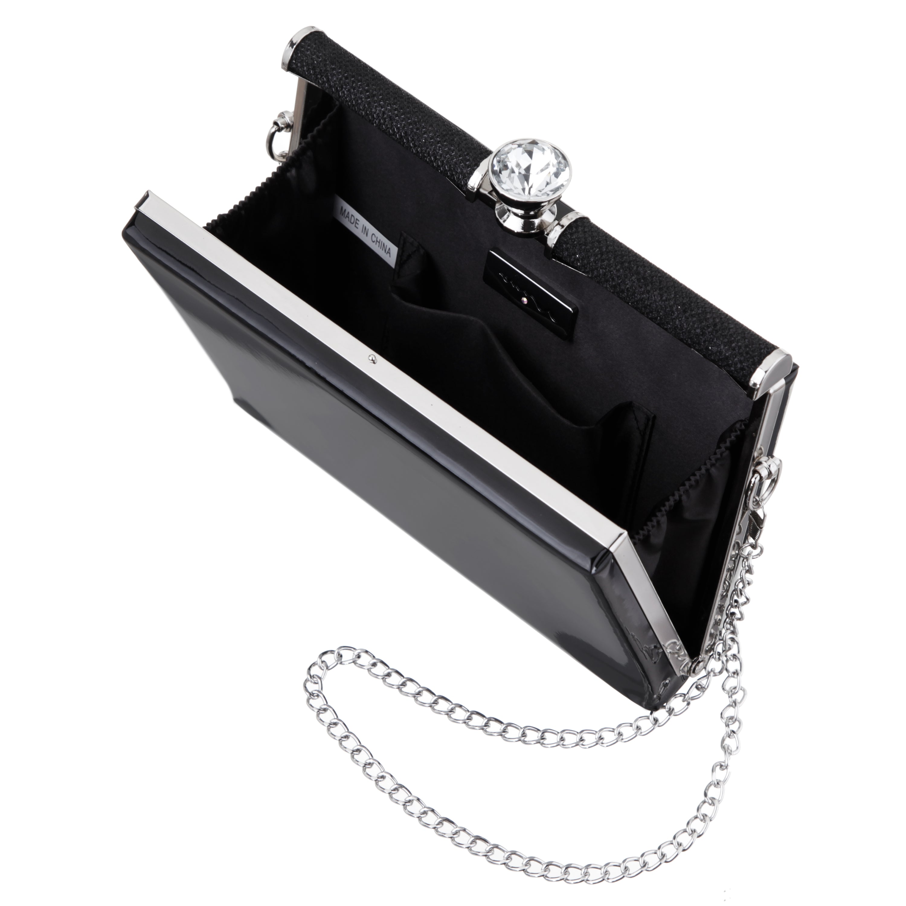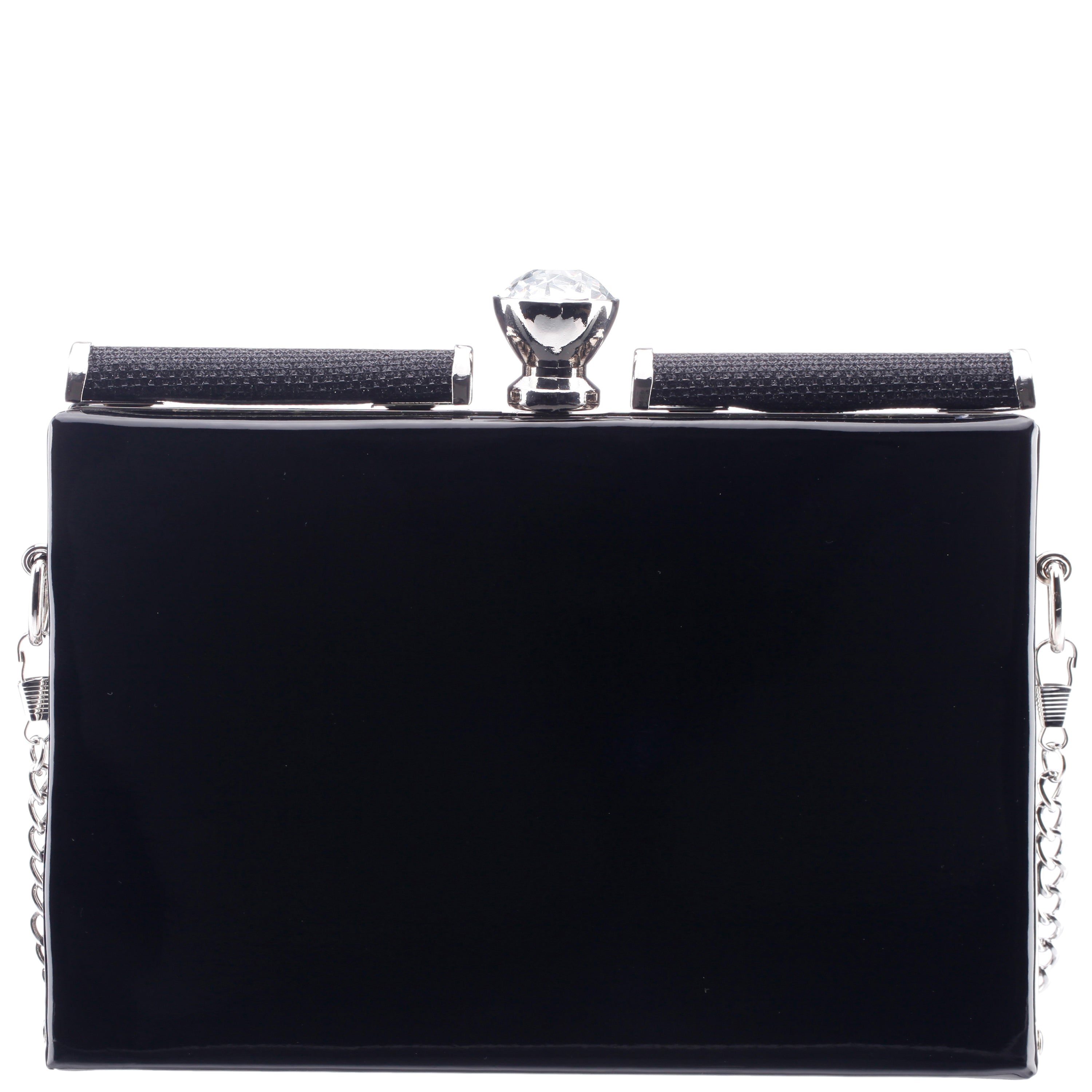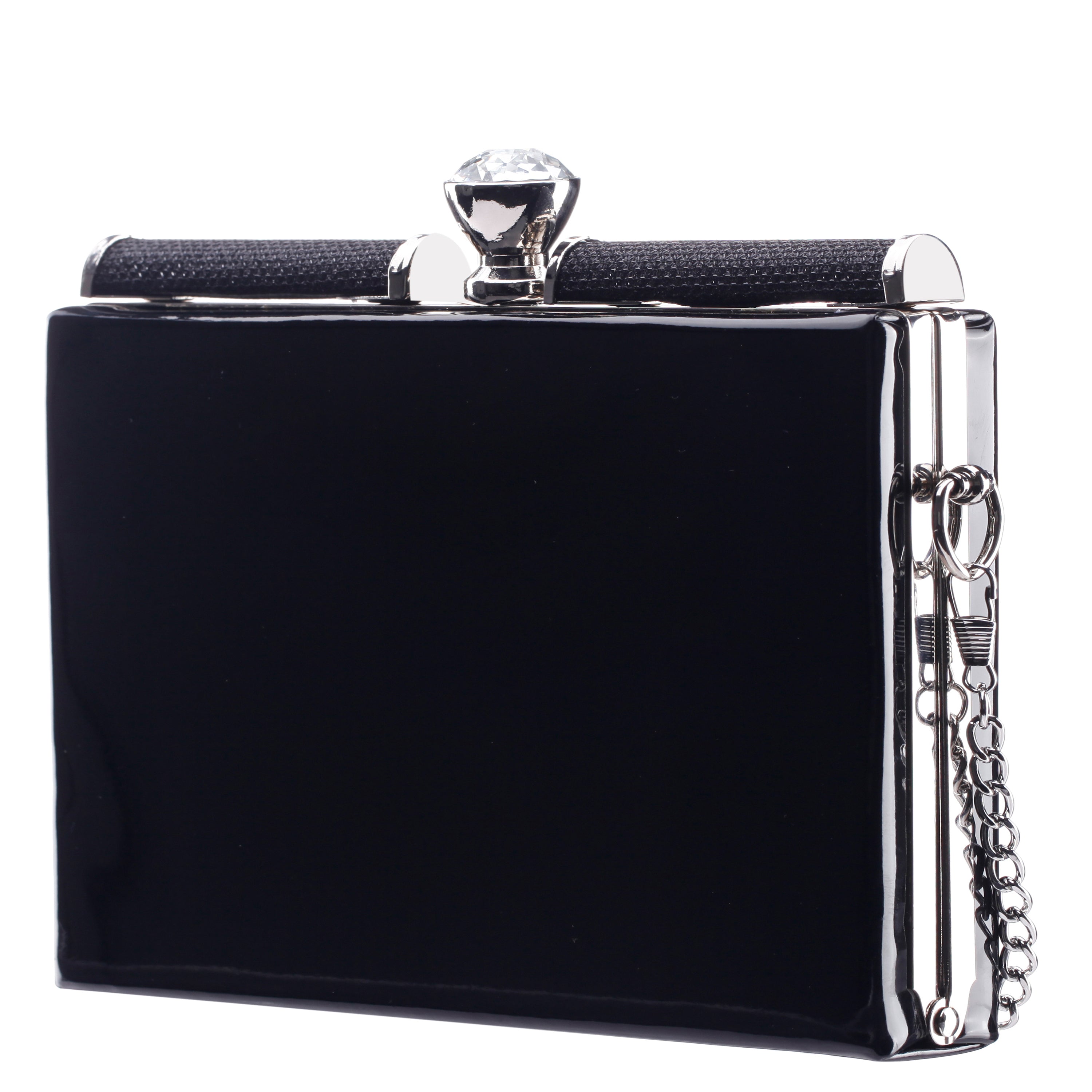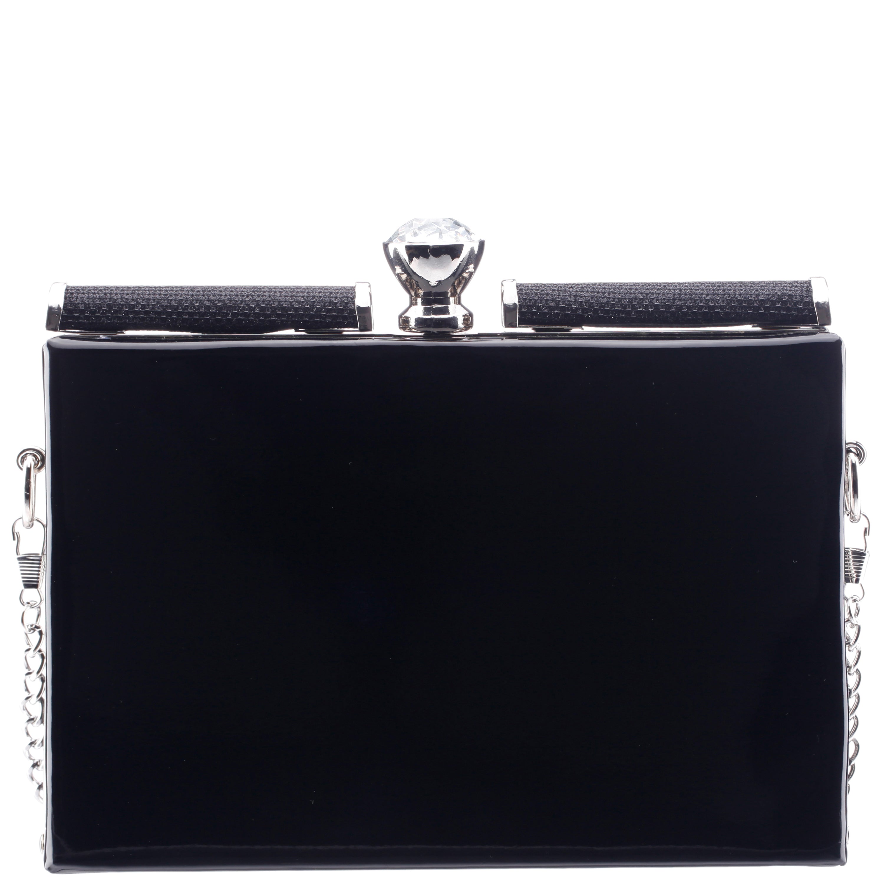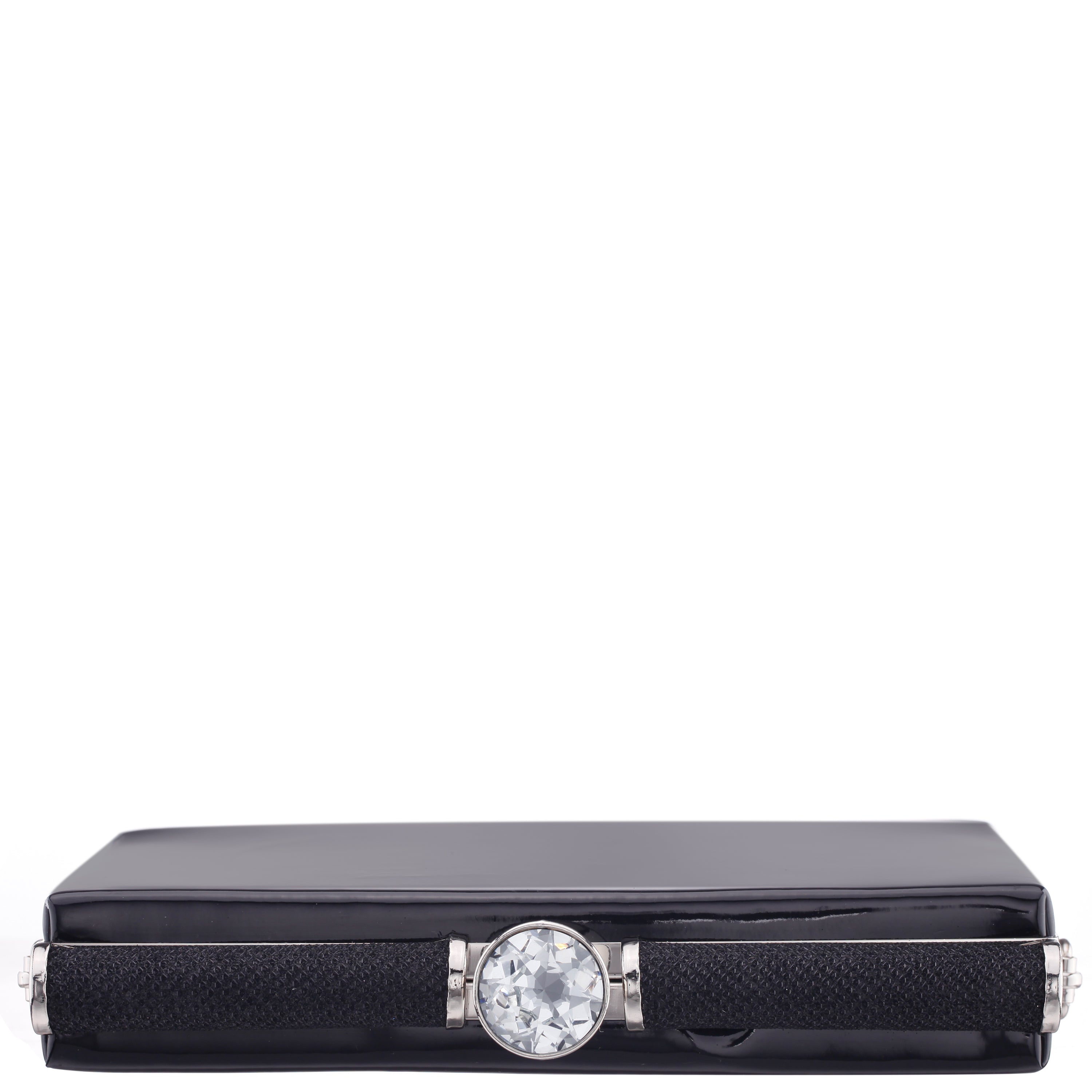 BLACK CRYSTAL PATENT PU FRAME CLUTCH