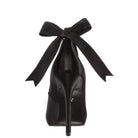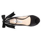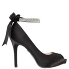 BLACK SATIN PEEP-TOE PUMP WITH RHINESTONE ADJUSTABLE ANKLE RIBBON