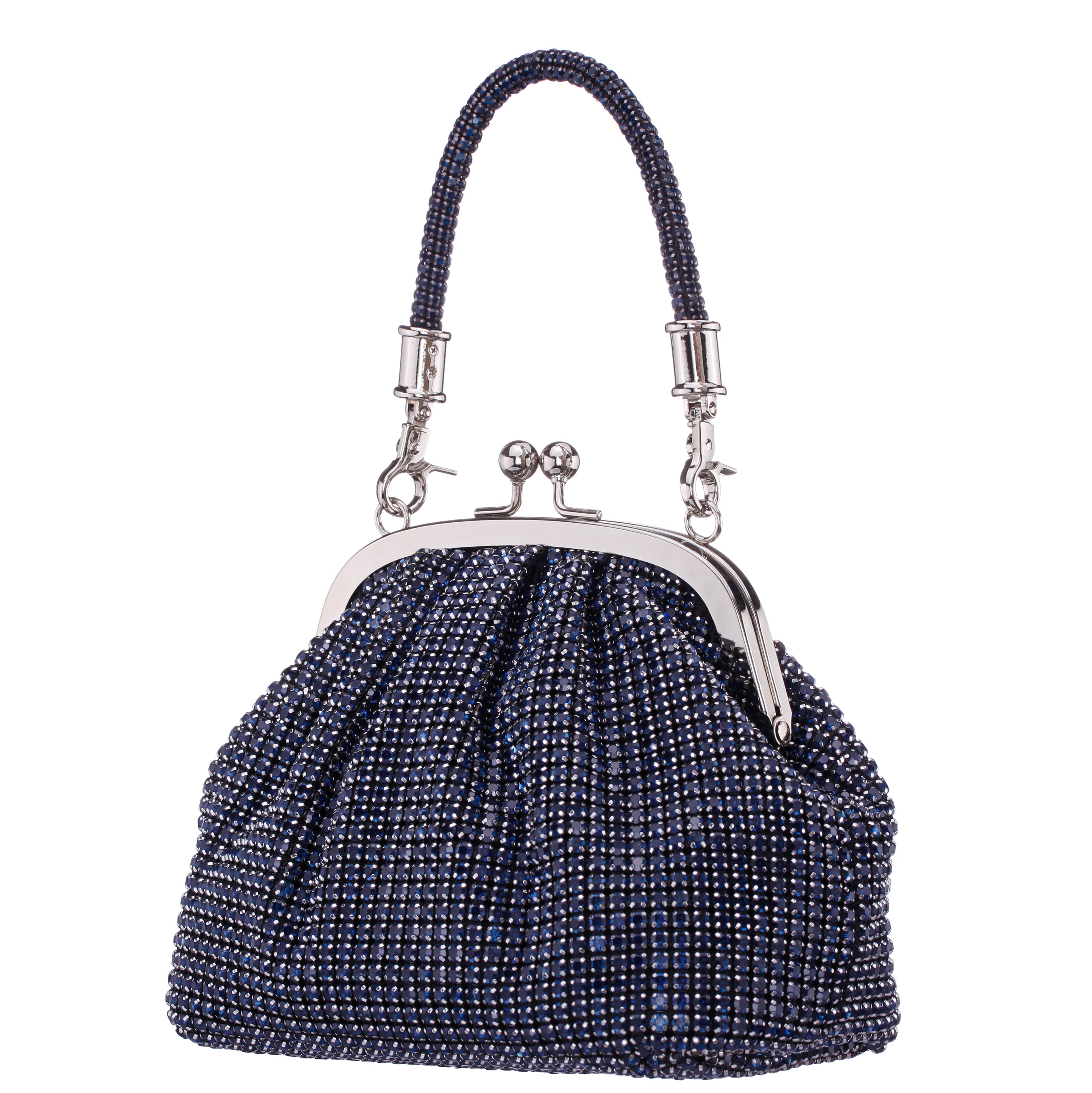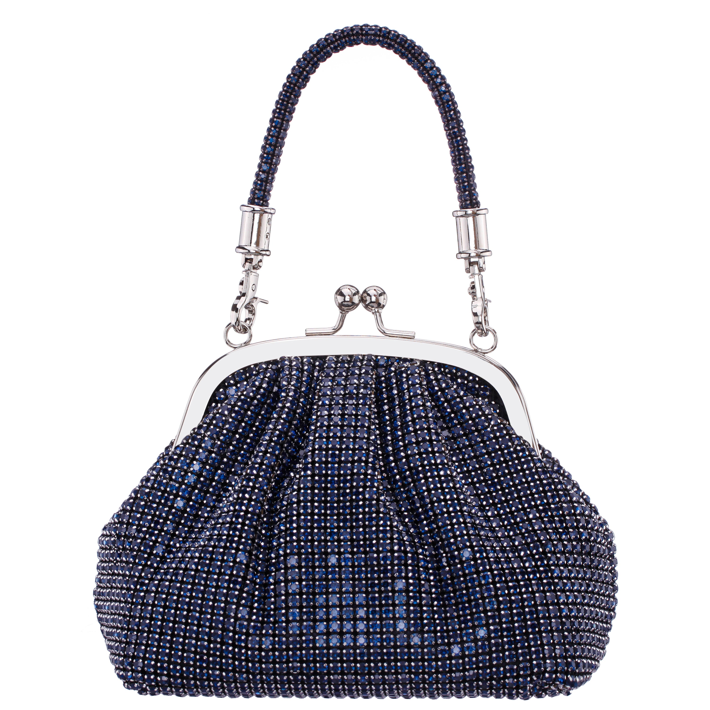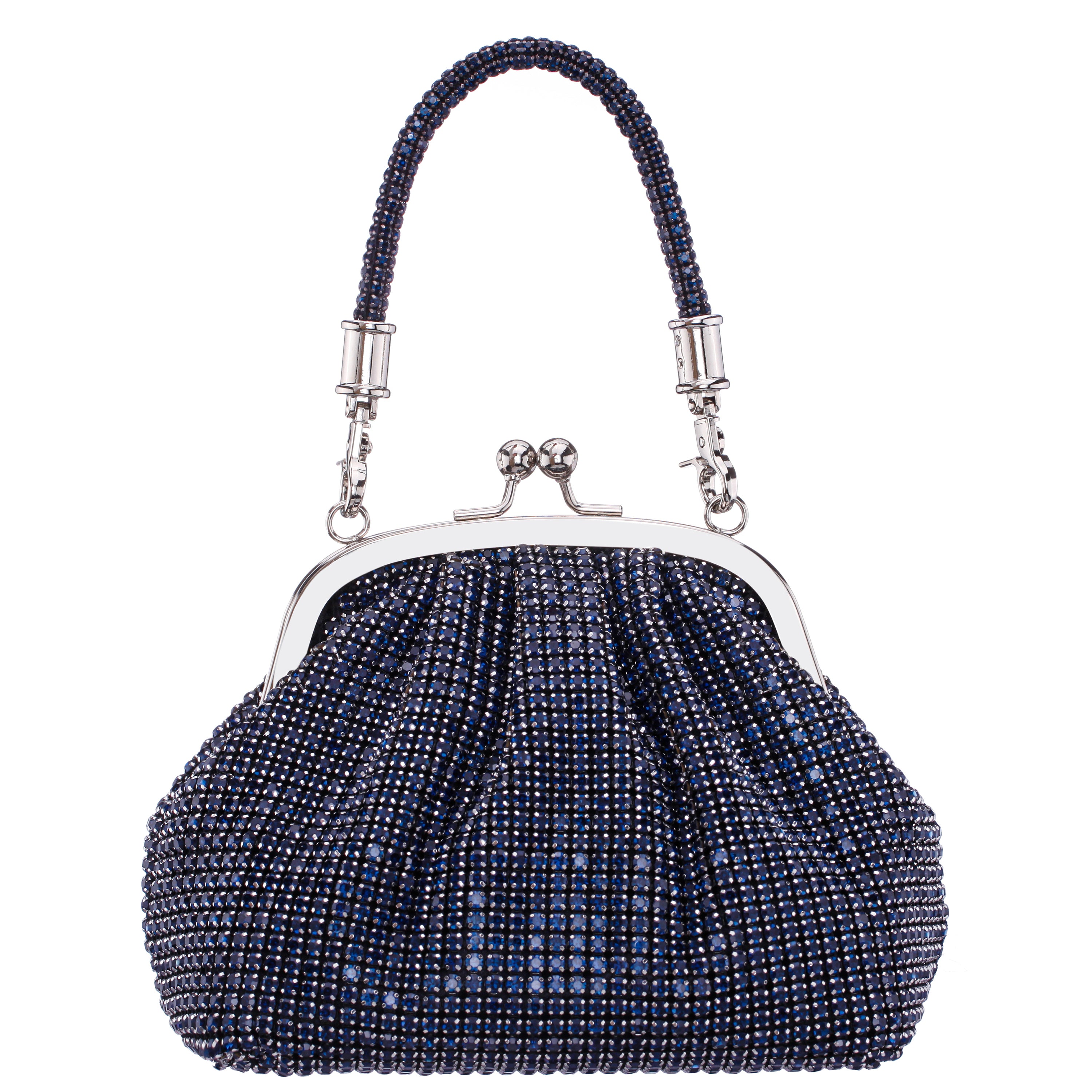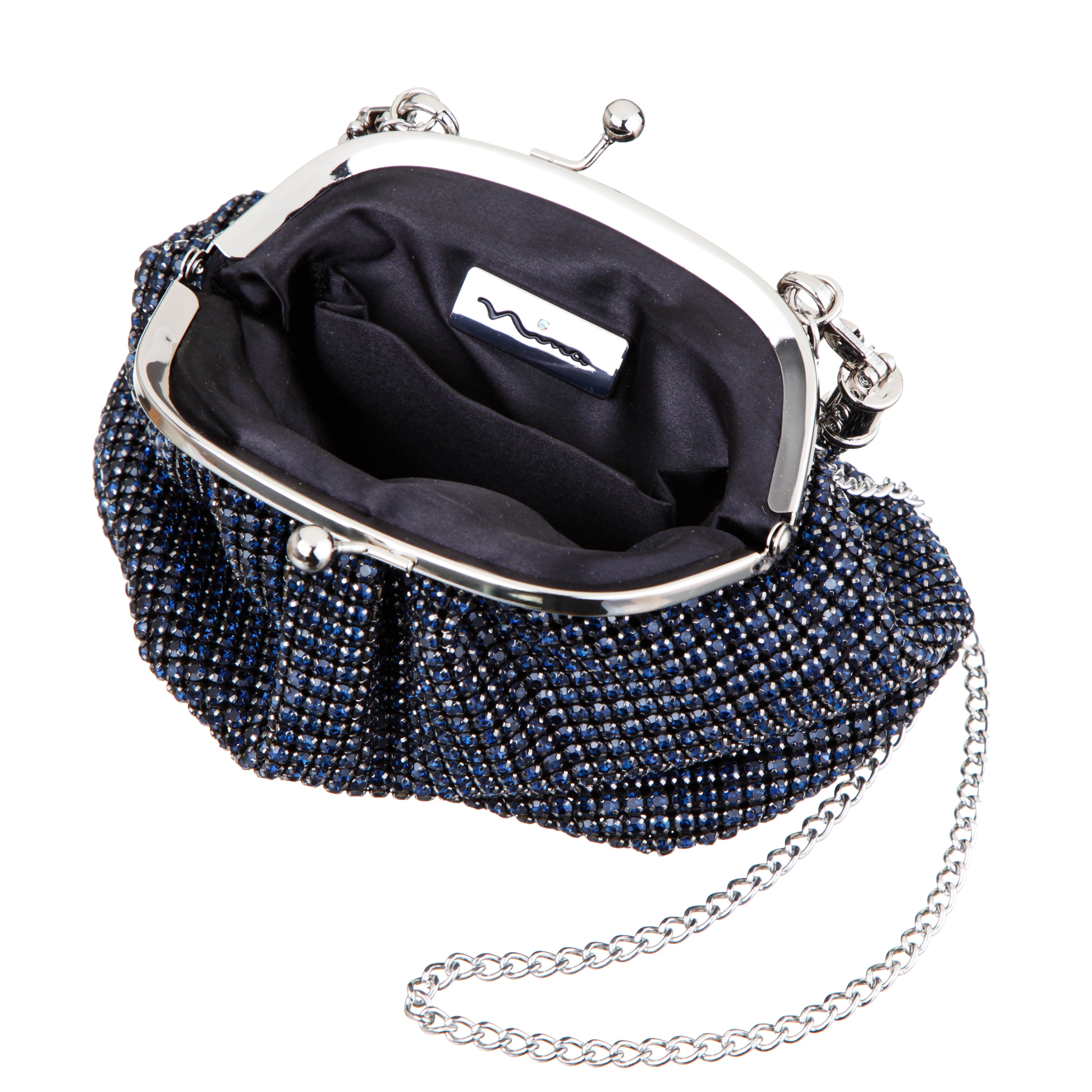 The KIARA by Nina is an irresistible blend of vintage glamour and modern sparkle, designed to dazzle from every angle. Its sculpted silhouette and crystal mesh handle offer a high-shine statement, while the kiss-lock closure adds timeless charm. Whether you’re attending a wedding, black-tie affair, or festive evening event, KIARA elevates your ensemble with chic elegance. The satin-lined interior features a back wall pocket for organization, and the 18” drop-length chain strap lets you wear it hands-free or as a stylish clutch. With every detail crafted for sophistication, the KIARA by Nina is a radiant finishing touch you’ll reach for again and again.