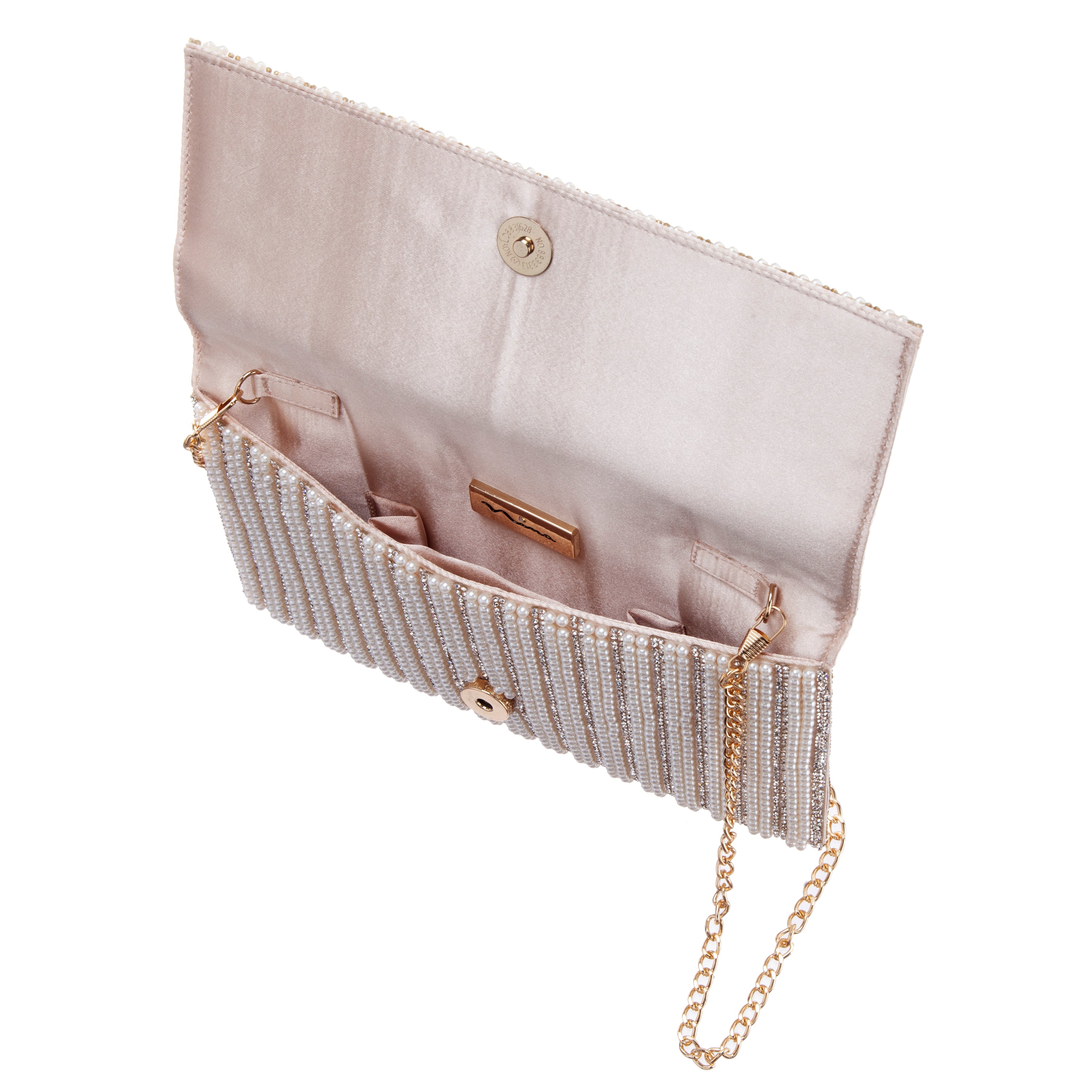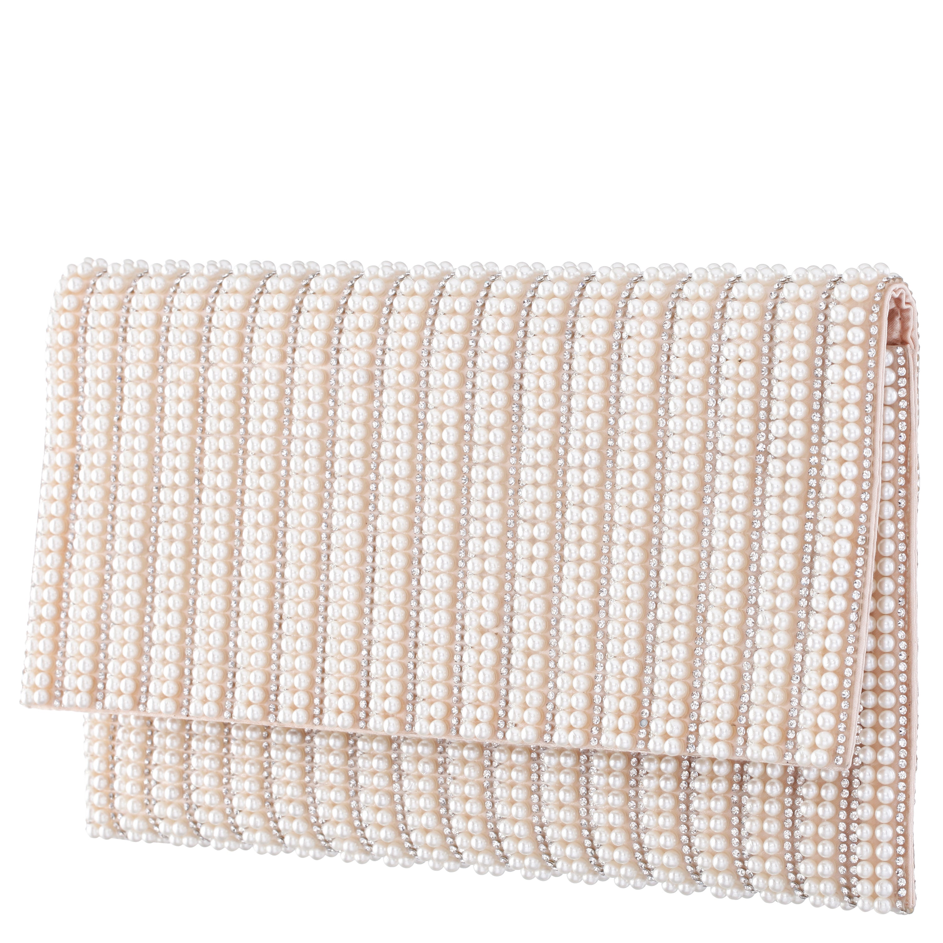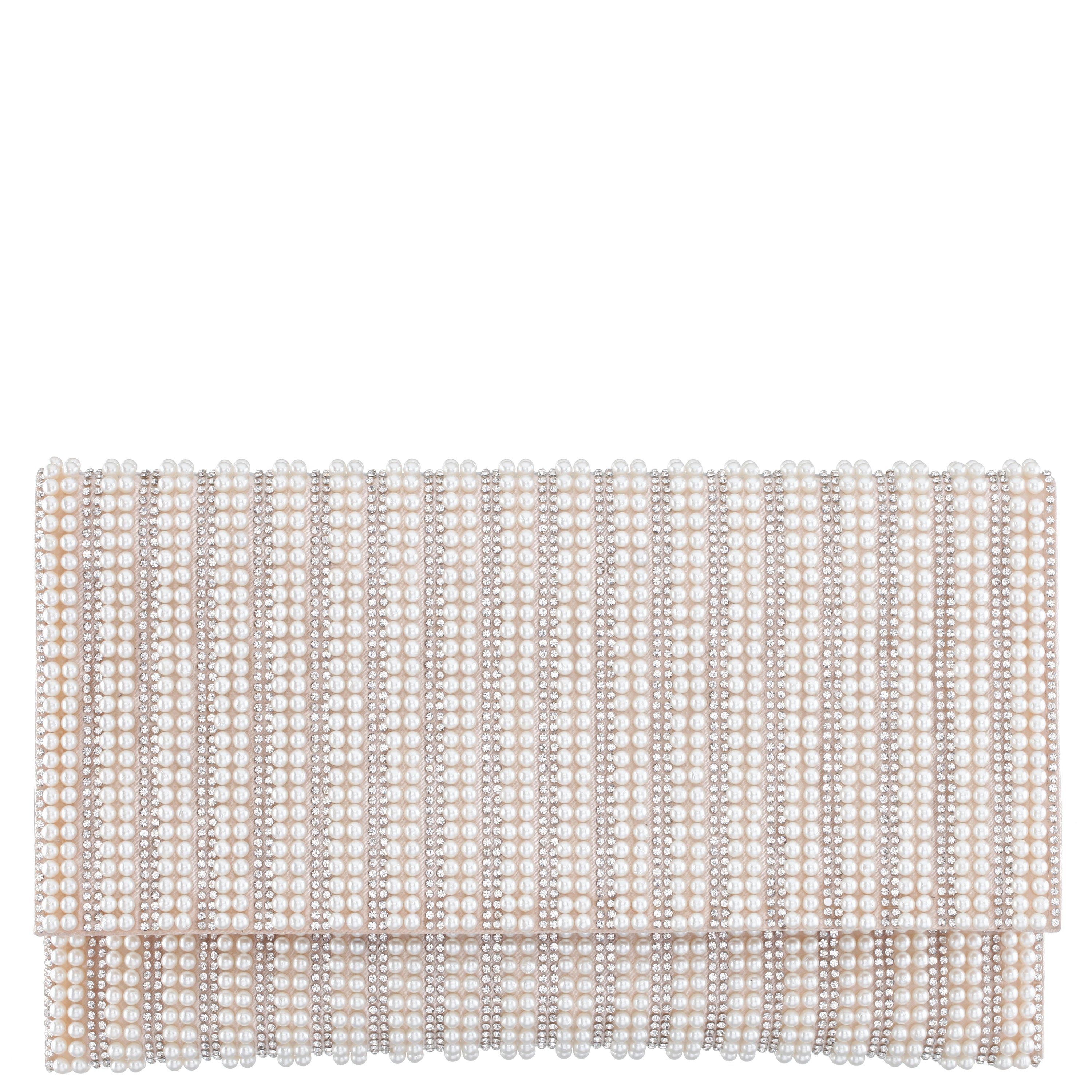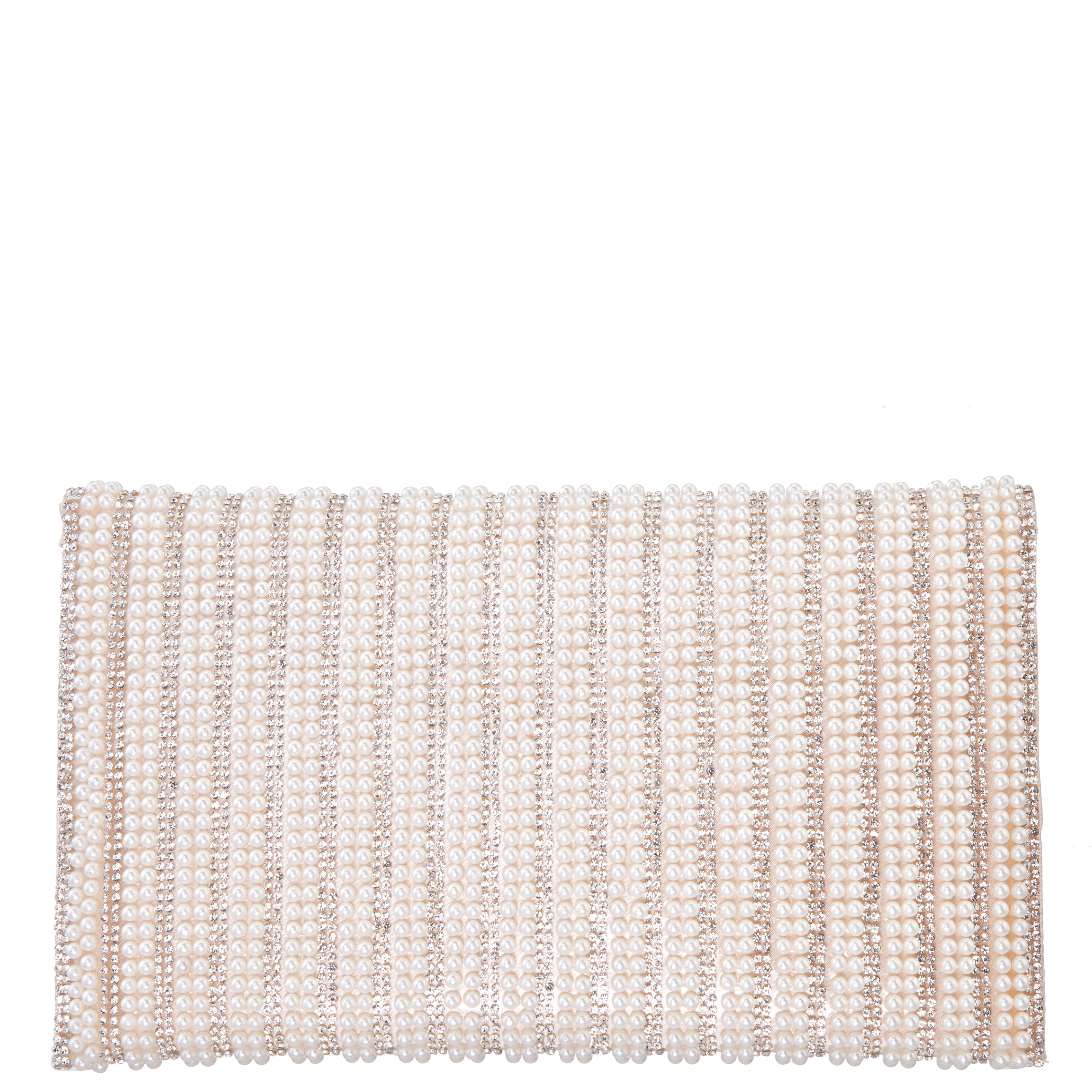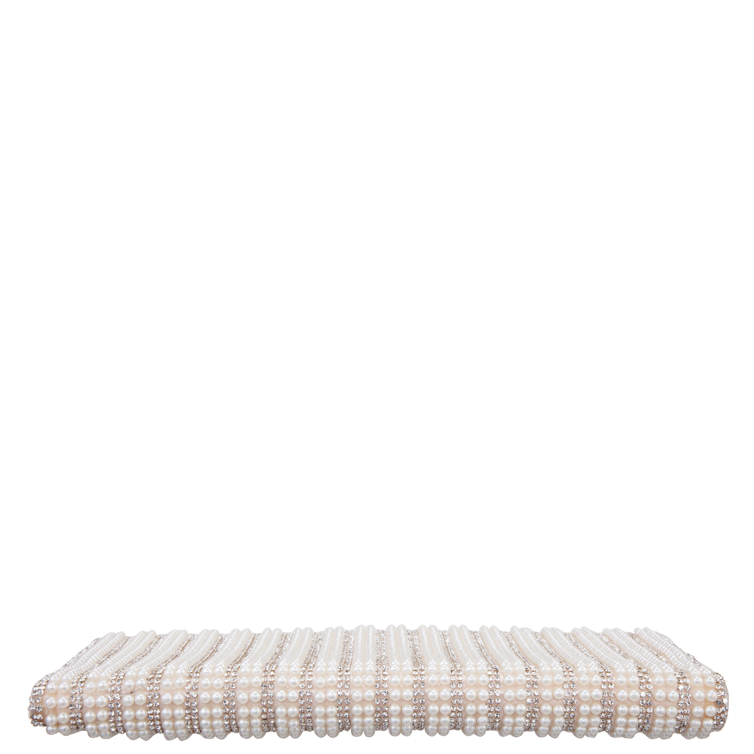 WHITE ALLOVER PEARL/CRYSTAL ENVELOPE CLUTCH