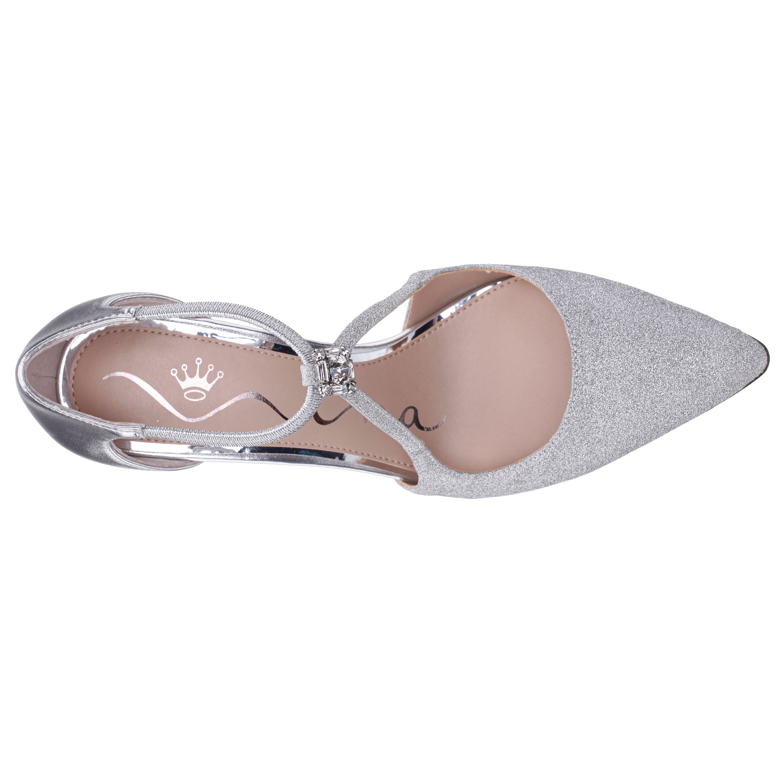 NEOMA Ankle Strap High Heel Step out in style with the NEOMA by Nina Shoes, an ankle-strap high heel pump designed to elevate any look with its timeless elegance. The sleek pointed toe and delicate ankle strap, accented with a crystal ornament, make it perfect for both formal occasions and nights out. With a 3-3/8" high heel that adds height without compromising comfort, and a lightly cushioned insole, this shoe provides all-day wearability. Whether you're wearing it in classic ivory, eye-catching red, sleek black, shimmering silver, or bold platino, the NEOMA delivers sophistication and versatility.Key Features