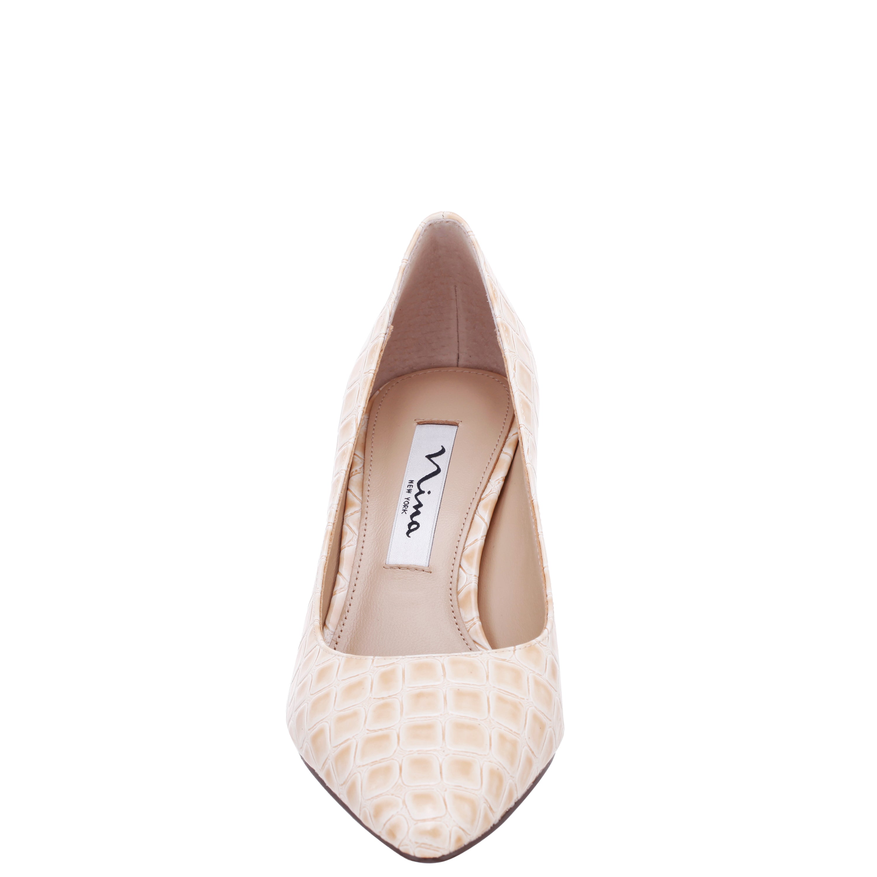 NINA60 Classic Pointed-Toe Pump The NINA60 Classic Pointed-Toe Pump by Nina Shoes is an essential for any wardrobe, offering effortless elegance that transitions smoothly from day to night. With its sleek pointed toe, comfortable mid-heel, and an accessible slip-on design, this pump is crafted to make you feel polished and stylish at every step. Available in stunning choices of materials and colors, this iconic pump is the ultimate style staple. Also available in wide-width options and supported by a lightly cushioned insole to ensure a comfortable fit for any occasion.Key Features