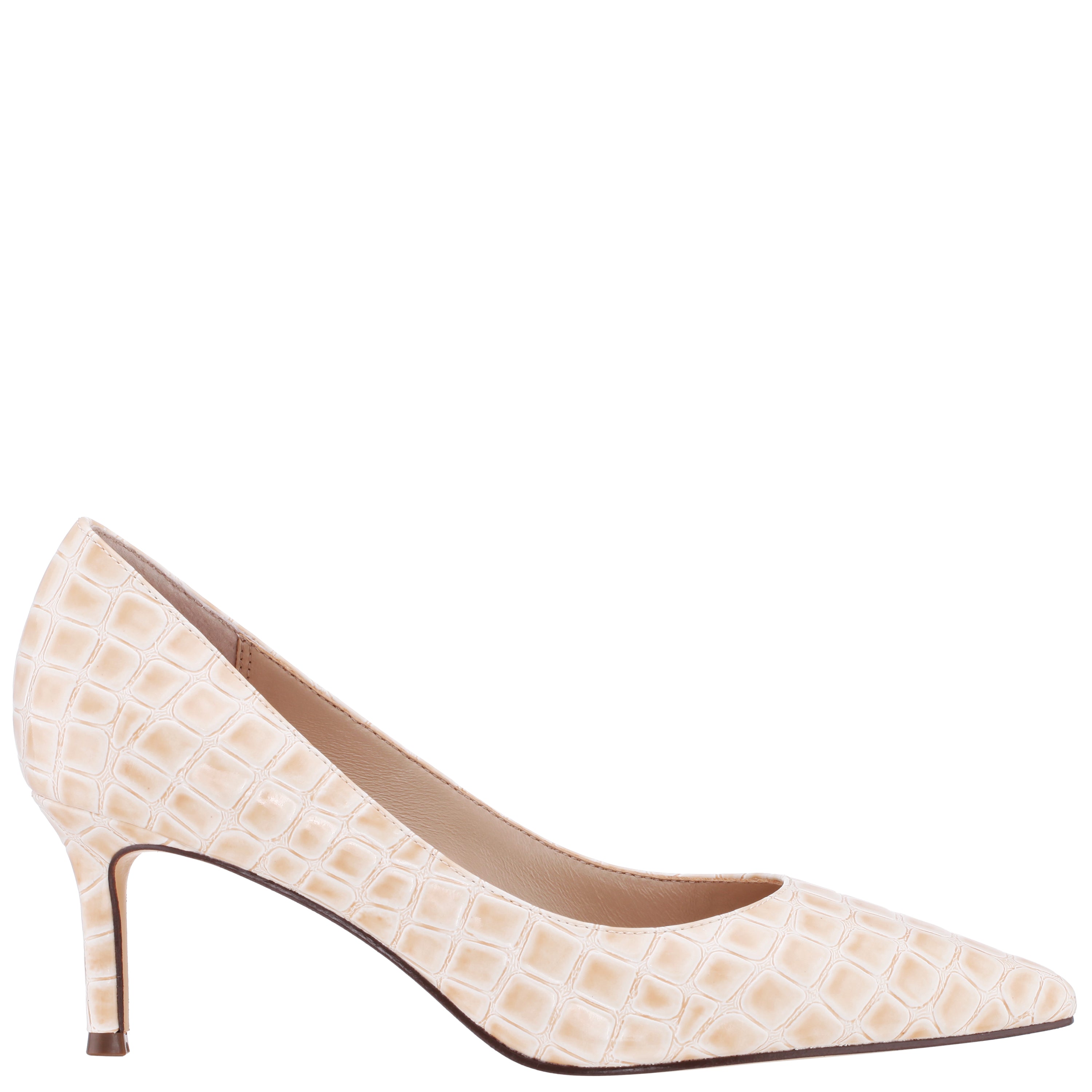 PARCHMENT CROCO PATENT LEATHERETTE MID-HEEL CLASSIC PUMP