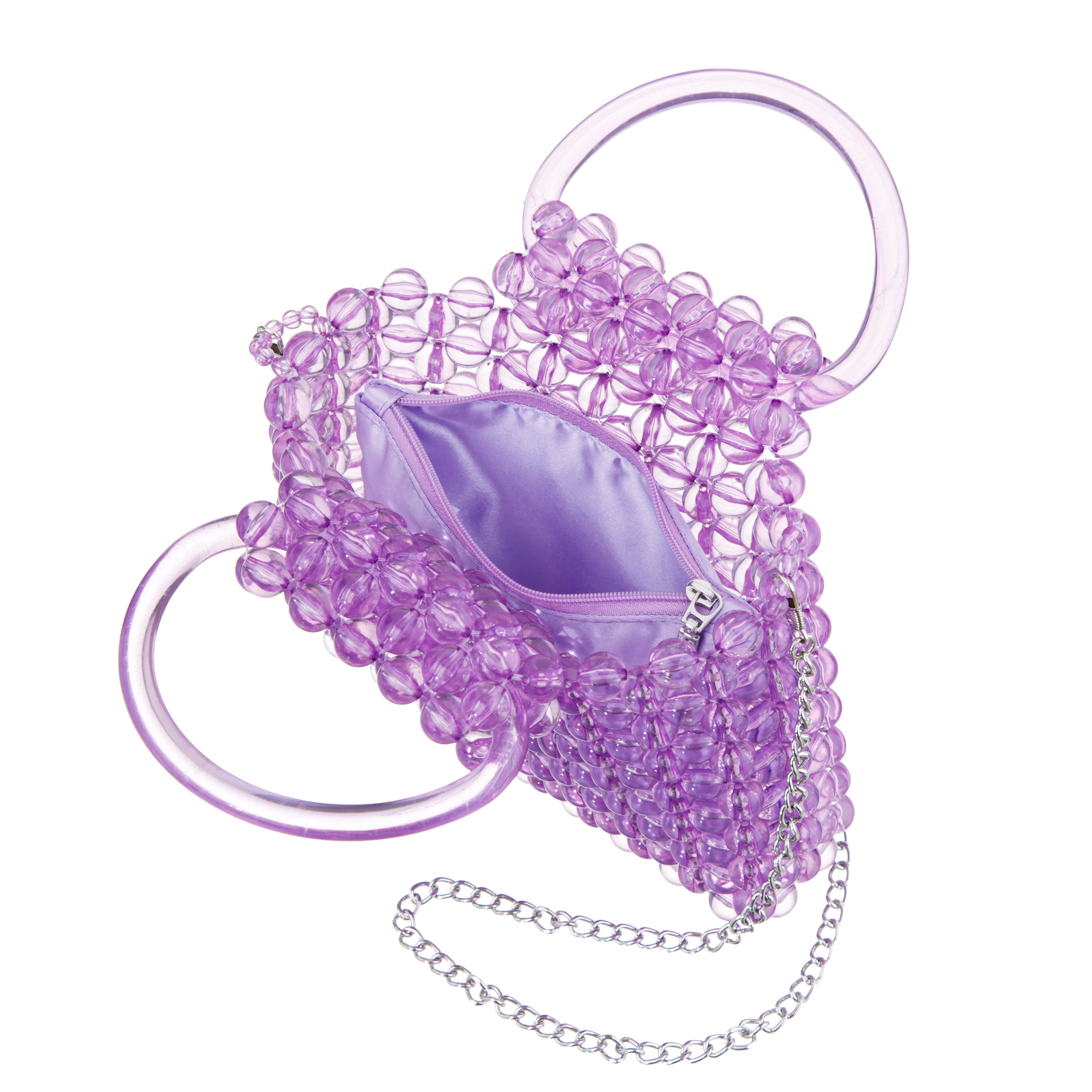 LAVENDER TRANSLUCENT BEADS HANDLE SATCHEL