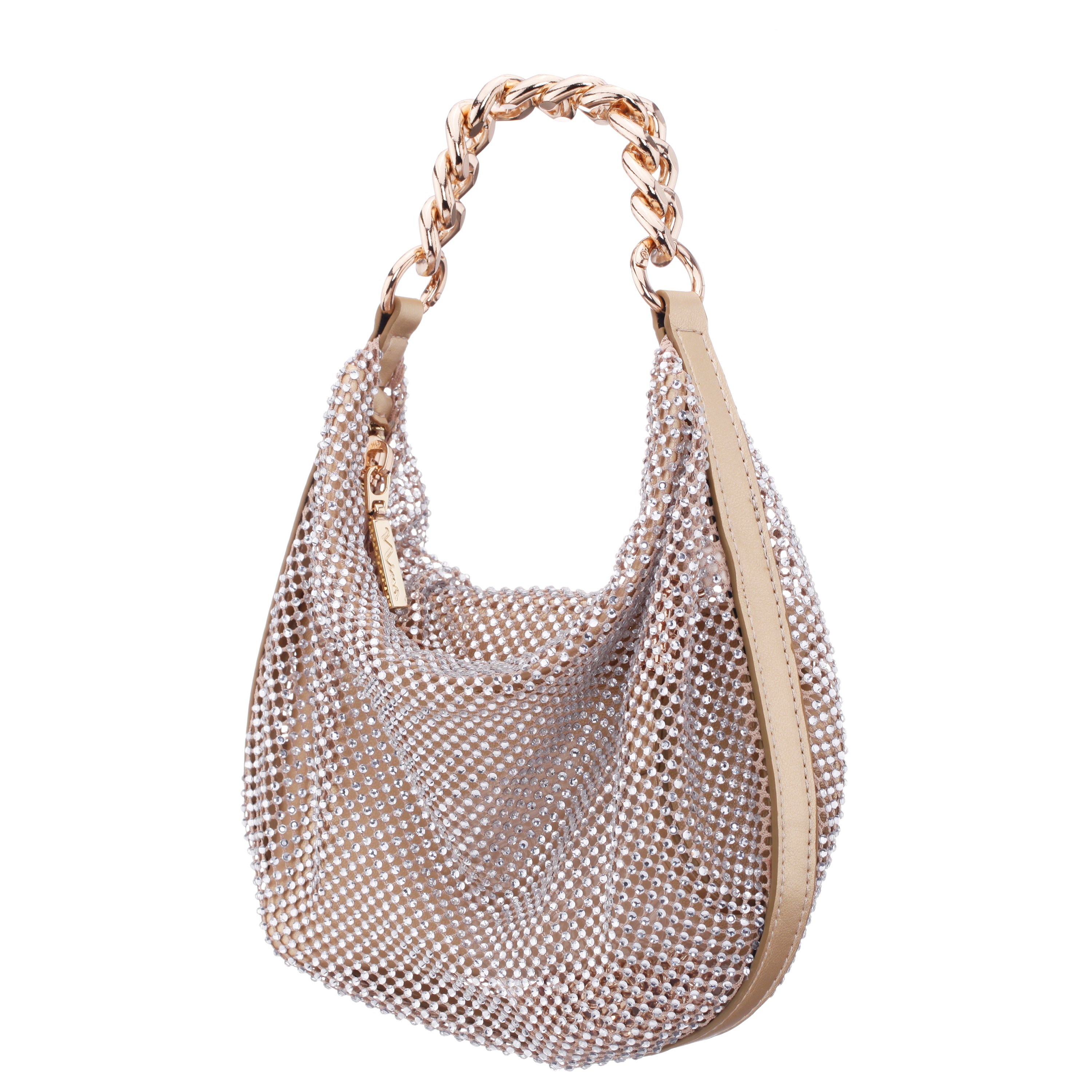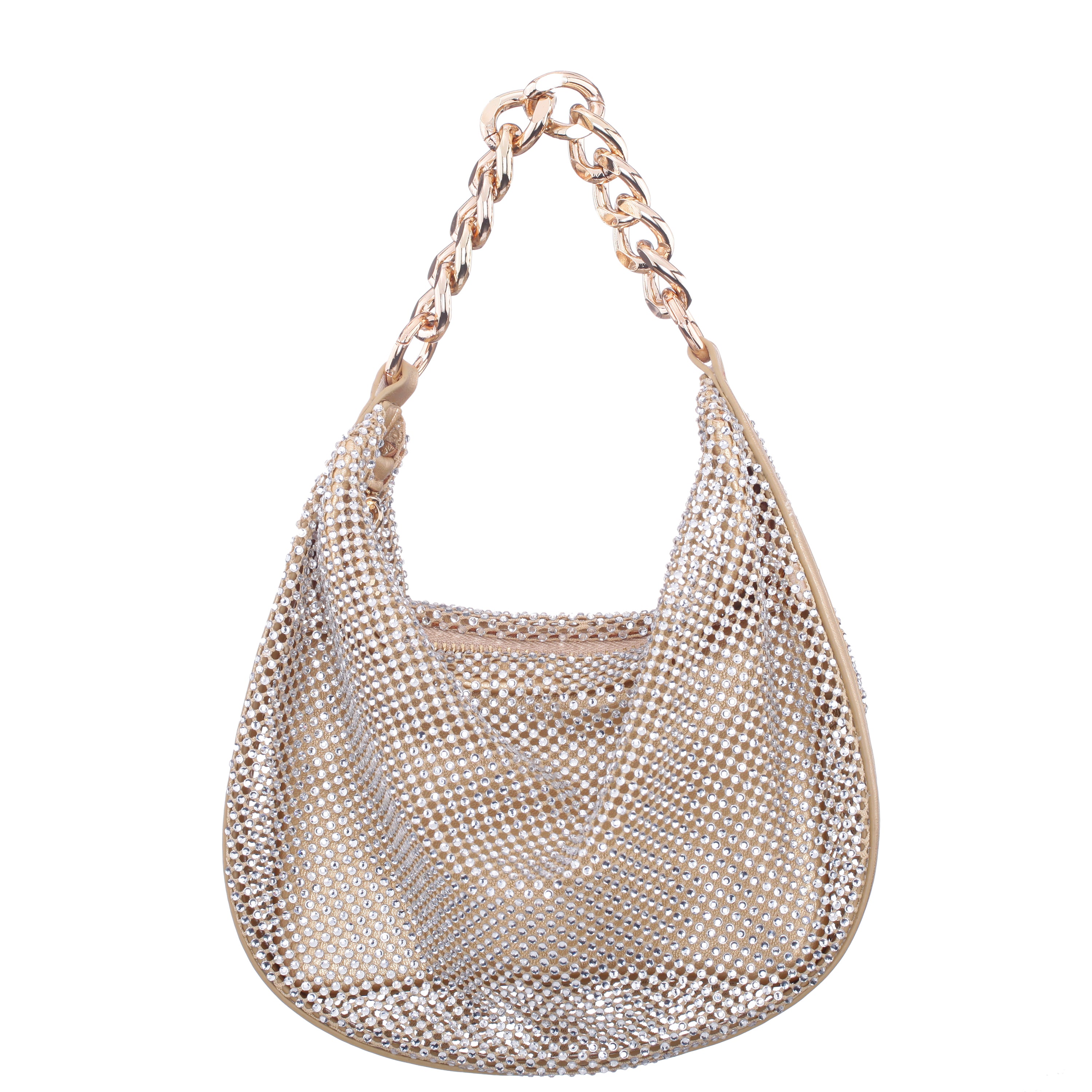 GOLD GLASS CRYSTAL / SATIN HOBO BAG