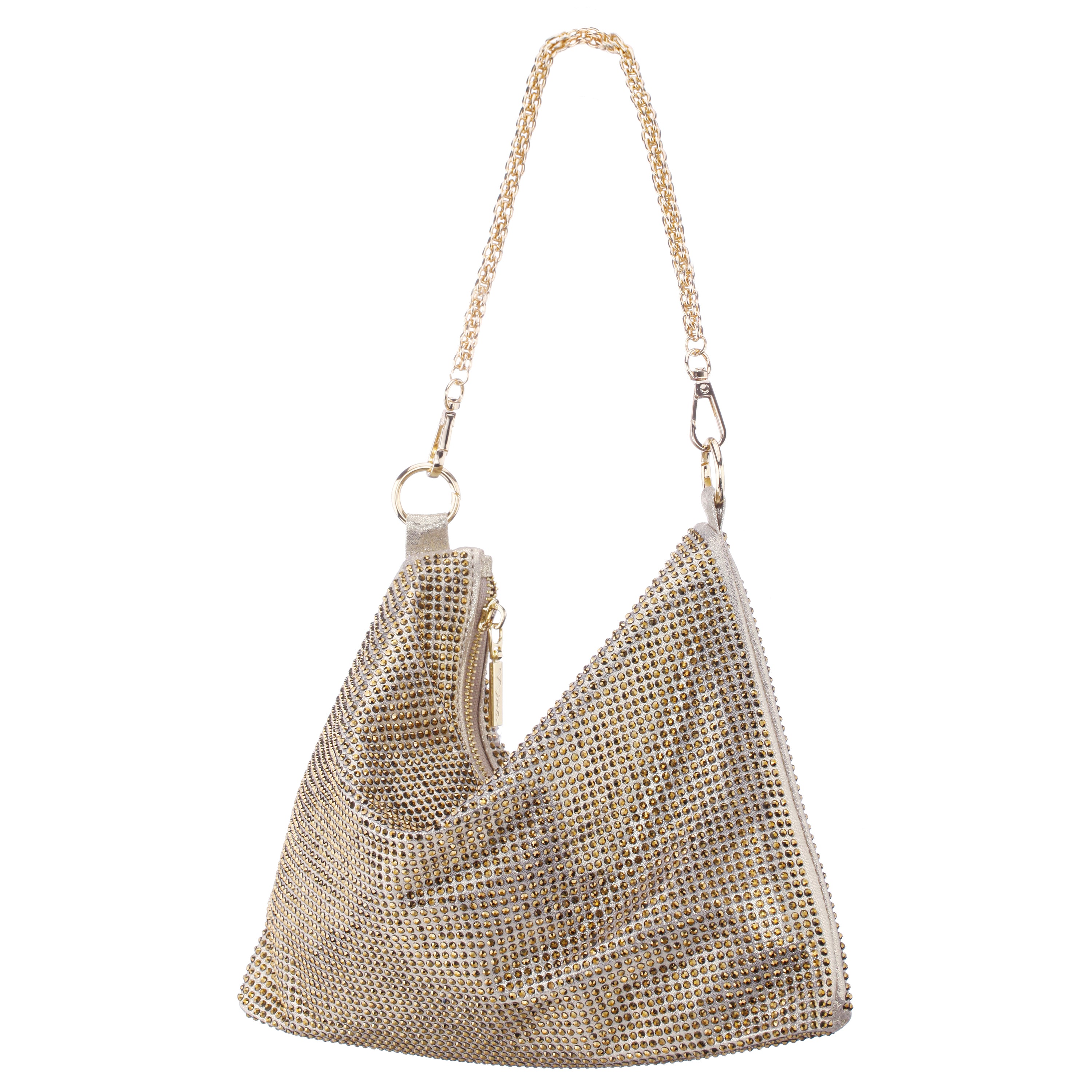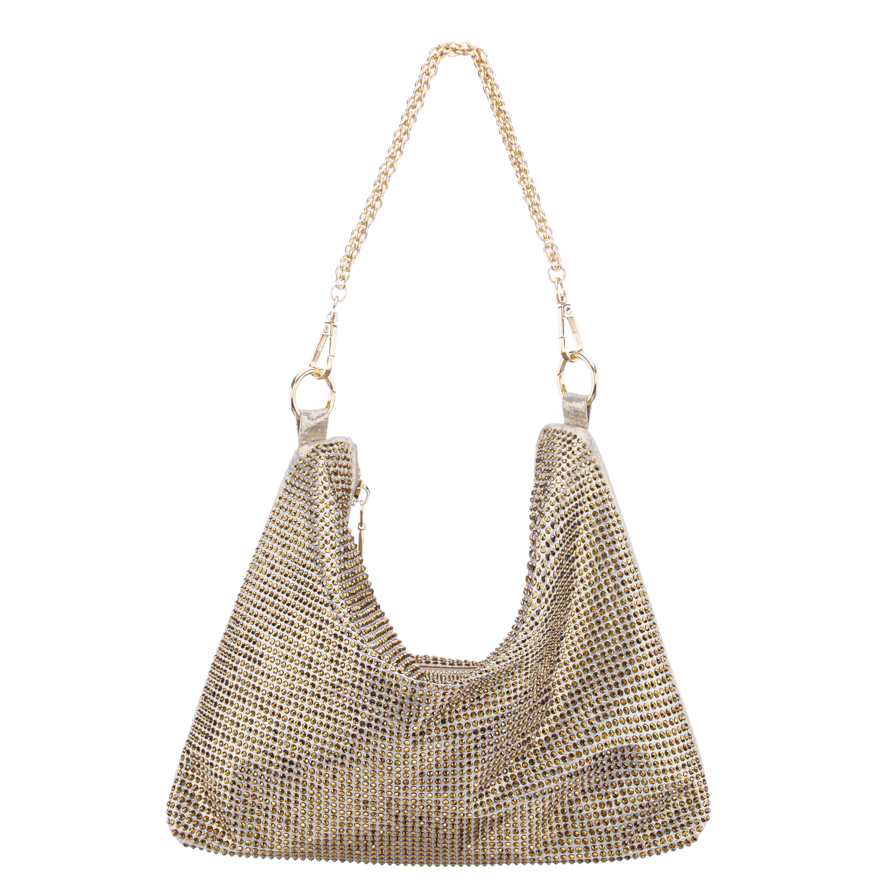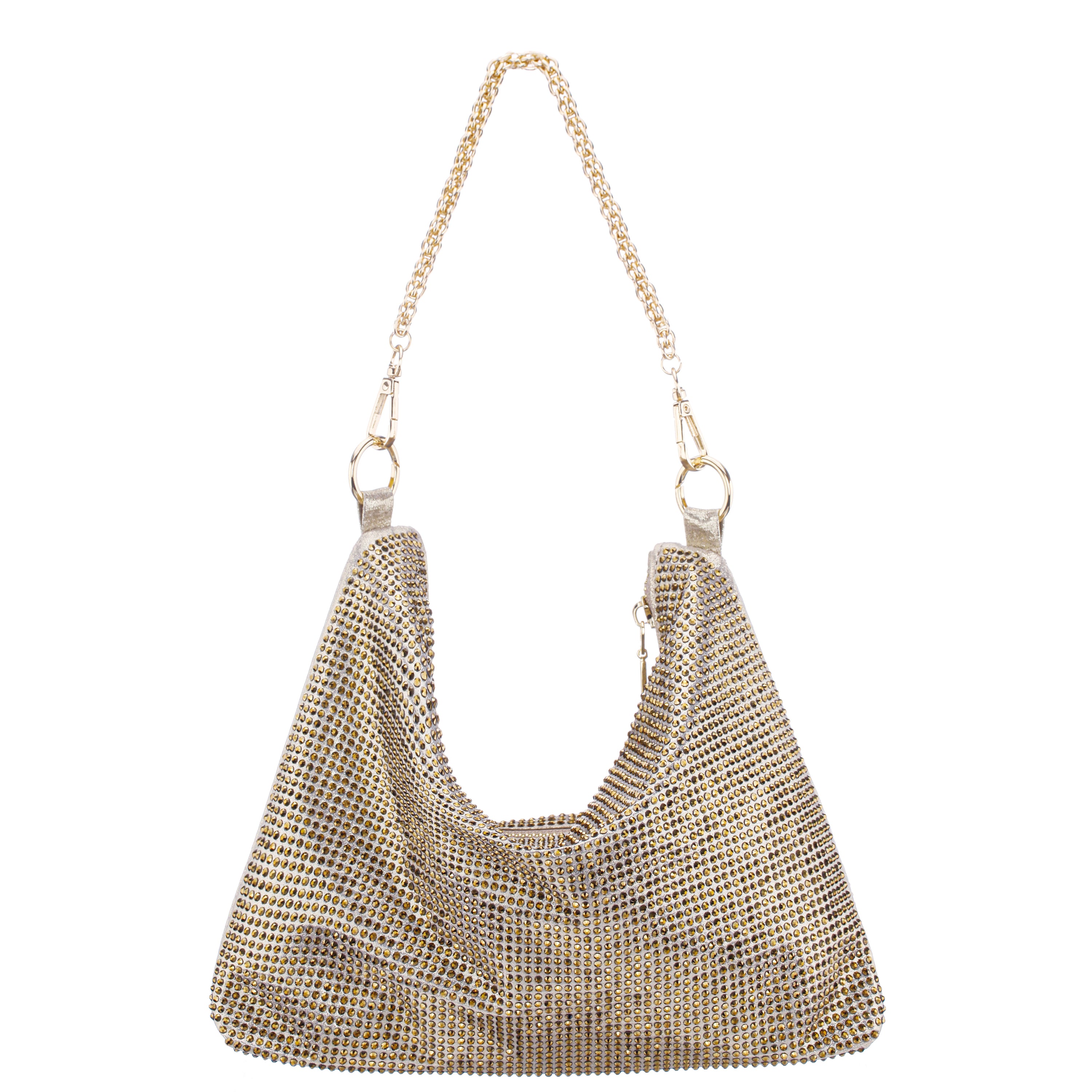GOLD GLASS CRYSTAL / SATIN HOBO BAG
