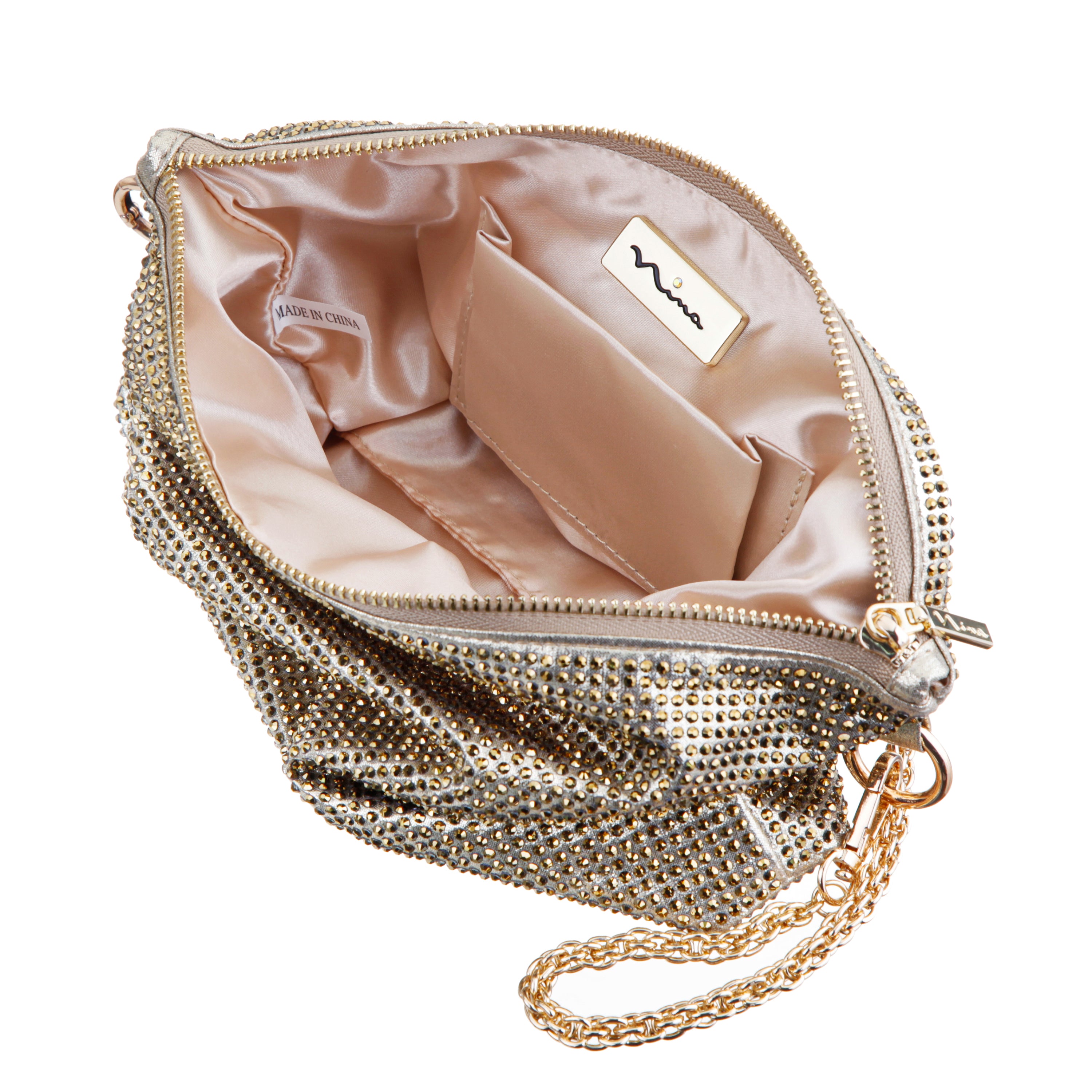 The SOHO by Nina brings effortless polish to everyday glamour with its sleek, modern silhouette and city-chic vibe. Perfectly sized for day-to-night transitions, this structured shoulder bag features a minimalist shape and just the right amount of shine. The zipper closure keeps your essentials secure, while the 10" drop handle rests comfortably on the shoulder. Inside, you'll find a satin-lined interior and a back wall pocket for staying organized on the go. Finished with silver or gold-tone hardware, the SOHO by Nina is your ultimate companion for elevated everyday style.