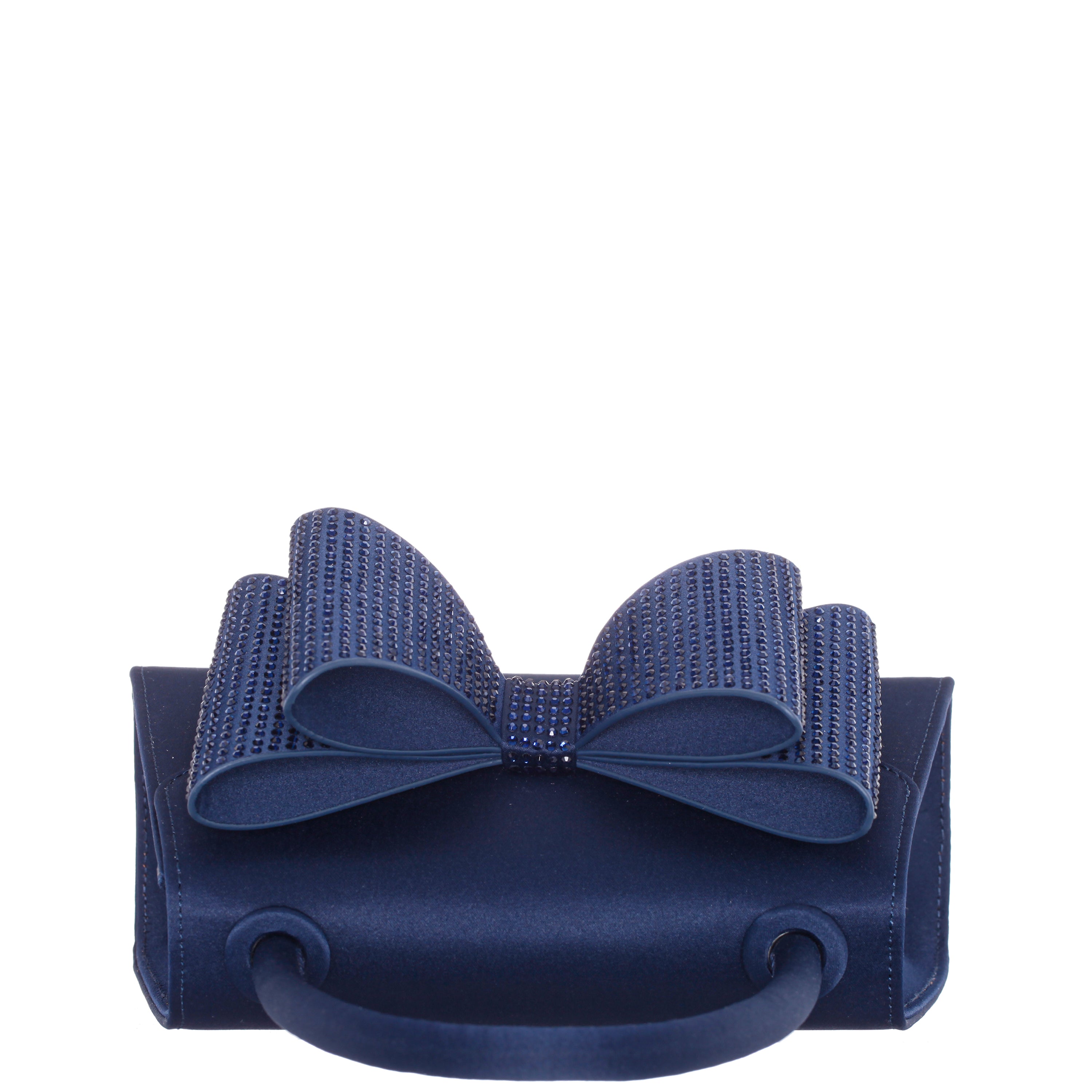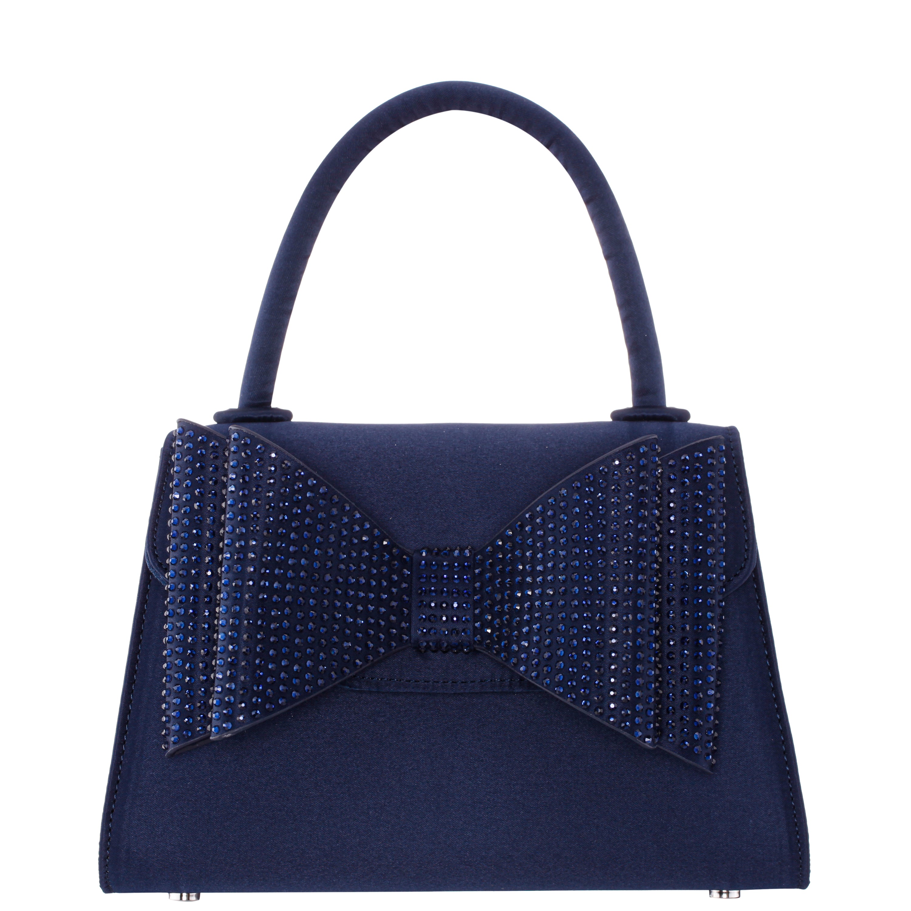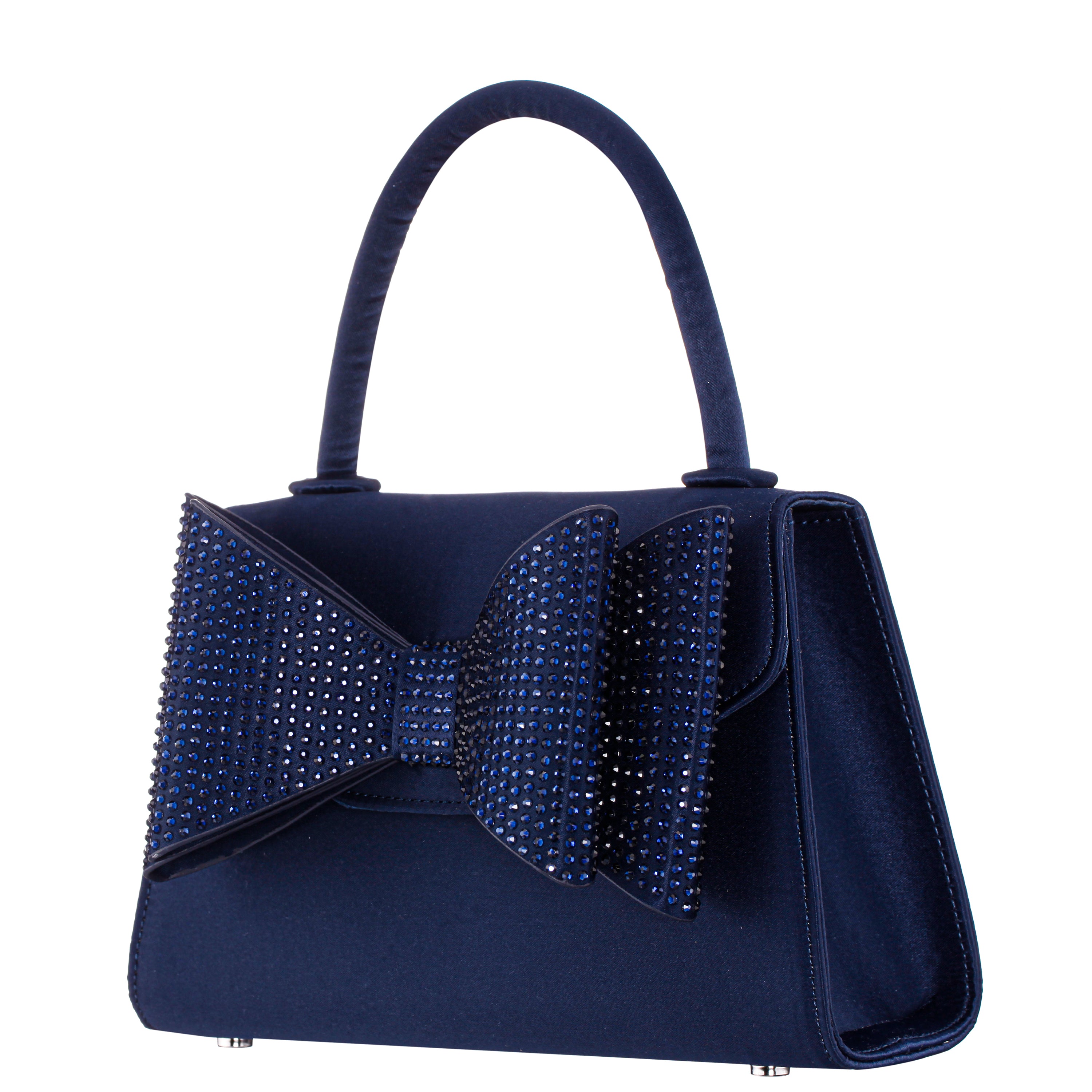 NAVY SATIN/GLASS CRYSTAL SATCHEL BAG
