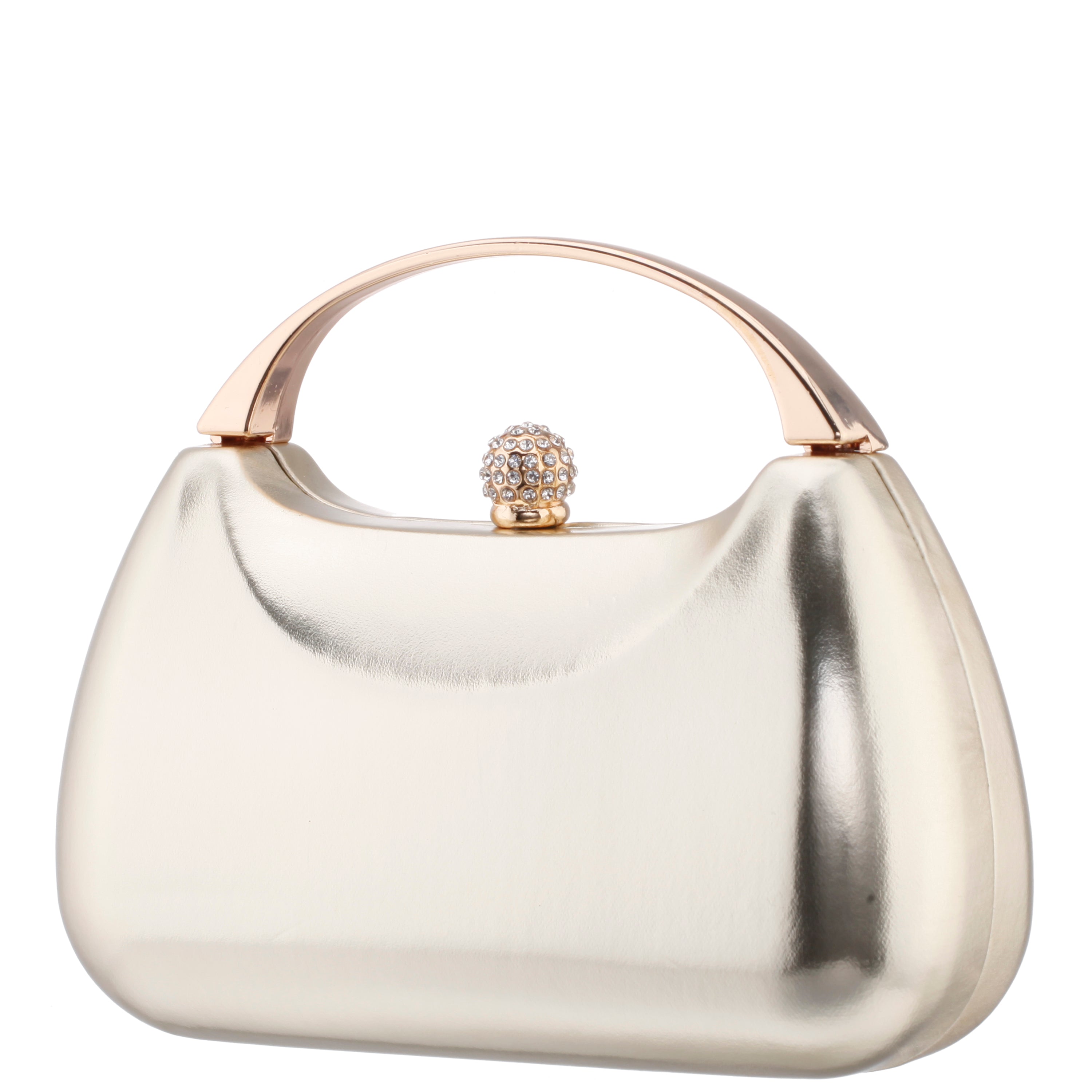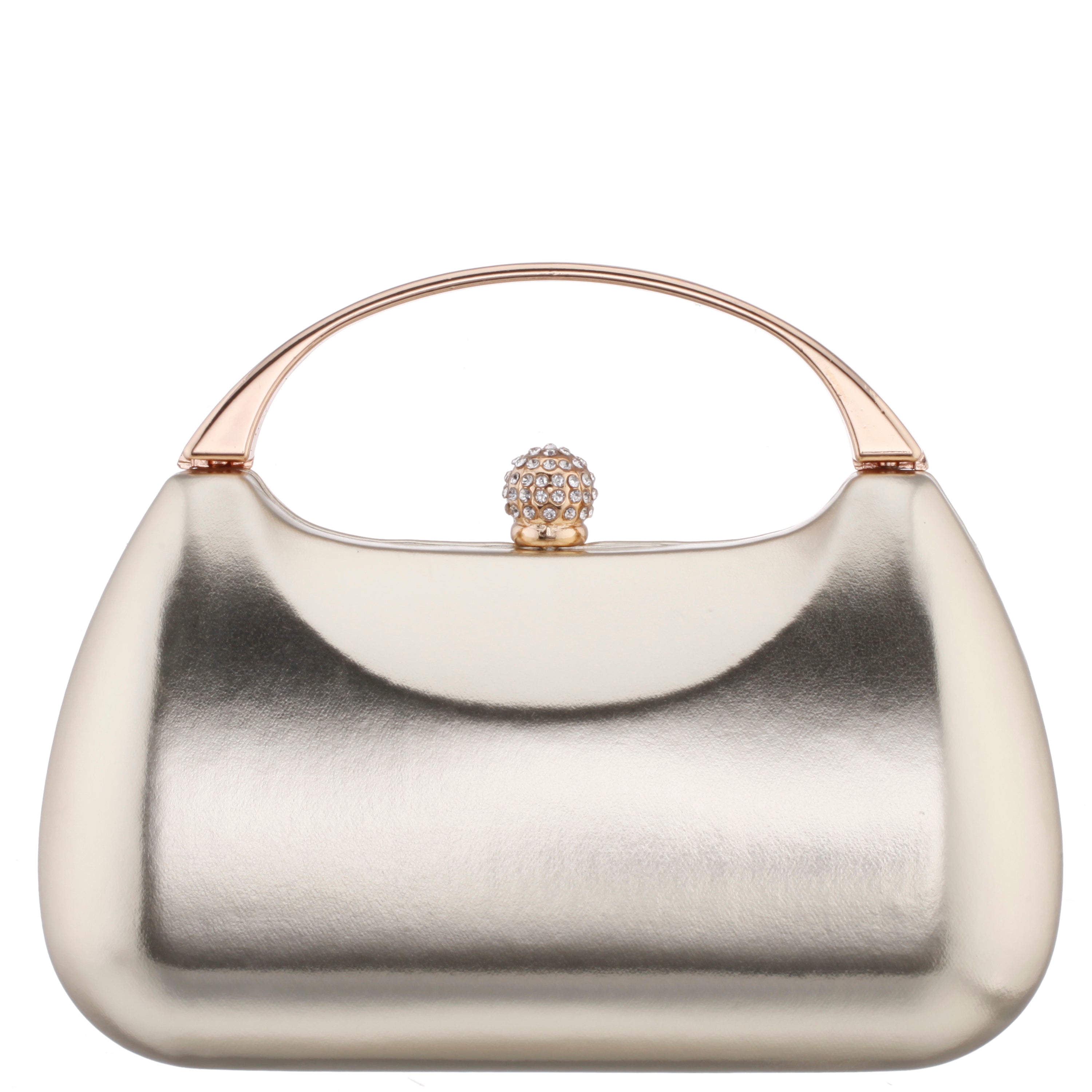 The BRANDO-M minaudiere by Nina is a stunning blend of modern sophistication and radiant glamour. Designed for seamless day-to-evening wear, this sleek, structured minaudiere is crafted from MET FOIL PU, giving it a luminous, high-shine finish that catches the light beautifully. Its metal handle adds a contemporary touch, while the silver and gold-tone hardware options allow for versatile styling. Secure your essentials with the lift-lock closure, and enjoy the satin synthetic fabric lining that provides a touch of luxury inside. Whether carried by the 1.25" drop handle for a chic hand-held look or worn as a shoulder bag with the 18" flat curb chain strap, the BRANDO-M is the perfect accessory to elevate any evening ensemble.