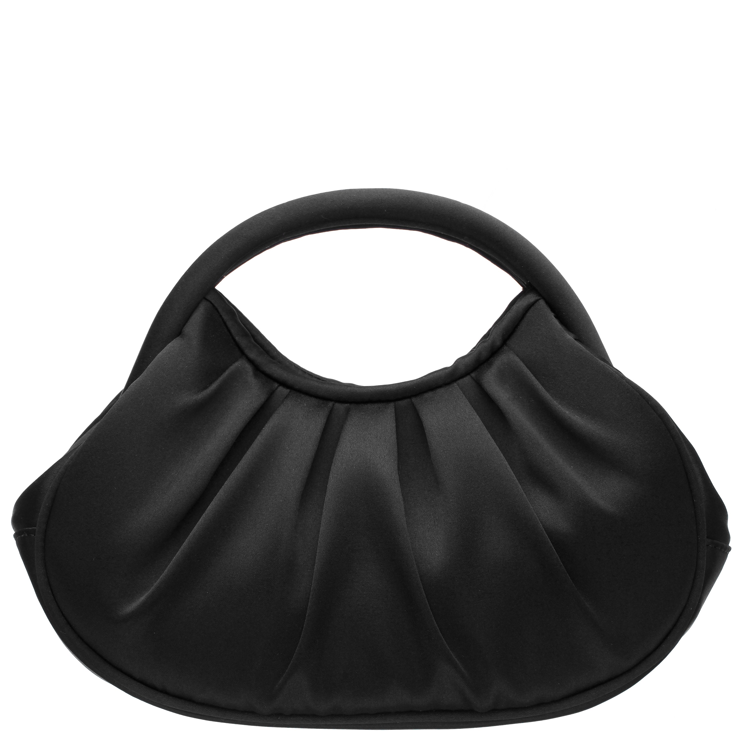 BREN is a modern and chic mini moon satchel, designed to bring a touch of effortless elegance to your evening ensemble. With its curved silhouette and sleek cut-out handle, this bag offers a contemporary twist on classic sophistication. Made from luxurious satin, its smooth, soft texture adds a refined touch to any outfit. The versatile design allows you to carry it as a top-handle bag or wear it as a shoulder bag with the 18" flat curb chain strap. Inside, a satin synthetic fabric lining and back interior wall pocket provide organization and practicality. The hidden magnetic closure maintains the bag’s sleek and seamless aesthetic while keeping your essentials secure. Whether you're attending a wedding, cocktail party, or night out, BREN by Nina is the perfect accessory for a modern, sophisticated look.