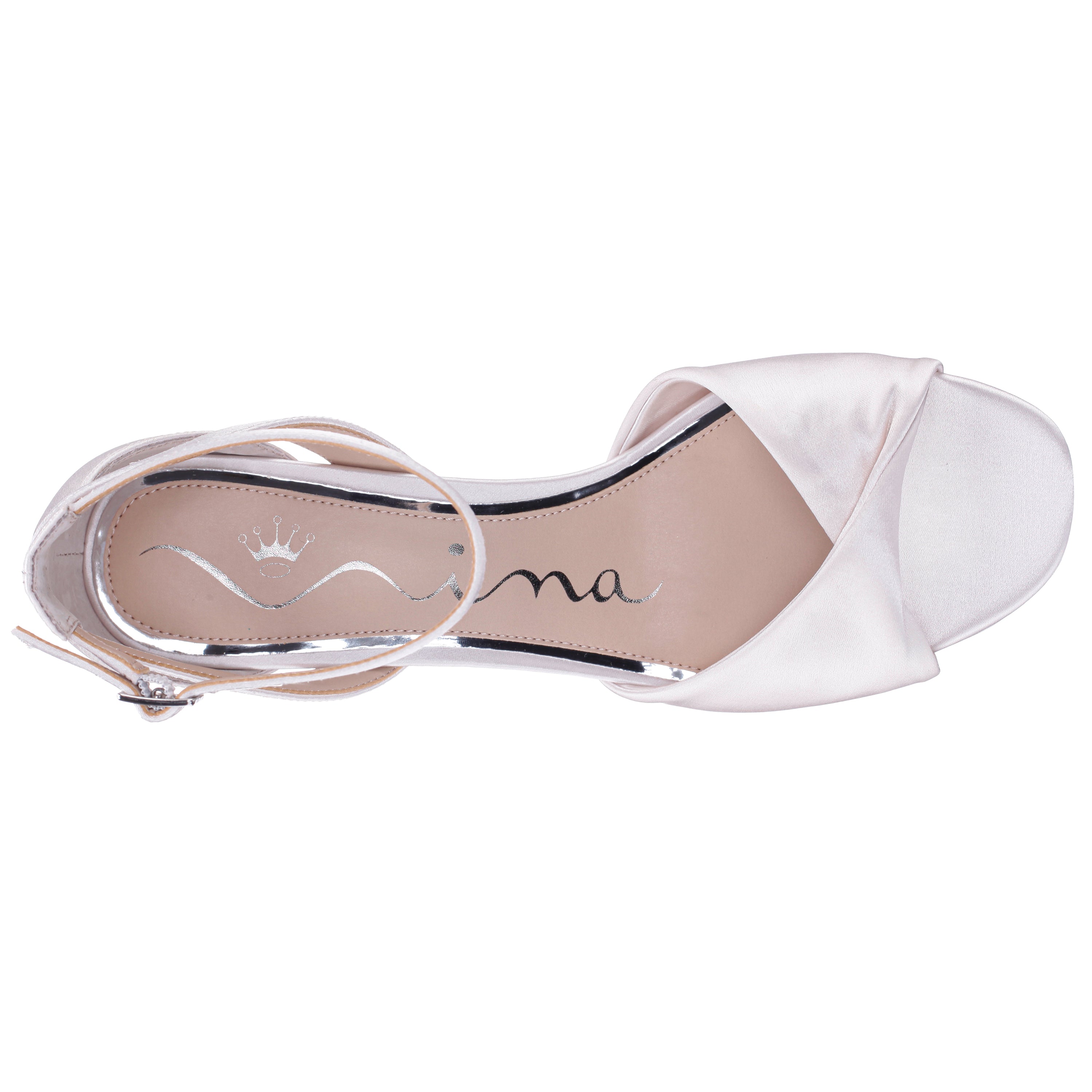 With their air of romance, the BRIZA sandal by Nina Shoes is surrounded by an aura of soft retro-style glamour. Perched on both a comfortable height platform and a mid-height shapely heel, the twist-front vamp features luscious-to-the-hand materials that enhance the styleβs feminine look. This elegant sandalβs uniquely designed counter, with its peek-a-boo cut-out, supports the adjustable ankle strap, ensuring a snug fit as you enjoy your evening out.