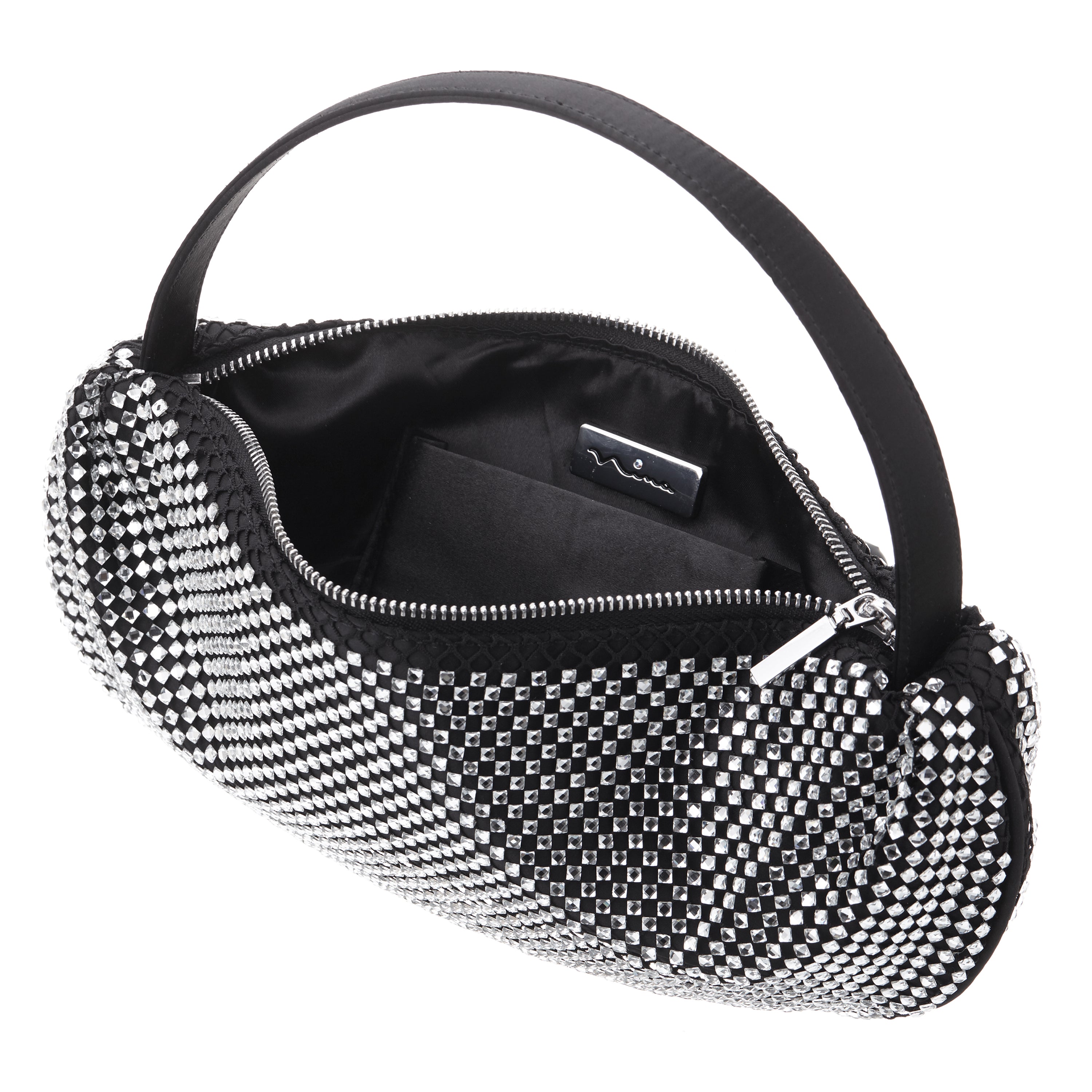 BLACK HALF MOON CRYSTAL NETTING BAG