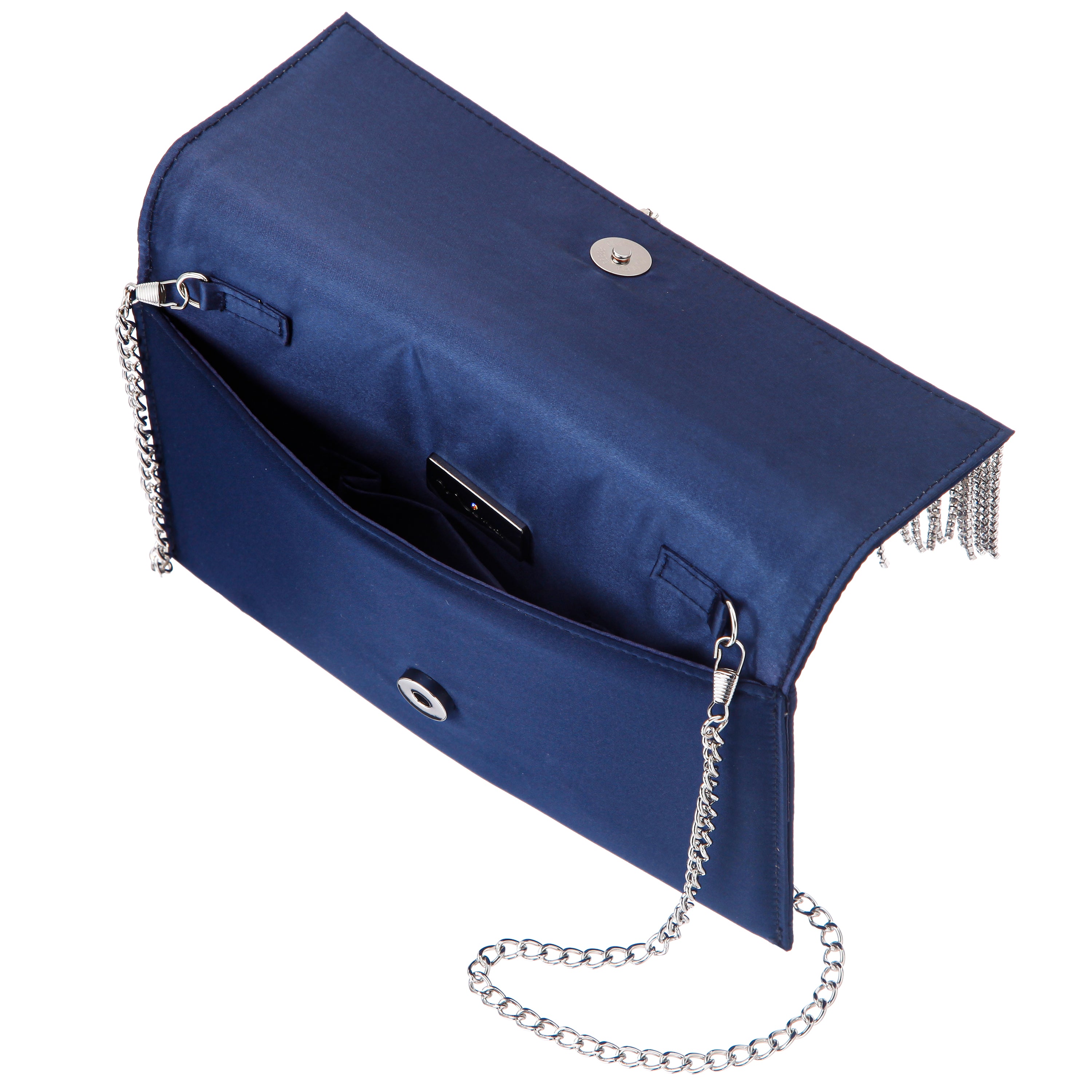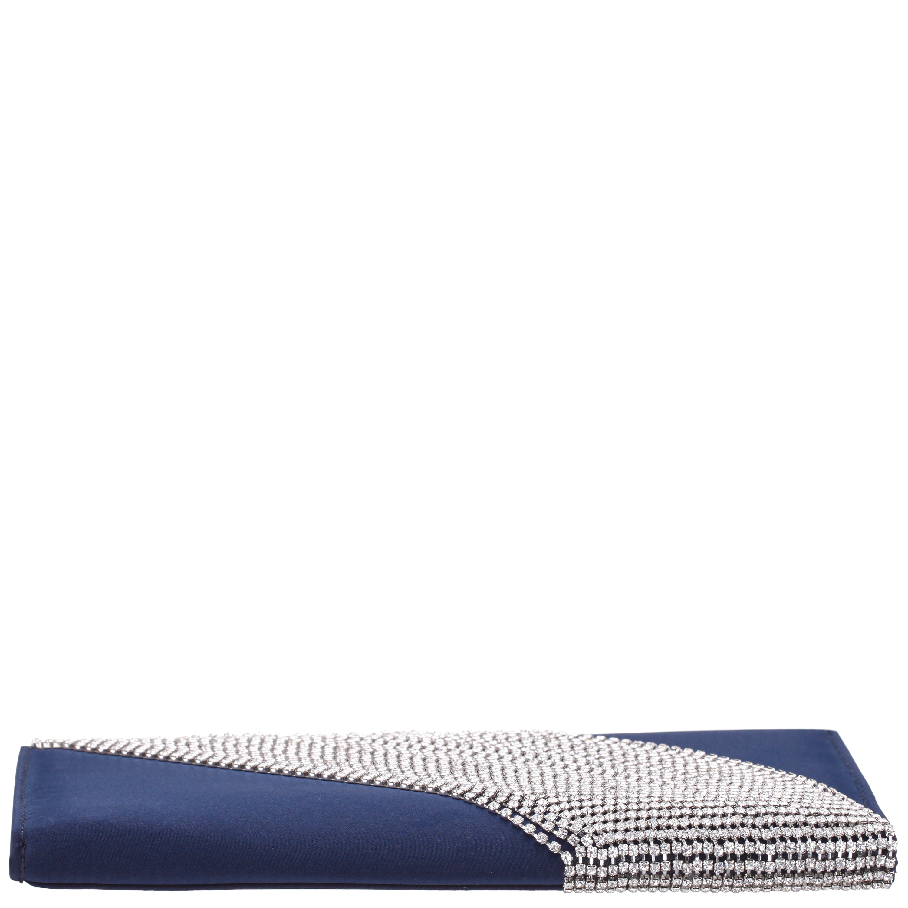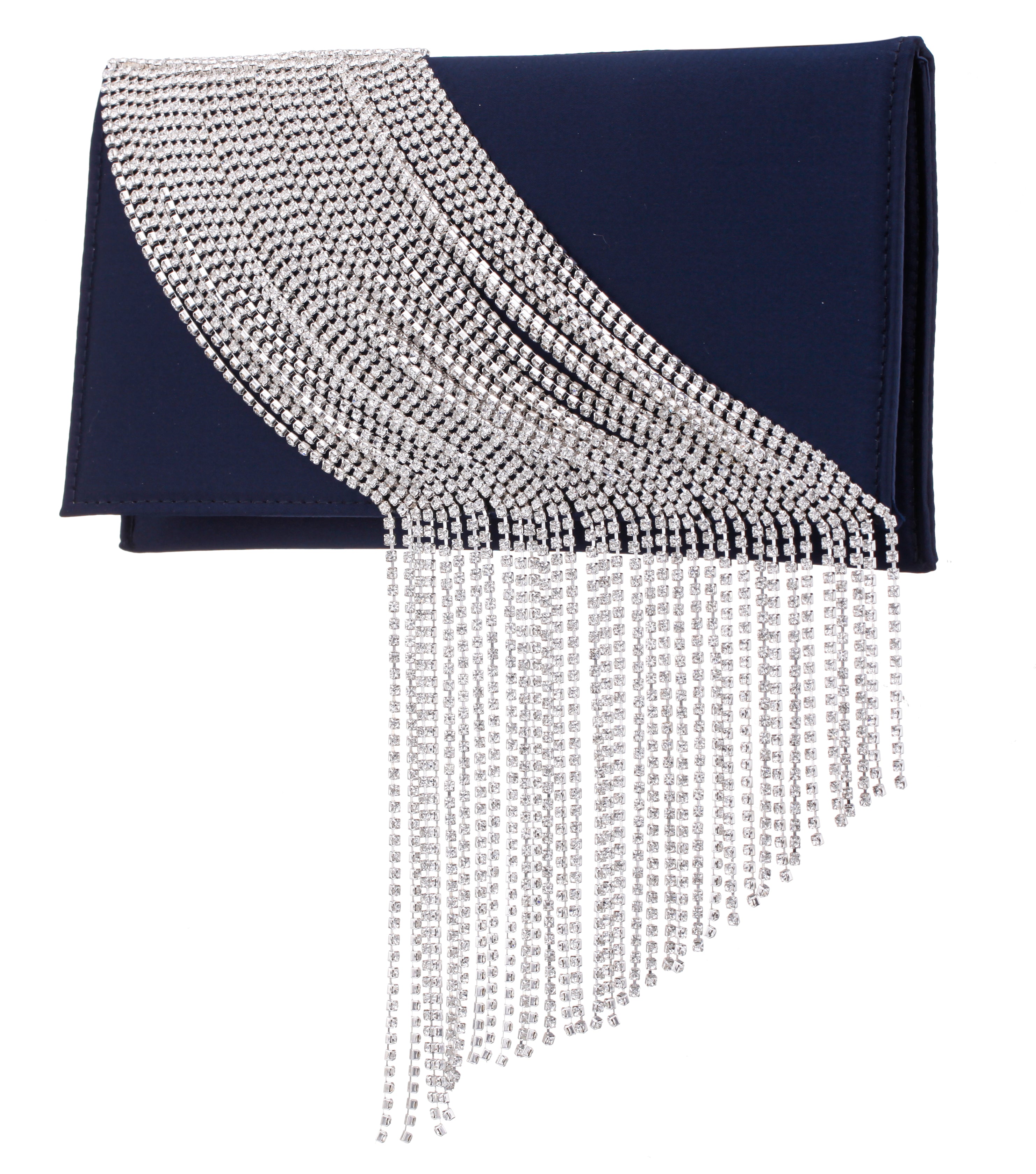 NAVY CRYSTAL CHAIN SLIM ENVELOPE CLUTCH