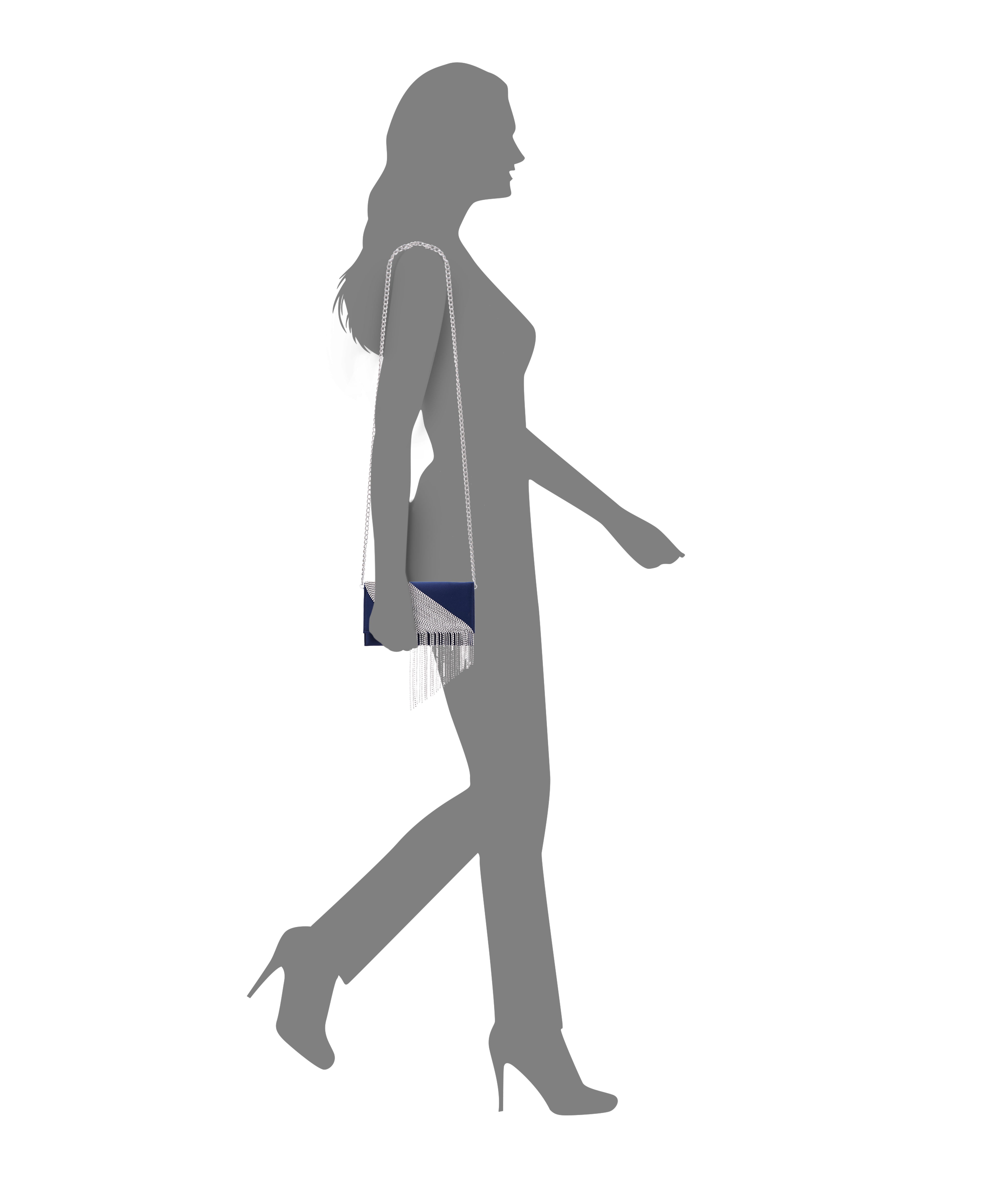 Draped chain over the front of an envelope clutch is the perfect balance between trendy and chic. Can fit all the essentials for a night out, and comes with drop in chain to go hands free
