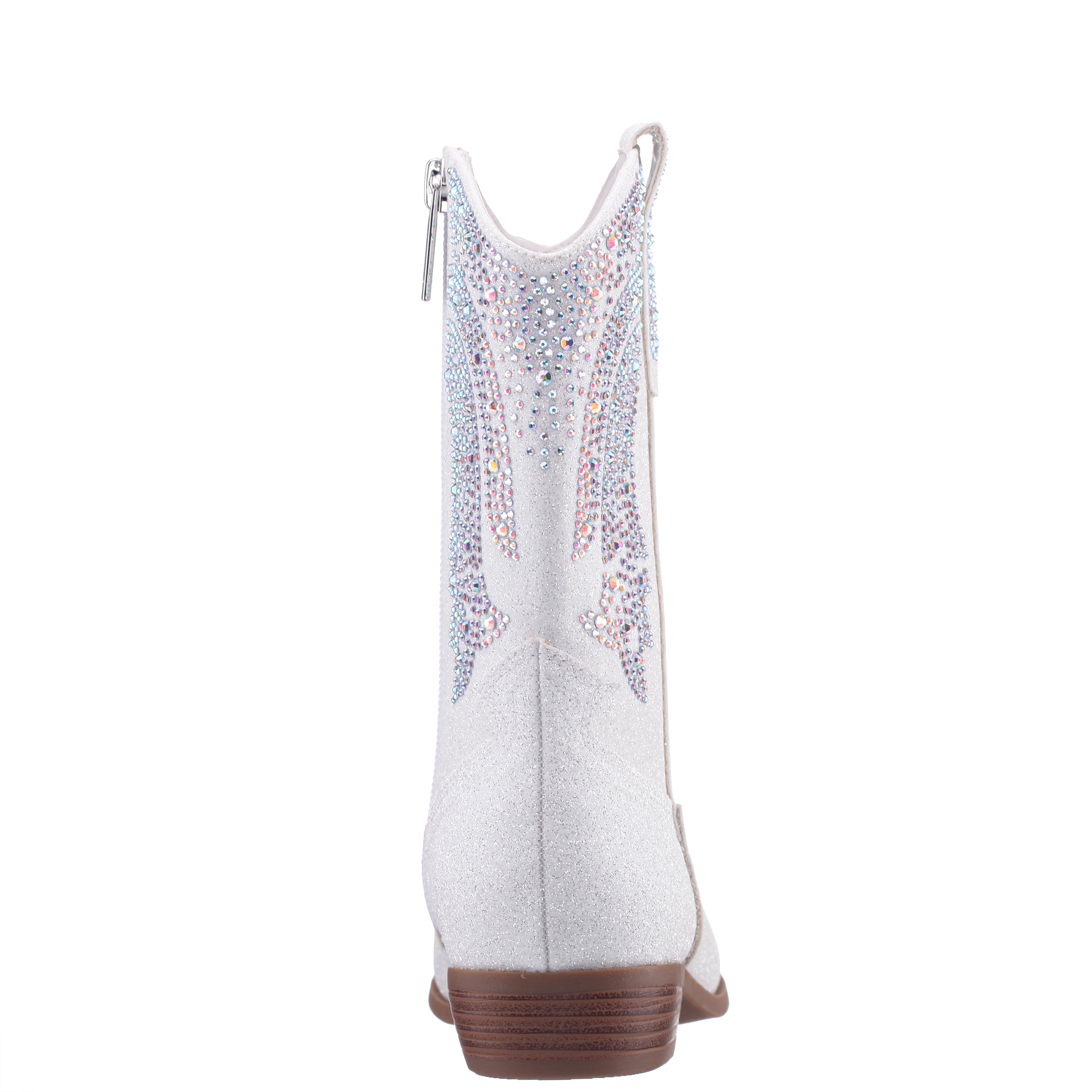 Western flair meets modern sparkle in HAWLEY by Nina — a stylish cowboy boot made to shine. With its almond toe silhouette, shimmering rhinestud accents, and sleek branded zipper pull, this boot brings a fresh twist to a classic shape. The 1-1/8" heel offers just the right lift, while the inside zipper ensures easy wear. Finished with a cushioned memory foam insole and non-slip outsole, HAWLEY is perfect for dressing up her everyday looks or adding some shine to special occasions.
