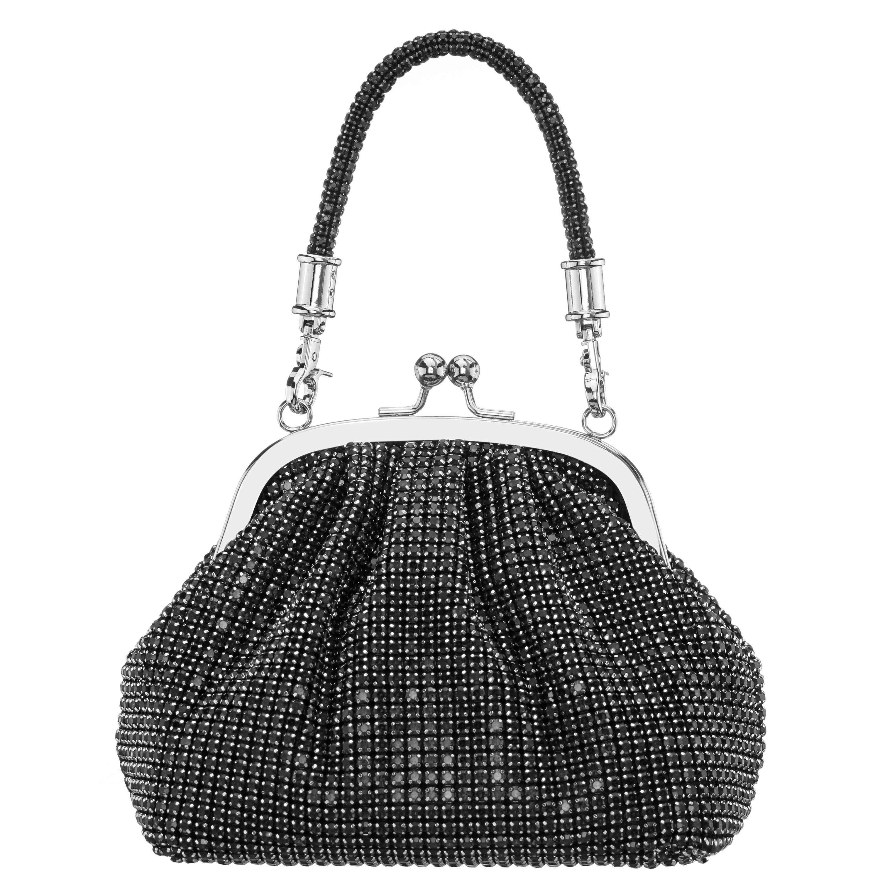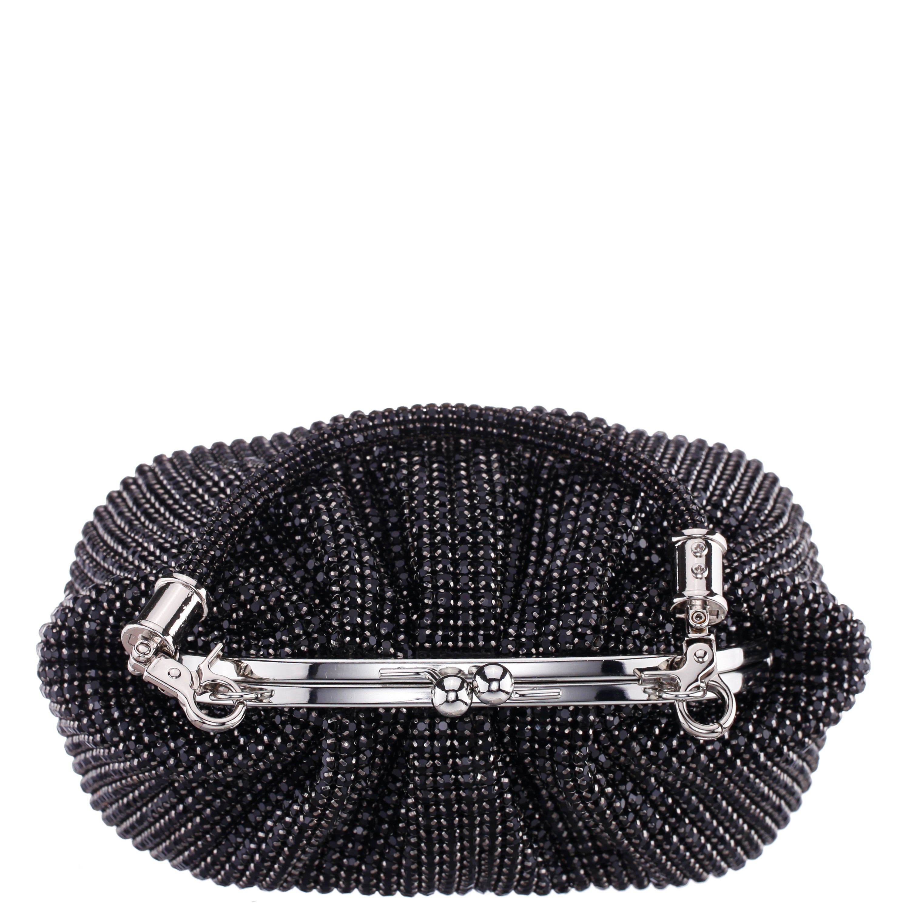 BLACK CRYSTAL MESH HANDLE BAG
