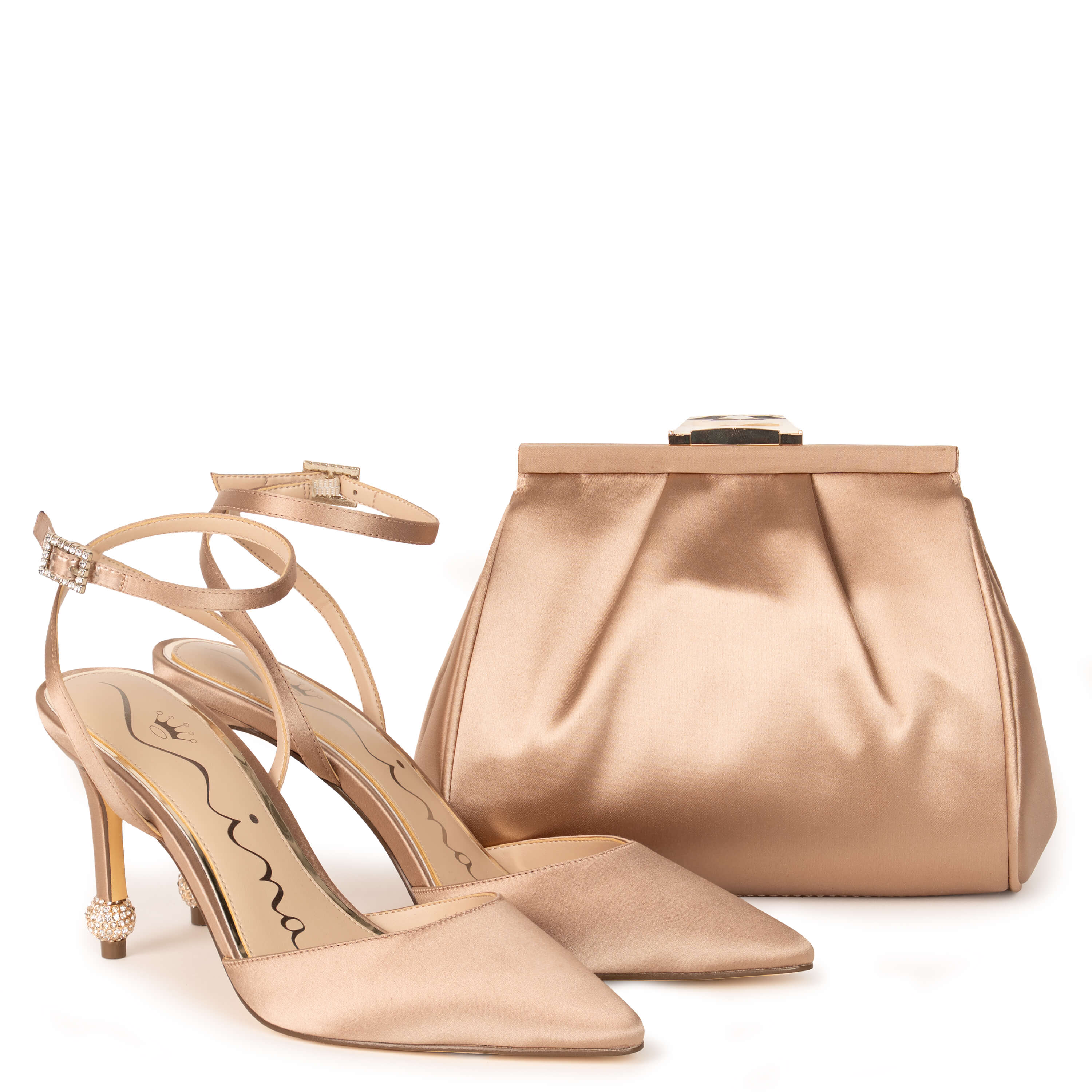Embellished with a diamond boule heel, Nasha by Nina Shoes—a glamorous pump detailed in luxurious satin—embodies refinement and glamour. Featuring a crisp pointed-toe and a bejeweled, adjustable buckle for a secure fit, this perfect combination of sophistication and undeniable elegance just adds to your evening delight!