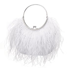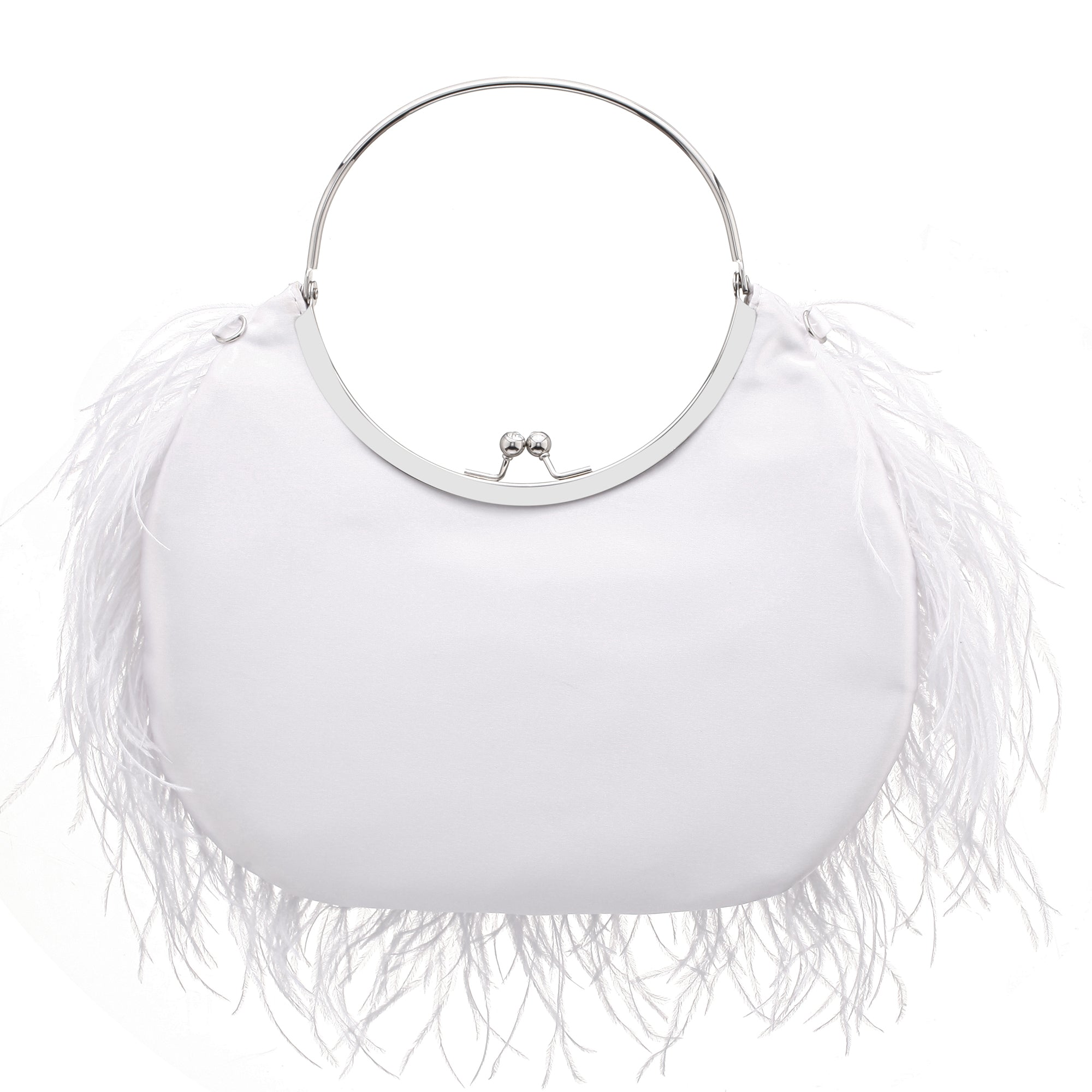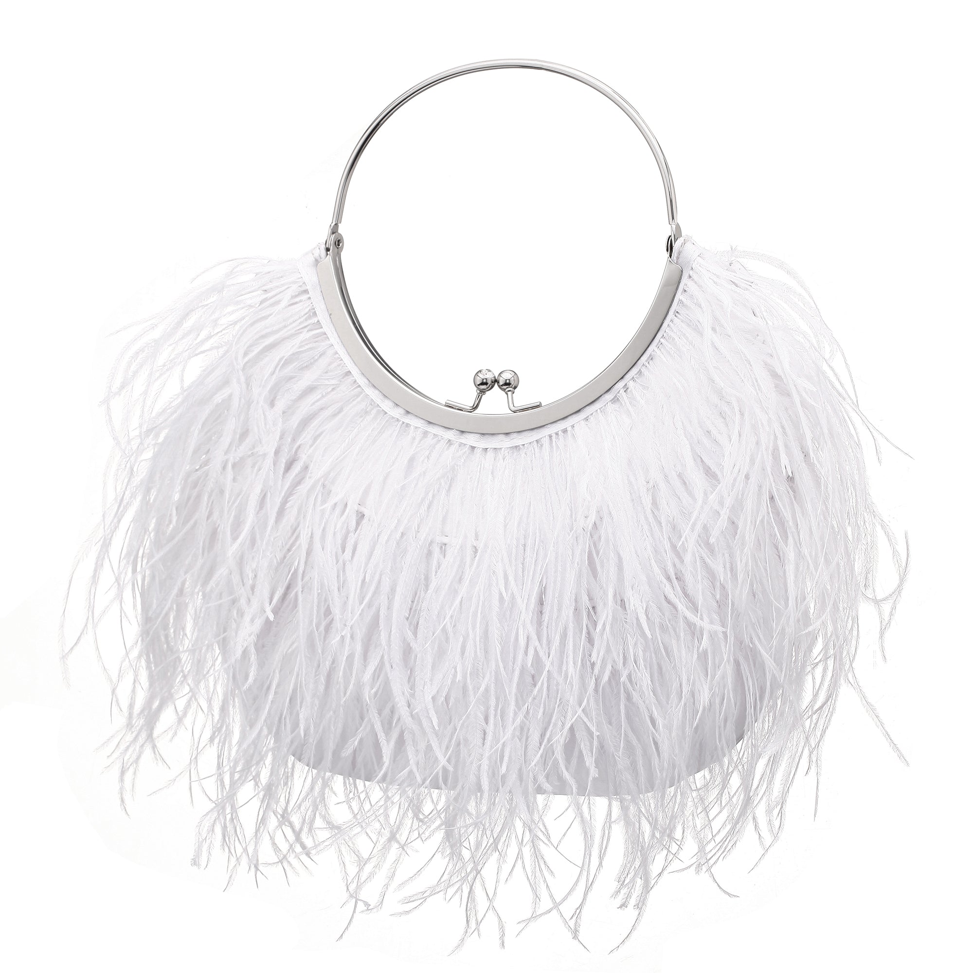 Frothy feathers front this framed handbag lined in silky satin and sealed with a kiss-lock closure.