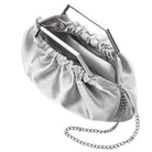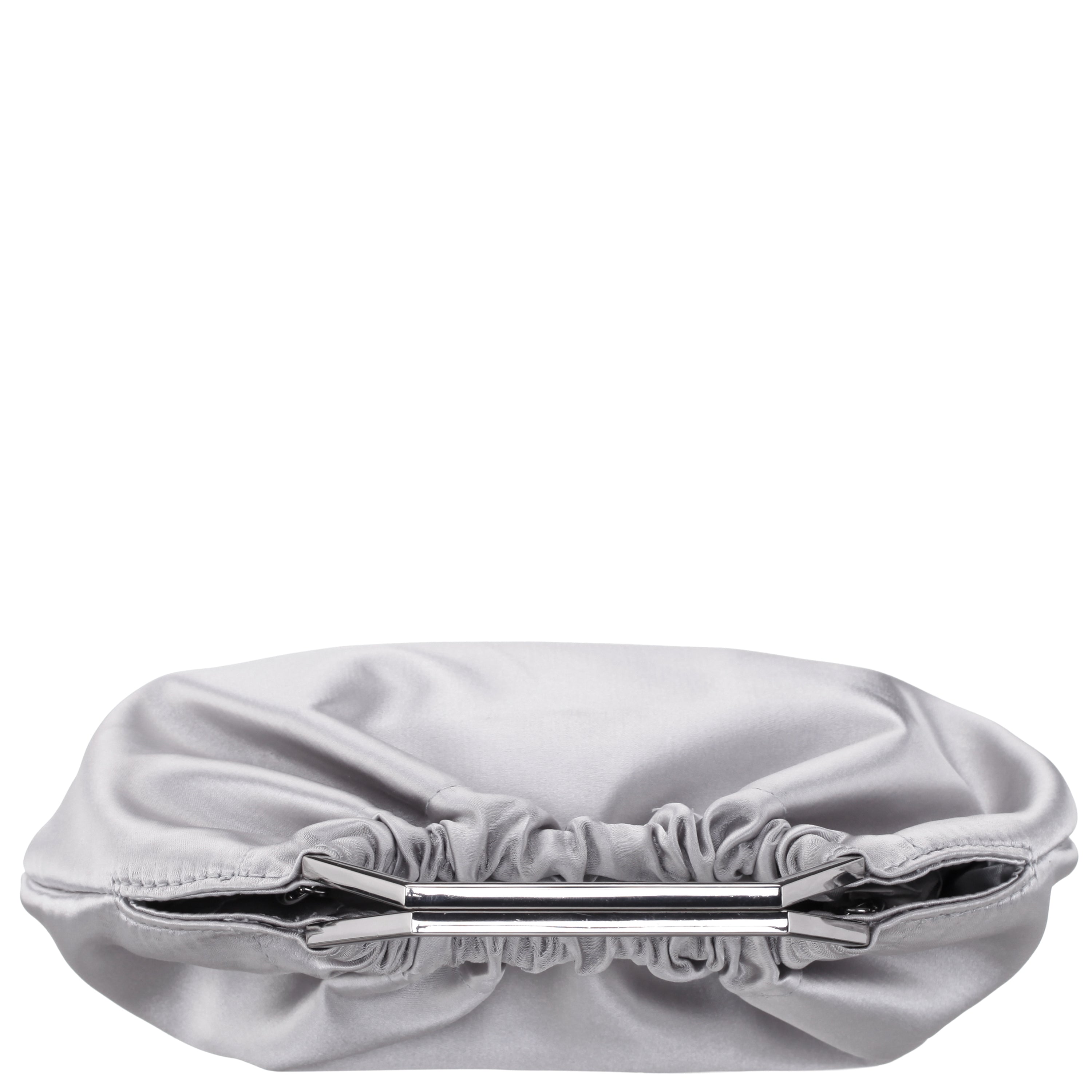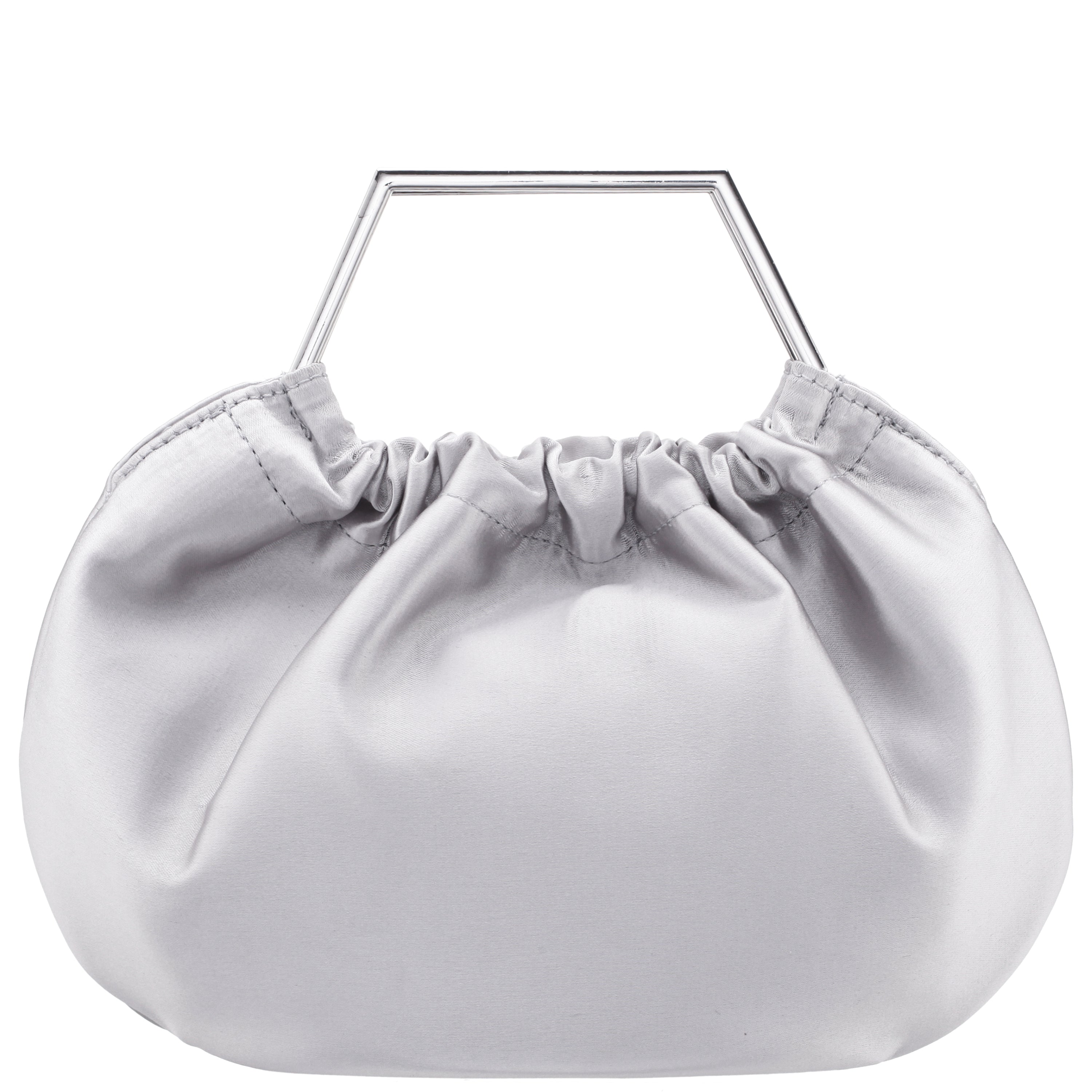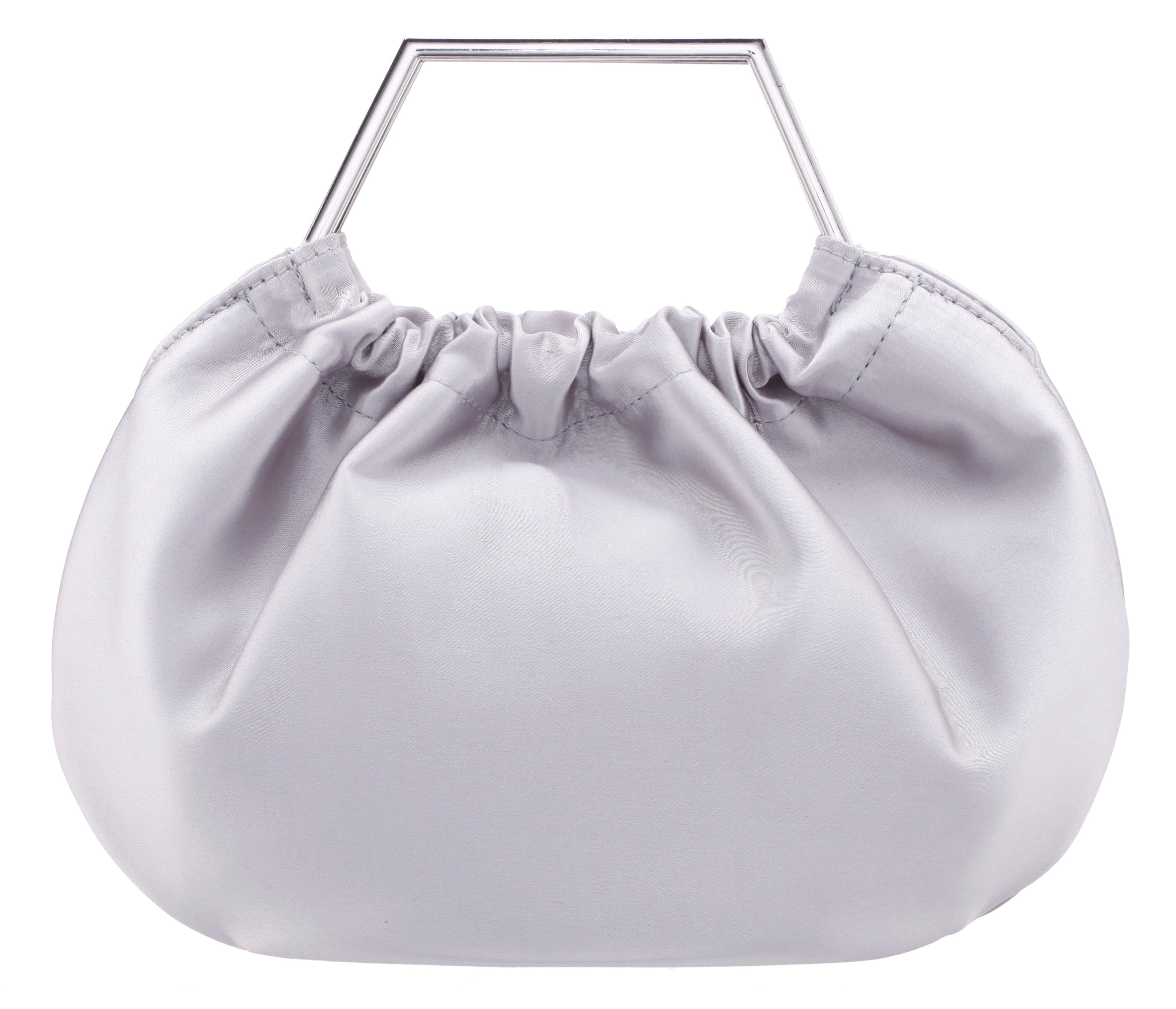 Description: Metal Handle Satin Pouch BagALLISON-SILVER