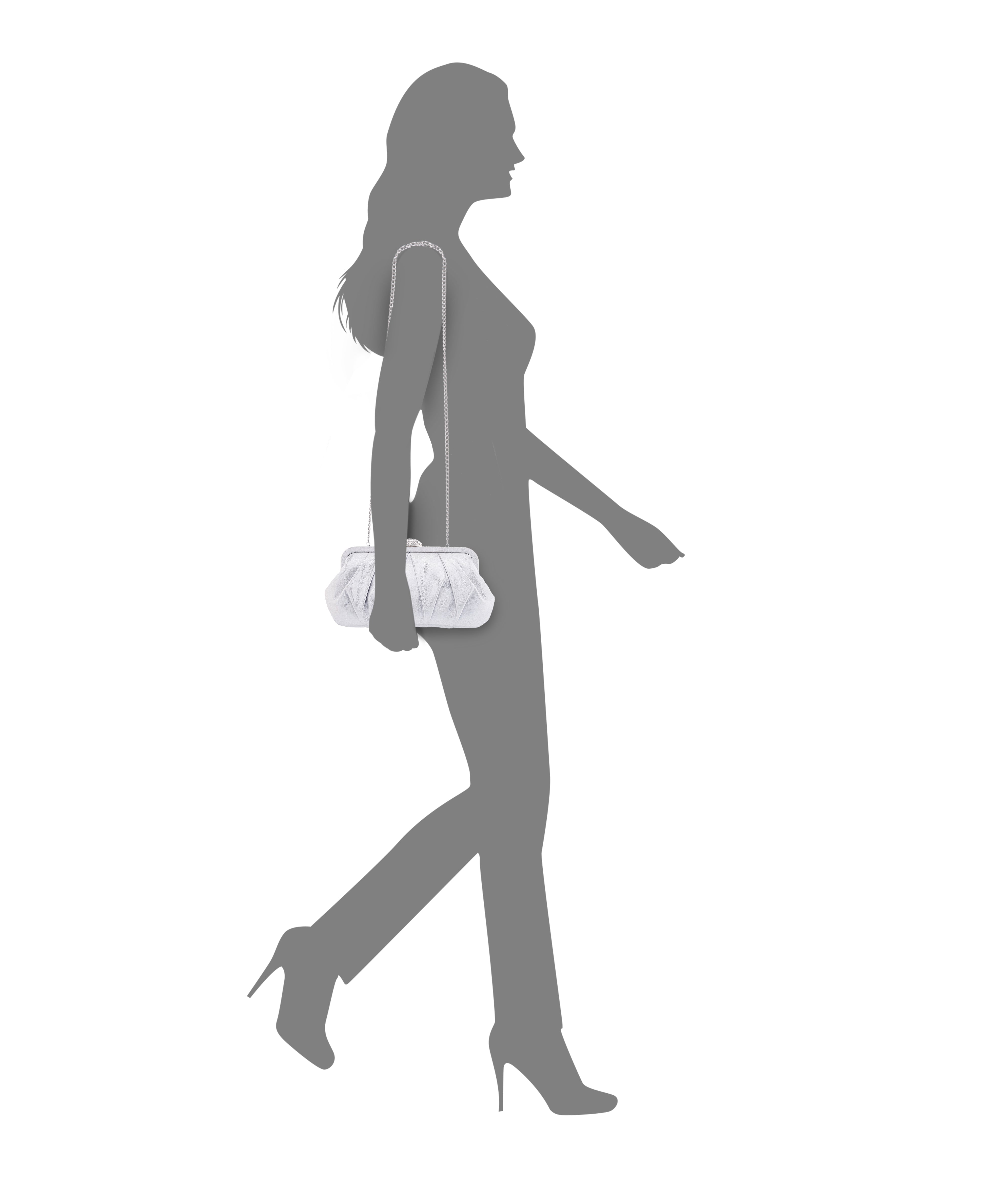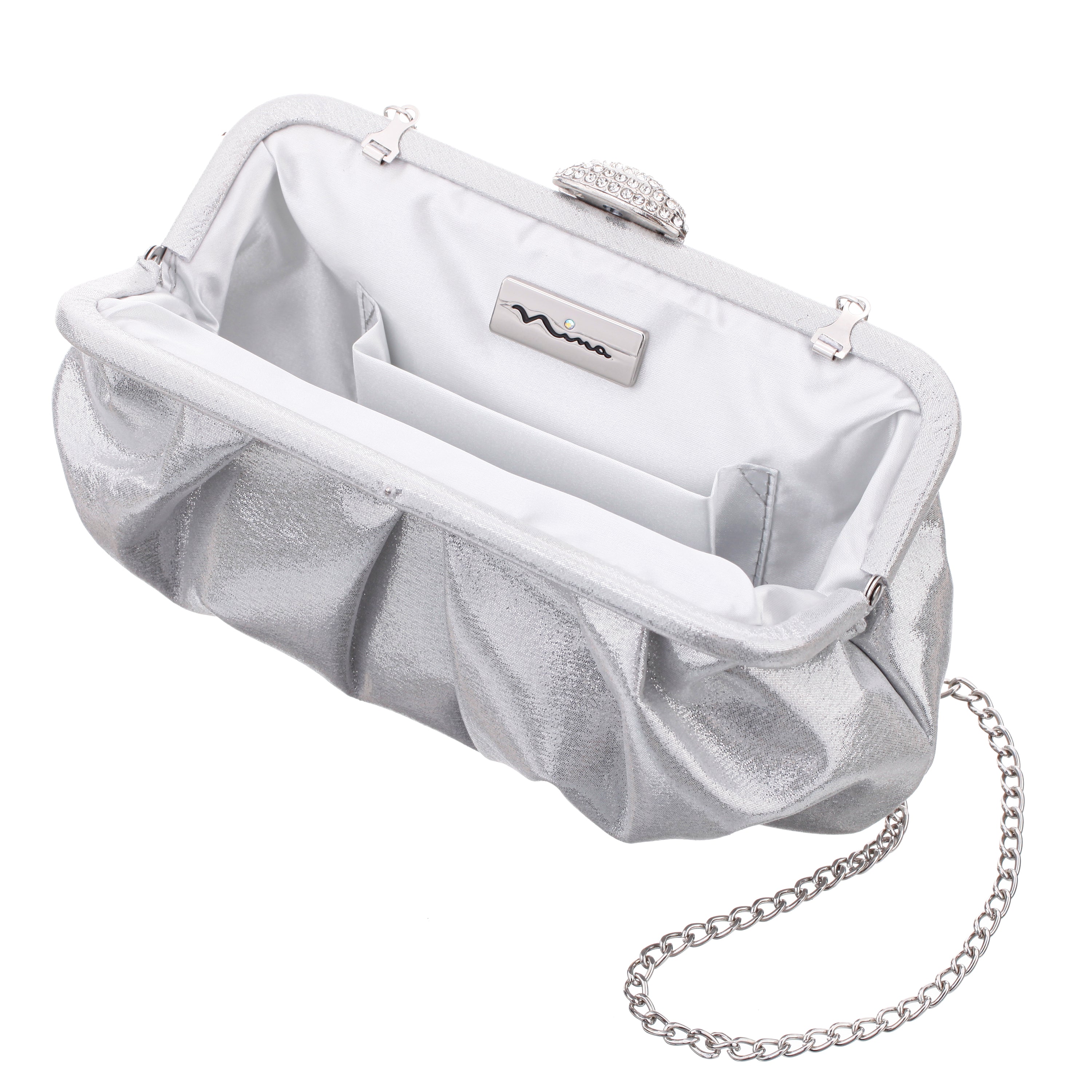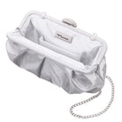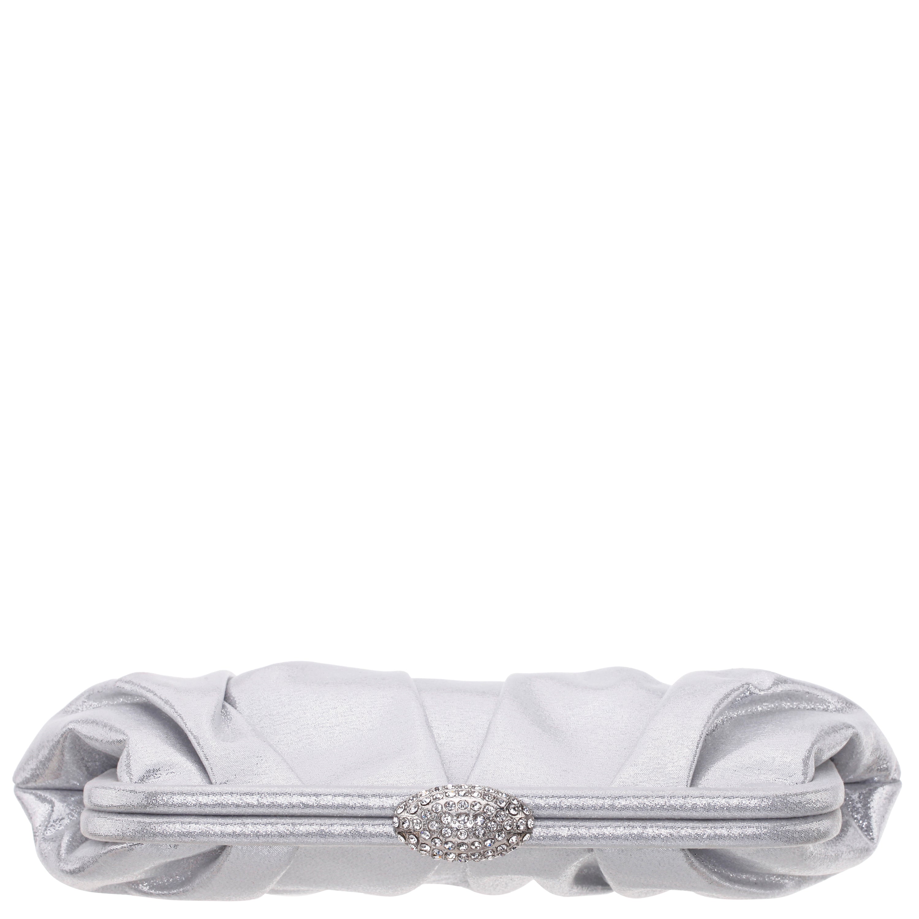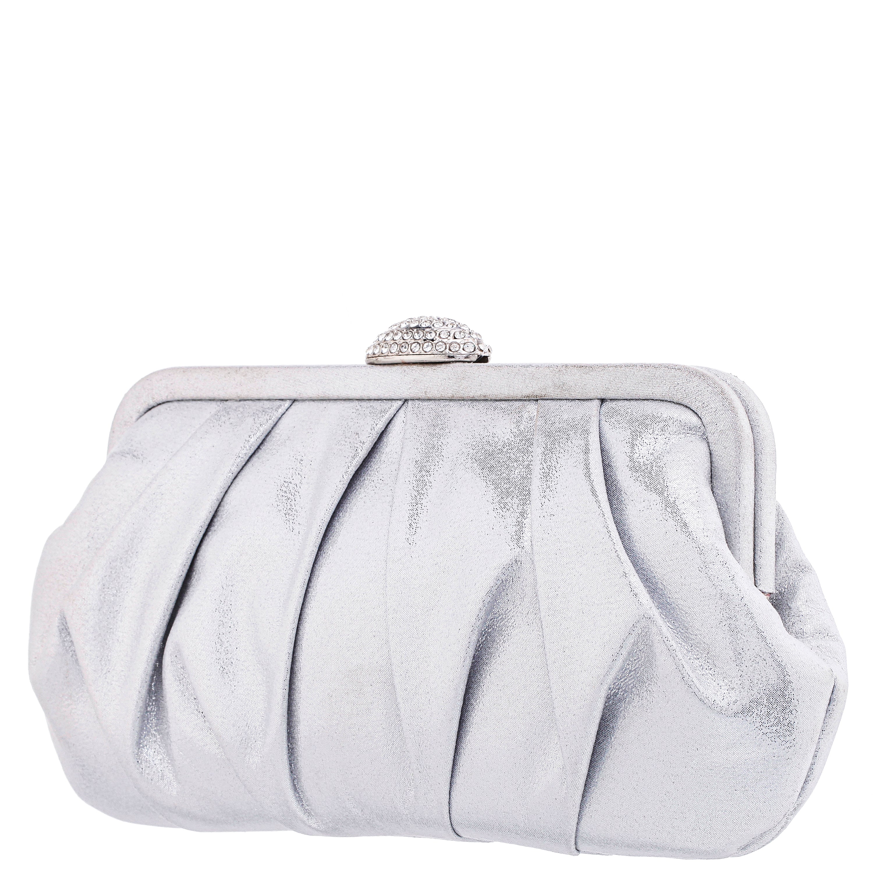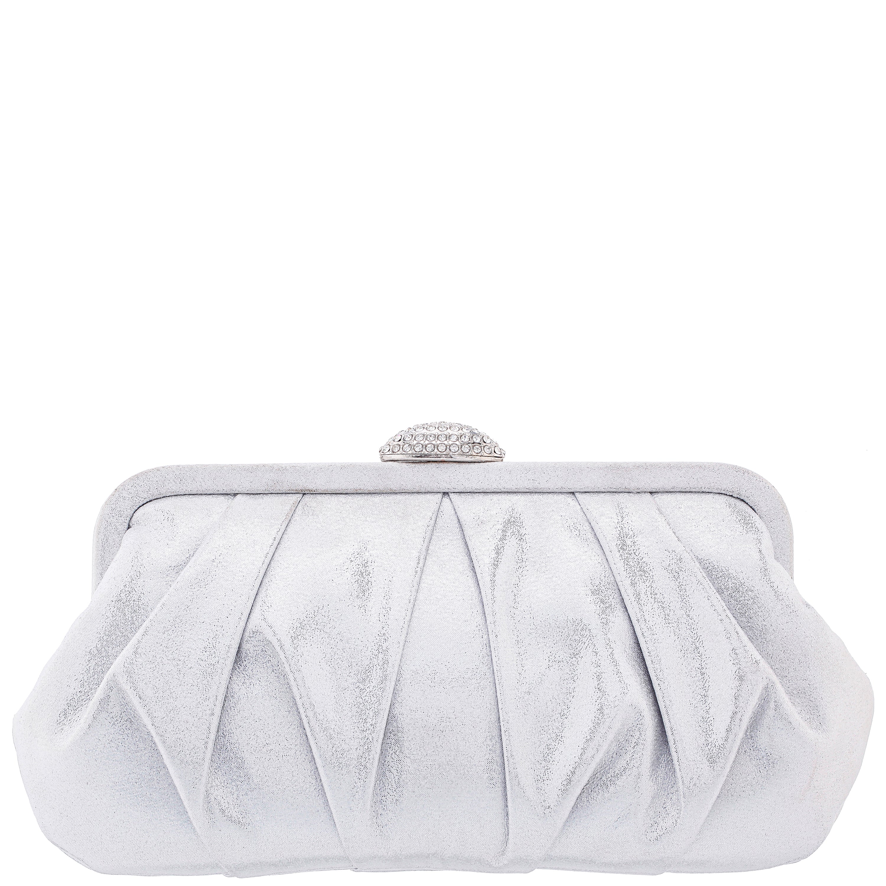 TRUE SILVER PLEATED FRAME CLUTCH WITH CRYSTAL CLASP