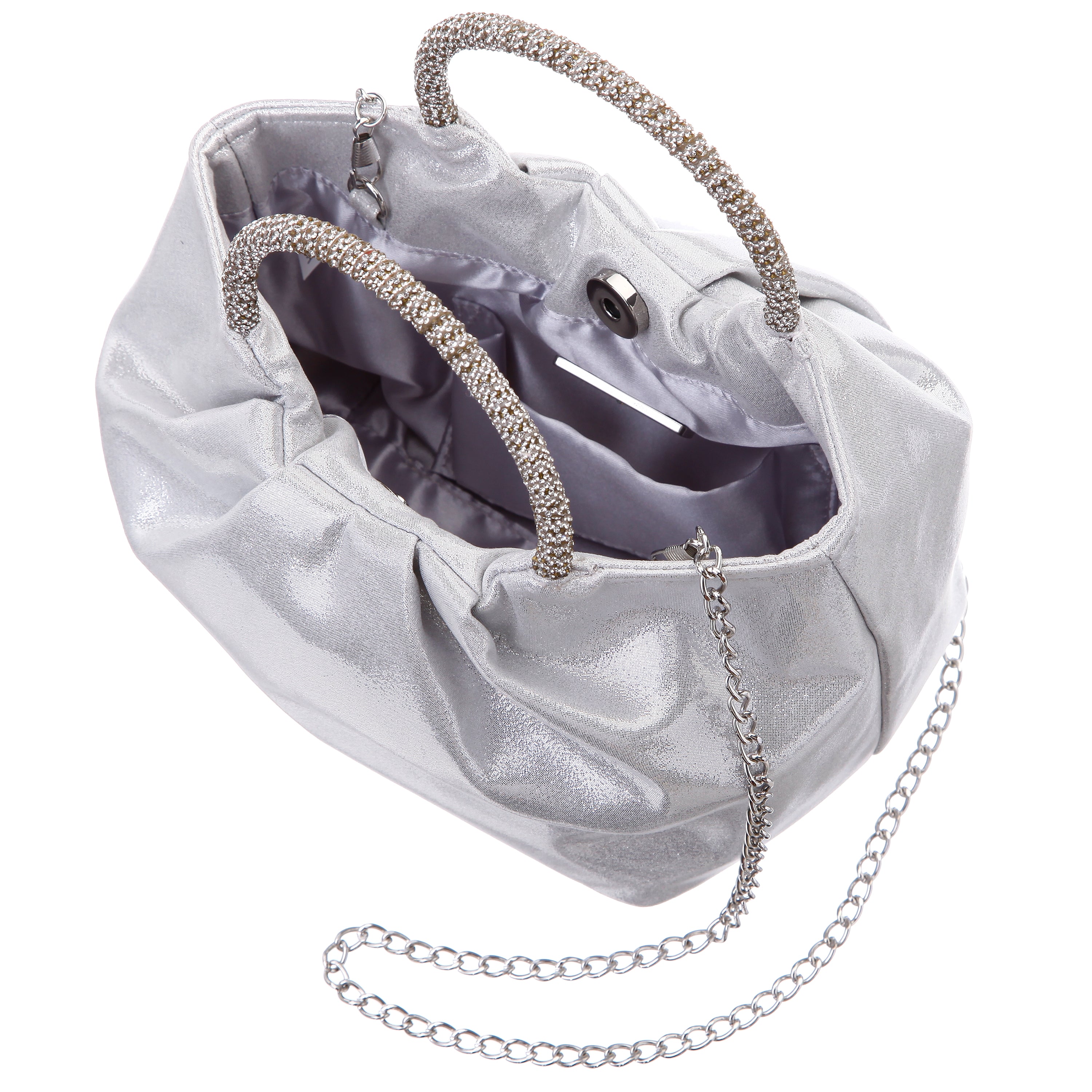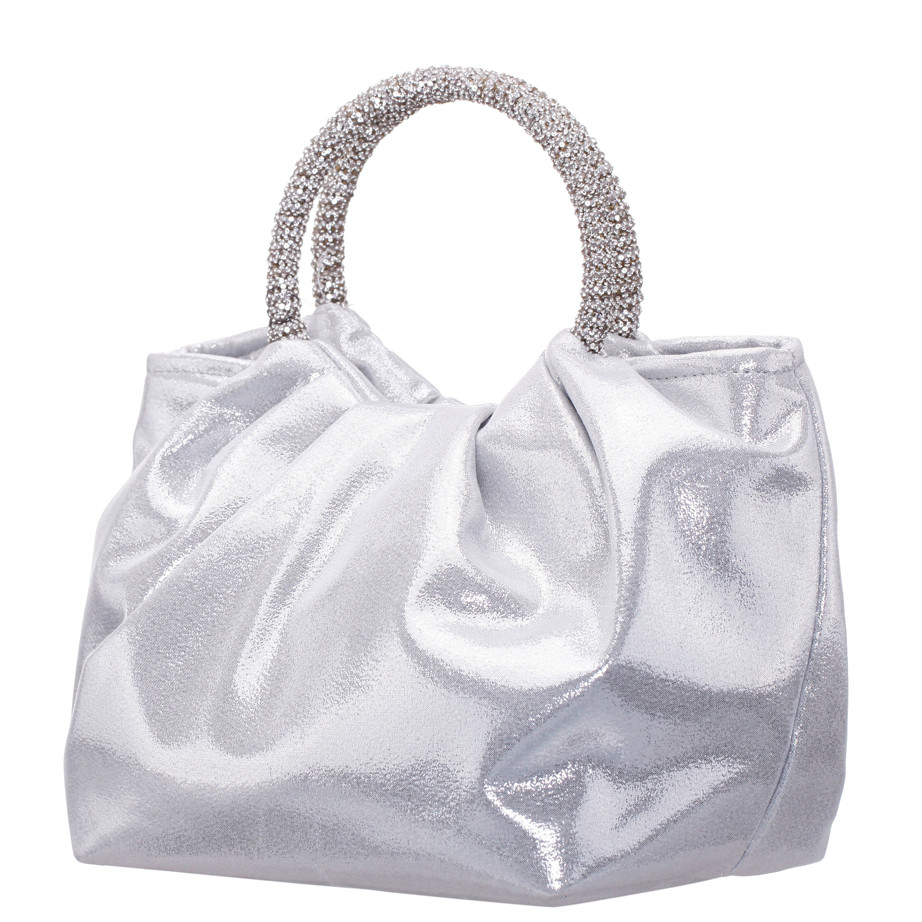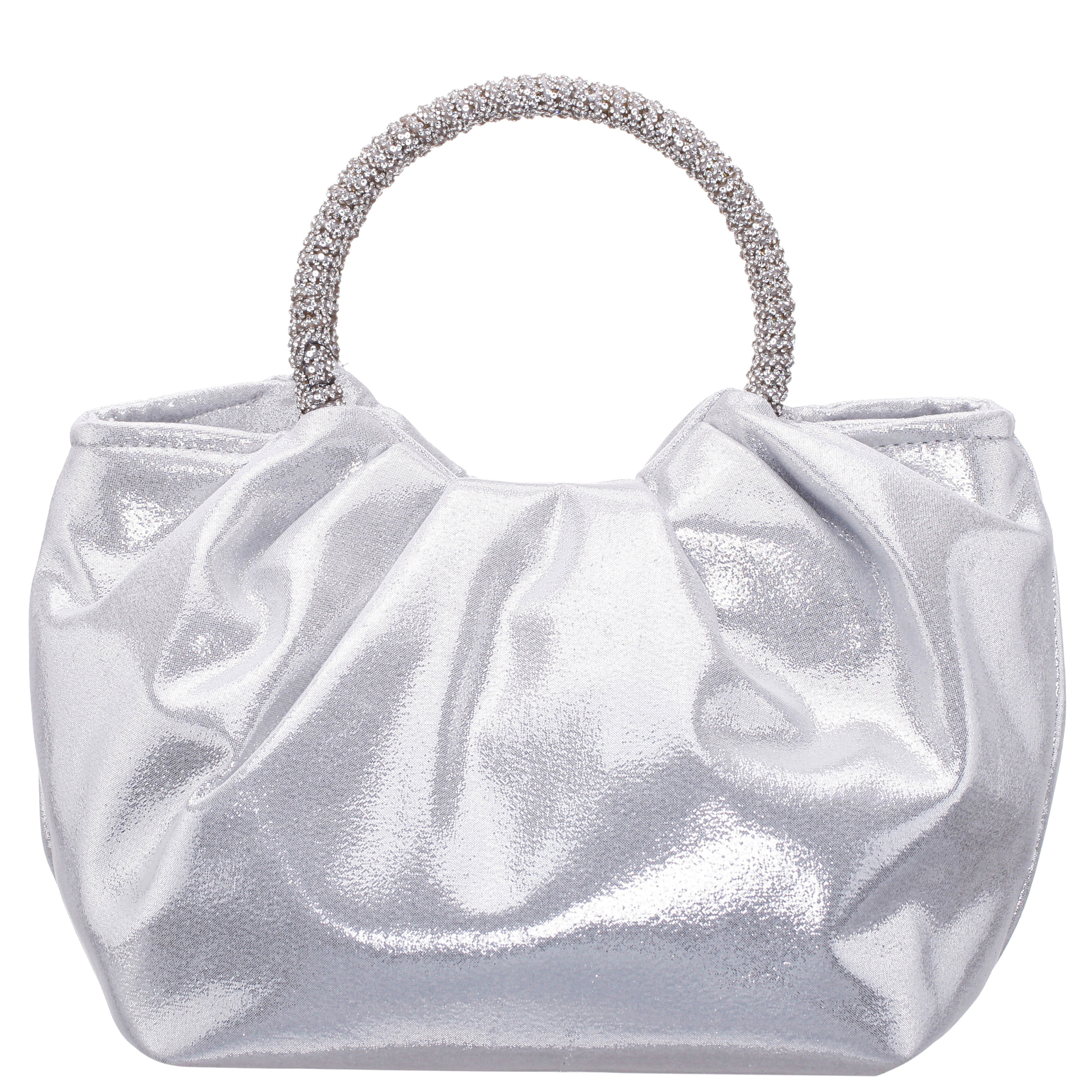 SILVER REFLECTIVE SUEDETTE SATCHEL