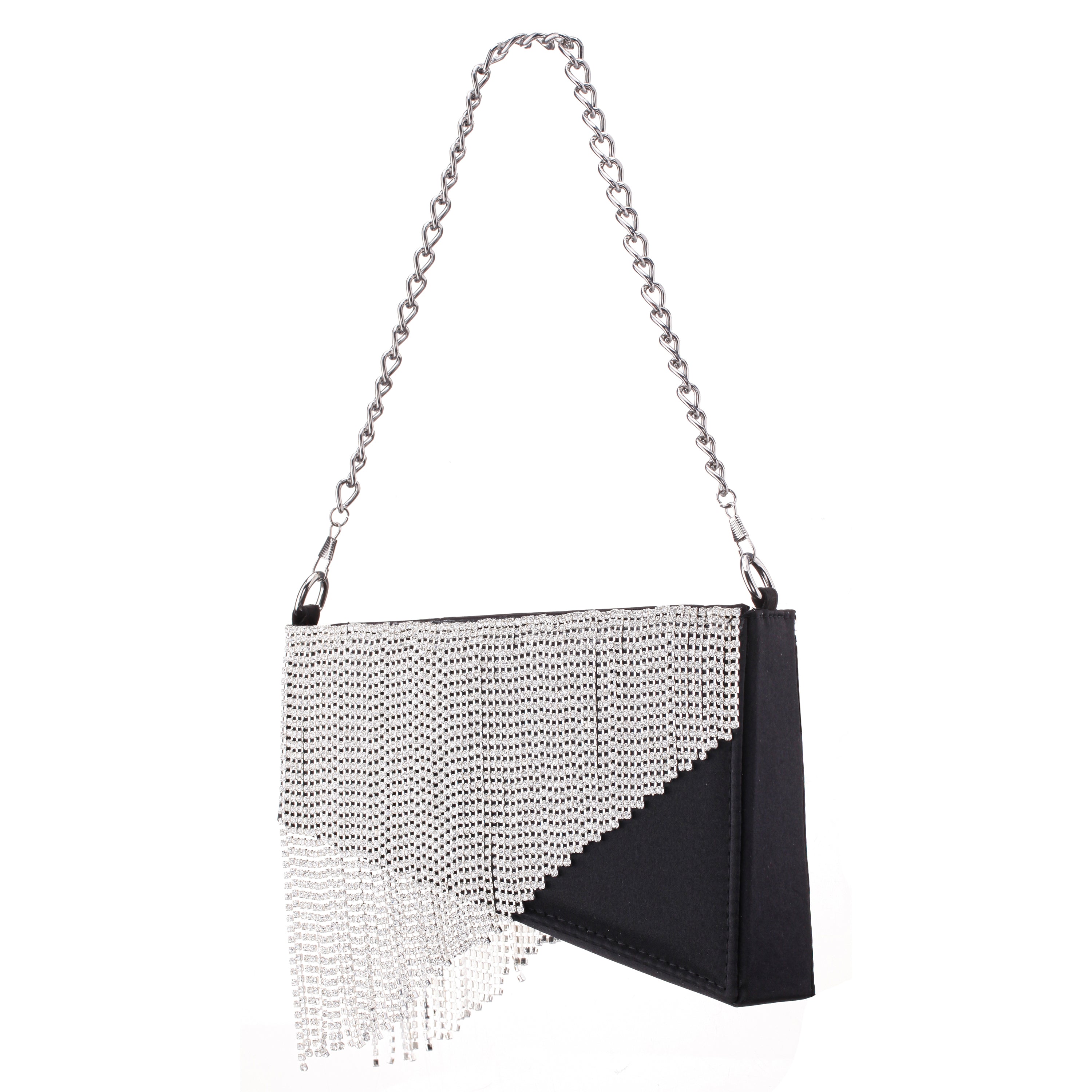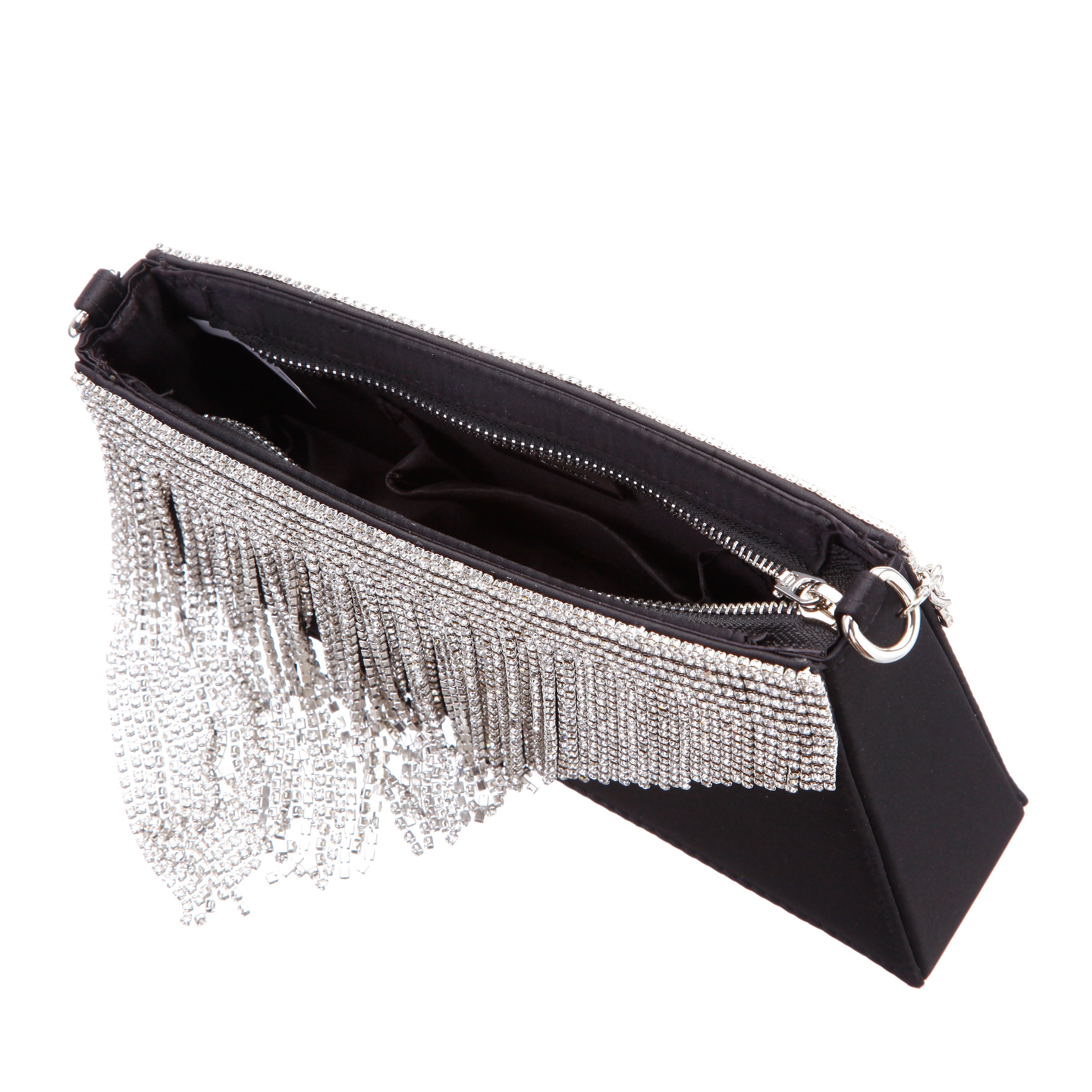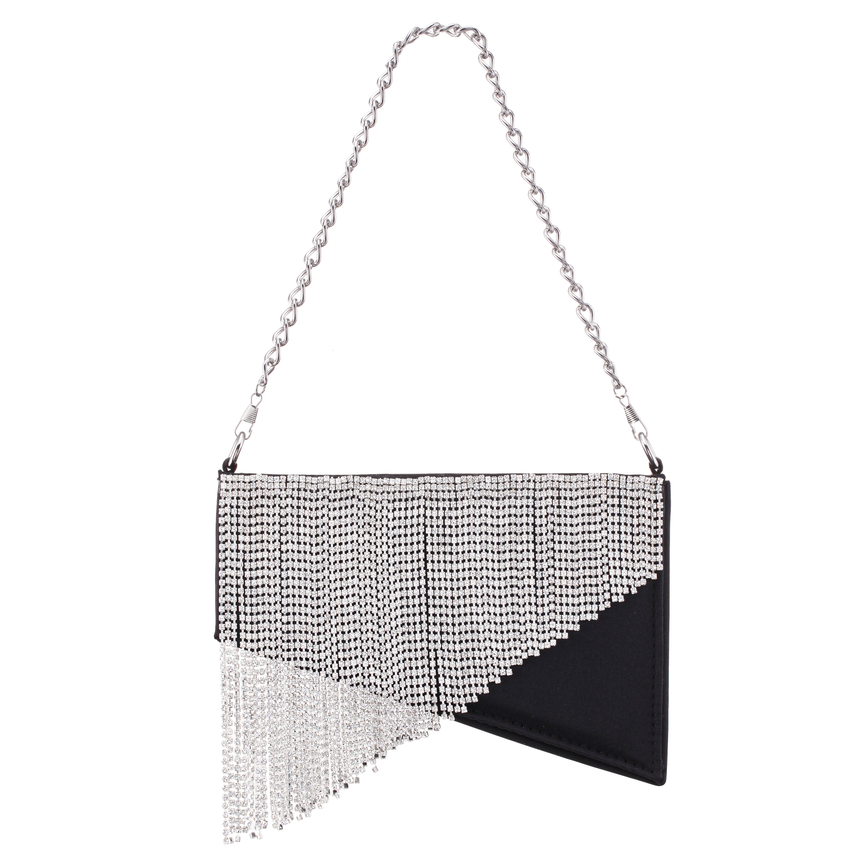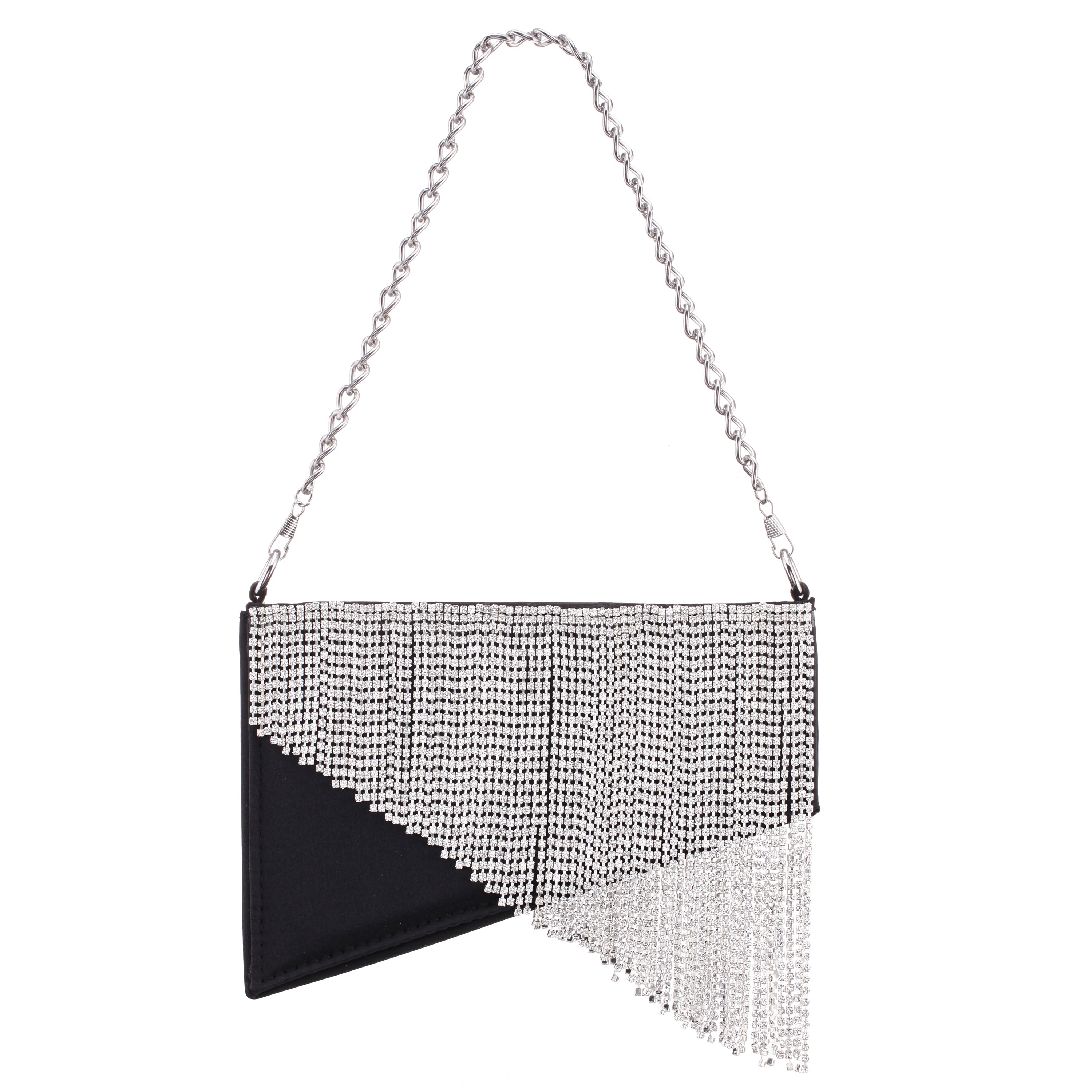 YARA Asymmetrical Crystal Fringe Satin Shoulder Bag For complementary styles, explore our satin shop or browse our newest arrivals.