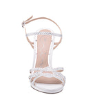 IVORY SATIN WITH CLEAR CRYSTALS HIGH-HEEL PLATFORM SANDALS WITH ANKLE-STRAP